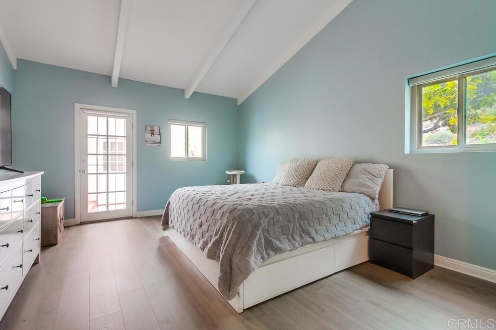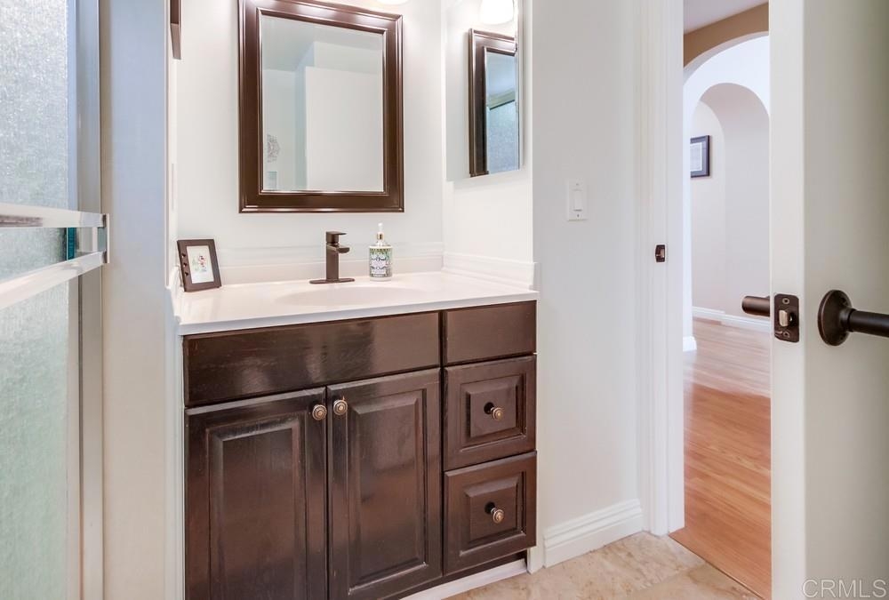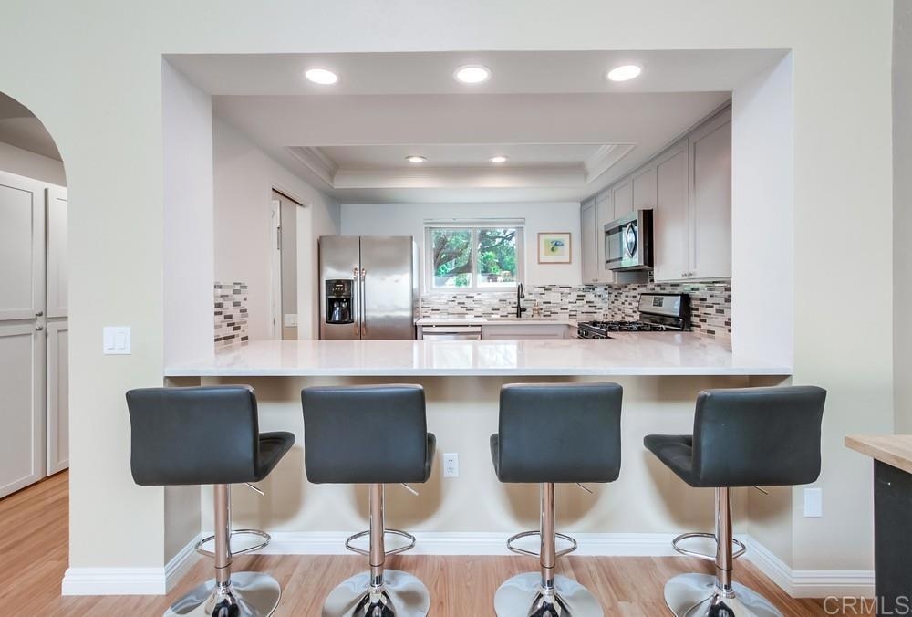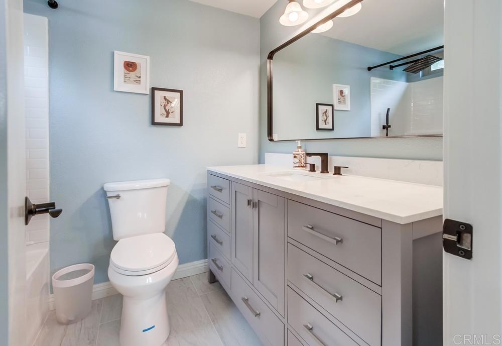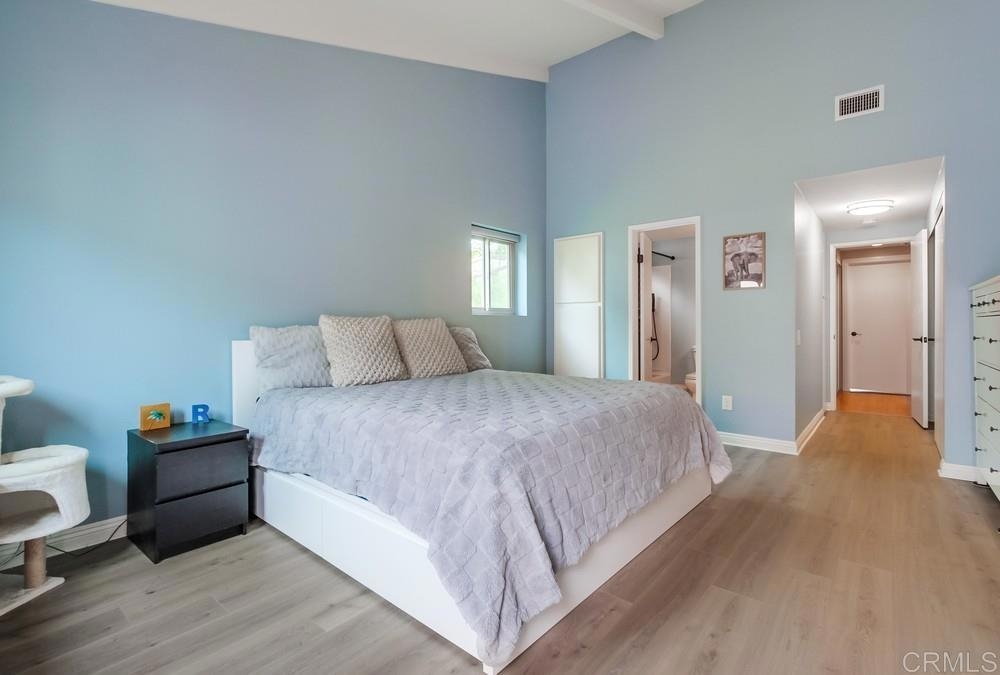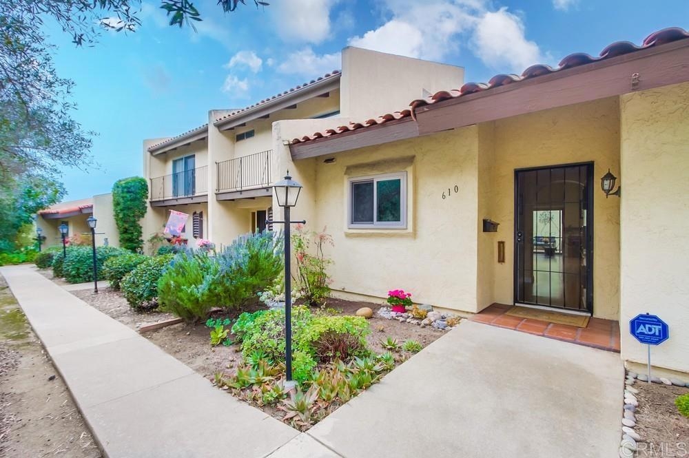 Nestled in a quiet neighborhood, this single-story end unit offers a private courtyard, two-car garage, and ample street parking for guests. The kitchen features a new breakfast bar, quartz countertops, and granite sink, opening to a great room with insulated hi-beam ceilings and a skylight with remote-control shade. The primary suite boasts a fully remodeled bathroom with a luxurious rain shower. Spacious bedrooms offer new vinyl flooring, vaulted ceilings, and views of the succulent gardens. Hidden stairs lead to the attic for extra storage. Additional upgrades include copper piping, a deep sink in the garage, dual pane windows and a large sliding glass door, a newer water heater, dishwasher, garbage disposal, and fresh paint. This park-like community features a pool, spa, lush landscaping, and a pool house with a kitchen and bathrooms. The HOA also covers water, trash, roof and exterior maintenance for this townhome. Prime location near restaurants, breweries, shopping, Vista Magnet Middle School, and the Library. Enjoy the walking trail to Brengle Terrace Park. Just 1.5 miles to the freeway and 15 minutes to the beach!