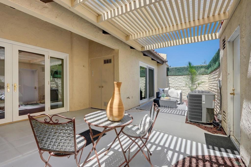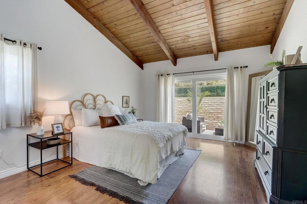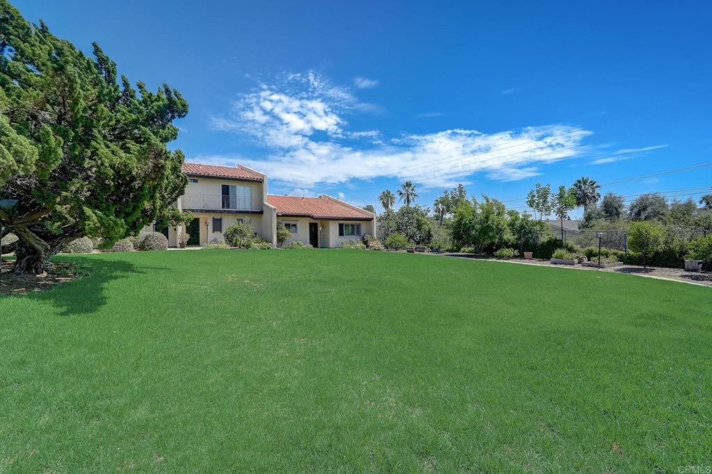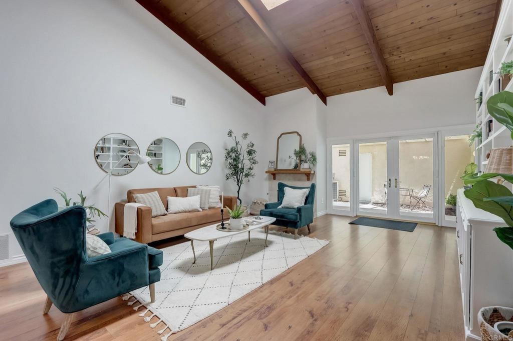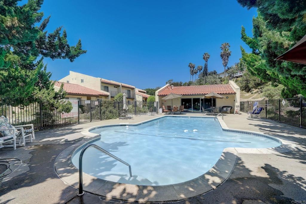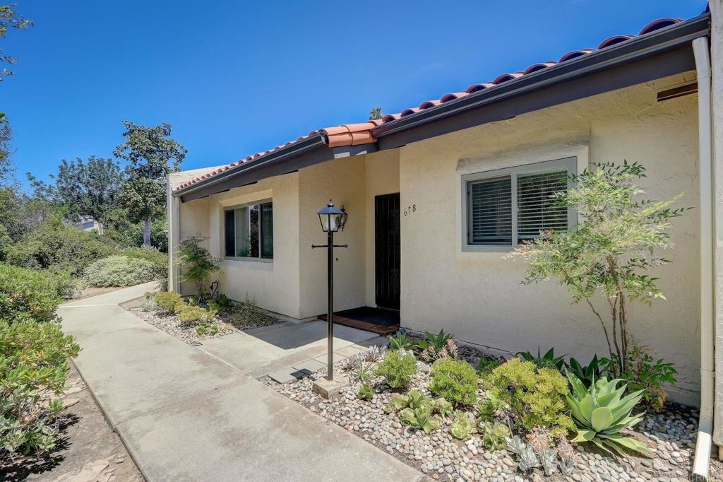 Discover this charming 2-bed, 2-bath townhome nestled in a quiet, park-like community. Located in a beautifully maintained neighborhood, it offers easy access to Main St and downtown Vista's shops, restaurants, and breweries. This end-unit boasts a spacious floorplan and a detached 2-car garage. Inside enjoy freshly painted interiors, a modern kitchen with refaced cabinets and a new range, plus brand new A/C. The open kitchen seamlessly connects to the living area, perfect for entertaining. Step out onto the refinished patio, a serene space to unwind. With soaring high vaulted ceilings, the townhome exudes an airy ambiance and floods with natural light. Experience a harmonious blend of modern living and natural beauty. Don't forget to take advantage of the community pool and spa, surrounded by lush landscaping. Welcome Home!