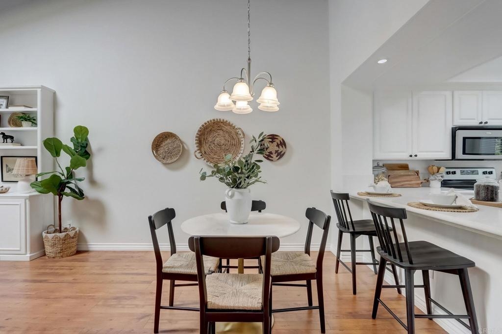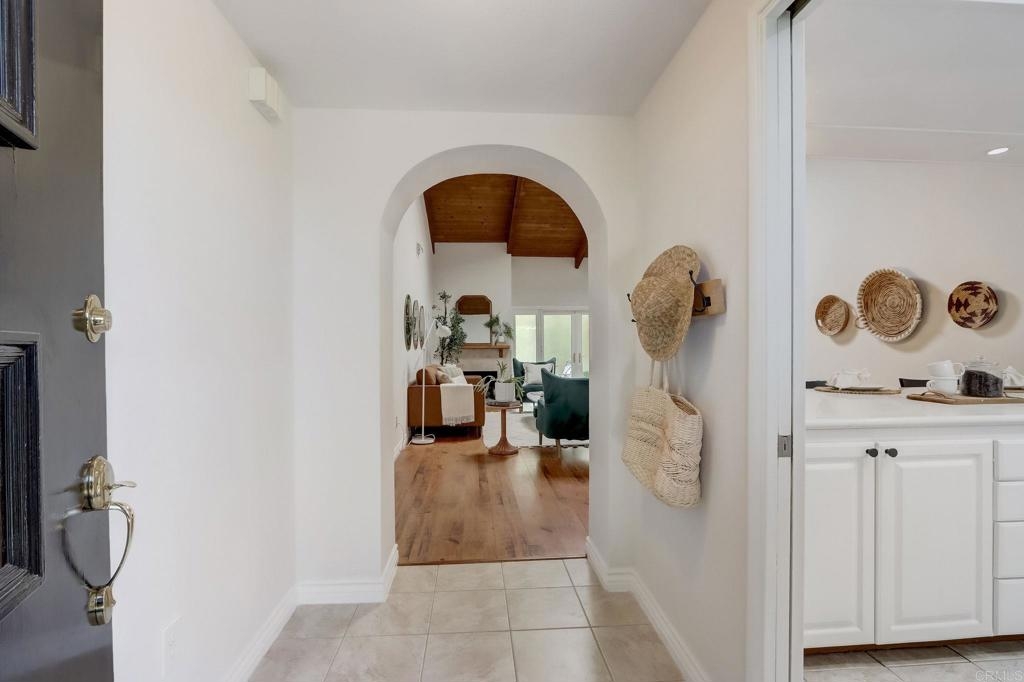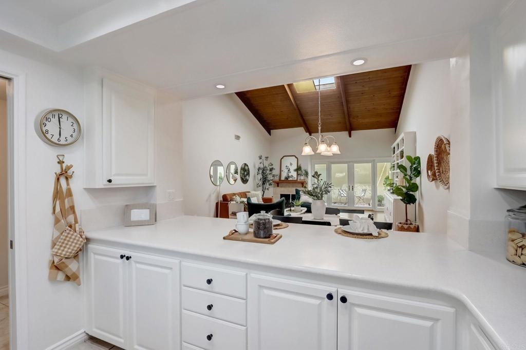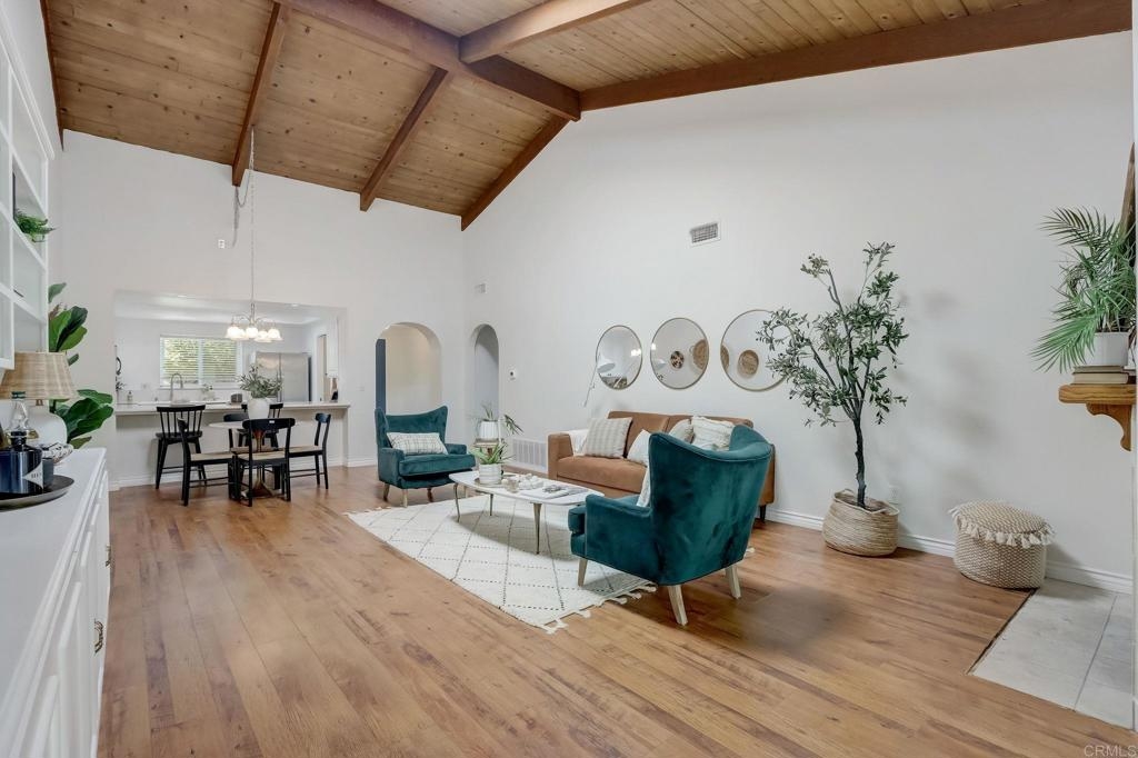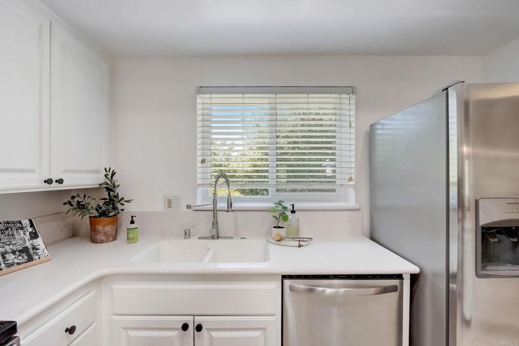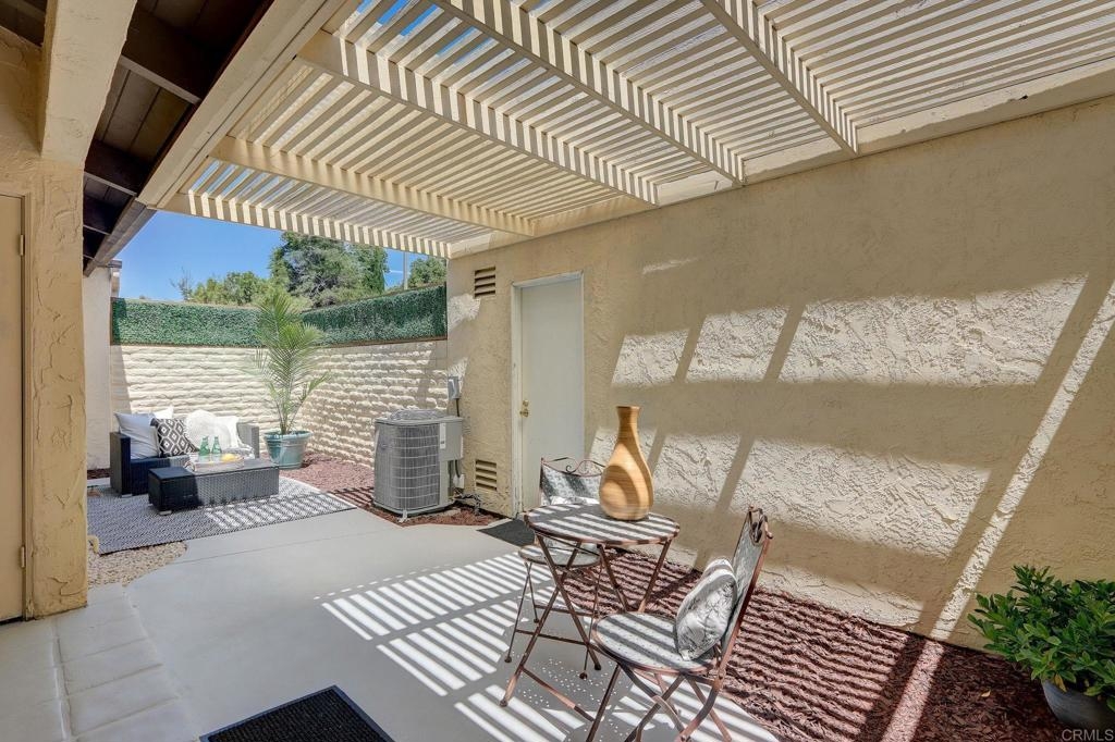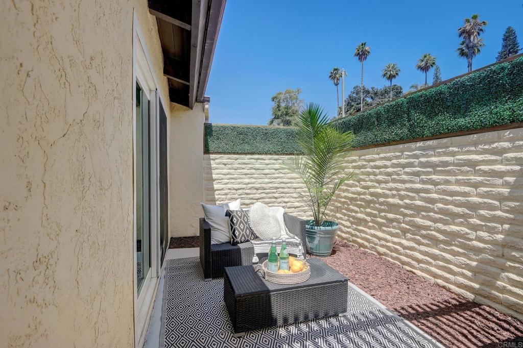 Discover this charming 2-bed, 2-bath townhome nestled in a quiet, park-like community. Located in a beautifully maintained neighborhood, it offers easy access to Main St and downtown Vista's shops, restaurants, and breweries. This end-unit boasts a spacious floorplan and a detached 2-car garage. Inside enjoy freshly painted interiors, a modern kitchen with refaced cabinets and a new range, plus brand new A/C. The open kitchen seamlessly connects to the living area, perfect for entertaining. Step out onto the refinished patio, a serene space to unwind. With soaring high vaulted ceilings, the townhome exudes an airy ambiance and floods with natural light. Experience a harmonious blend of modern living and natural beauty. Don't forget to take advantage of the community pool and spa, surrounded by lush landscaping. Welcome Home!