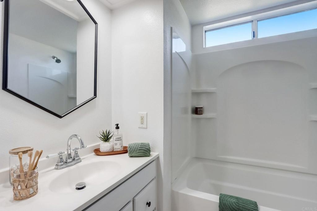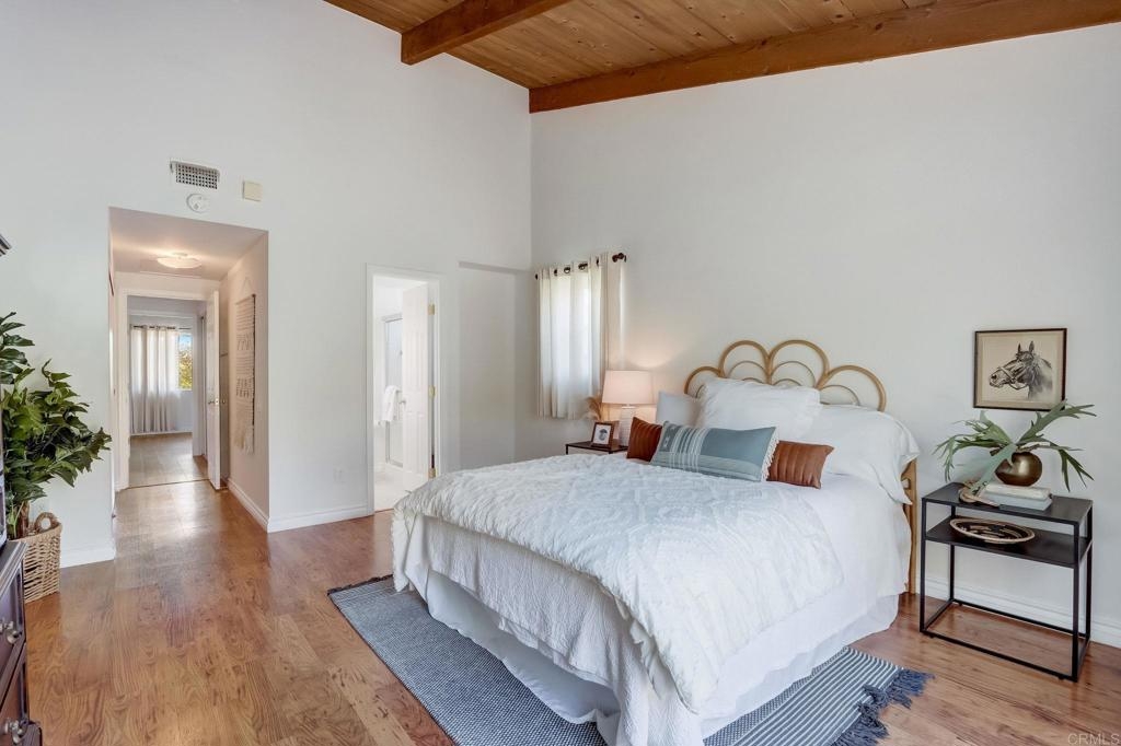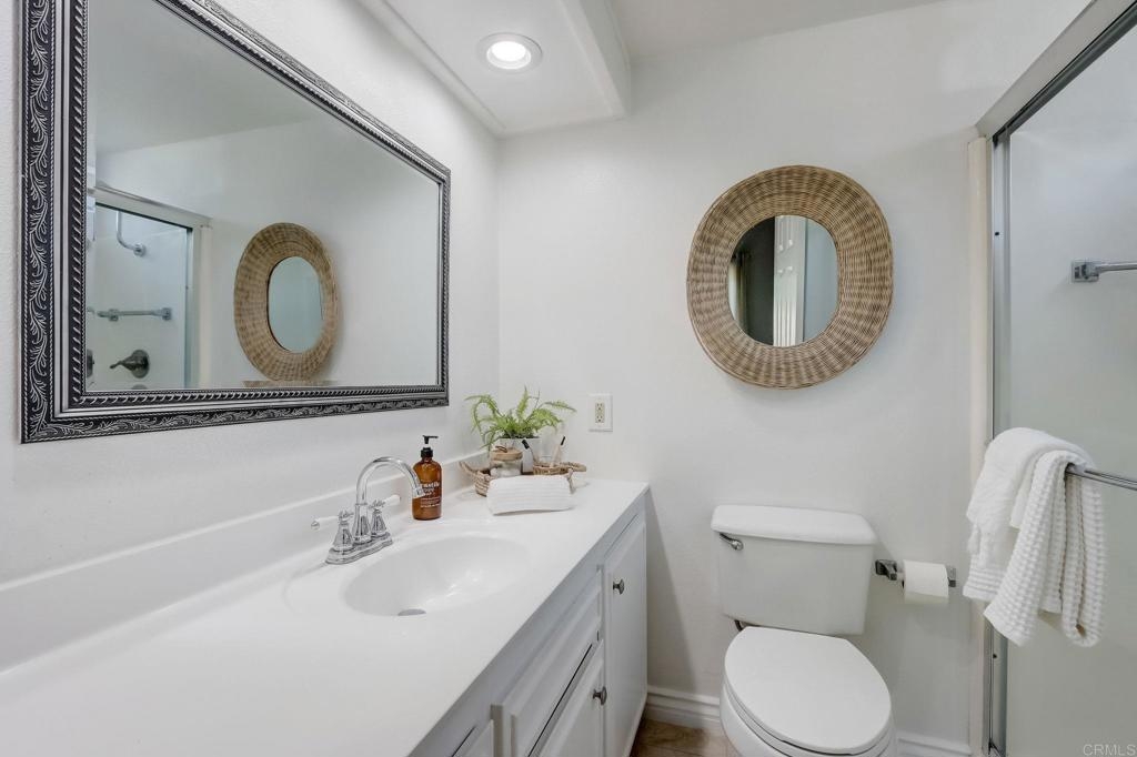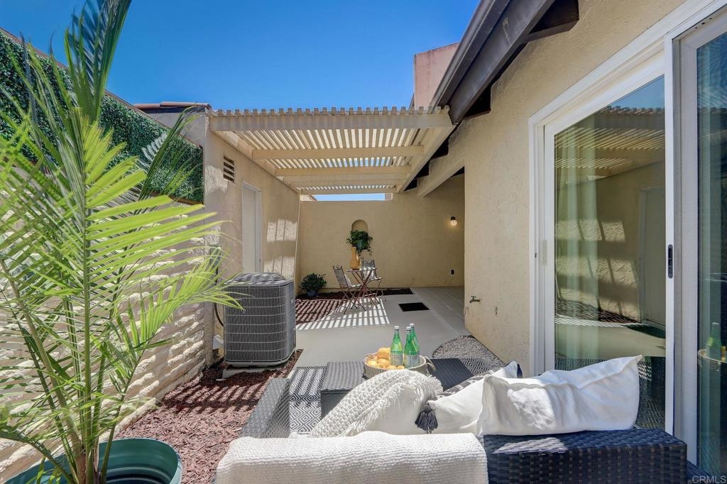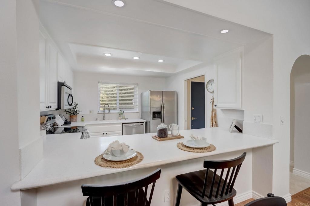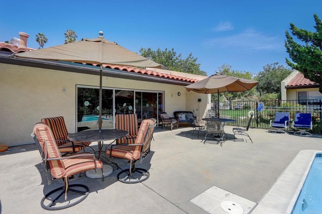 Discover this charming 2-bed, 2-bath townhome nestled in a quiet, park-like community. Located in a beautifully maintained neighborhood, it offers easy access to Main St and downtown Vista's shops, restaurants, and breweries. This end-unit boasts a spacious floorplan and a detached 2-car garage. Inside enjoy freshly painted interiors, a modern kitchen with refaced cabinets and a new range, plus brand new A/C. The open kitchen seamlessly connects to the living area, perfect for entertaining. Step out onto the refinished patio, a serene space to unwind. With soaring high vaulted ceilings, the townhome exudes an airy ambiance and floods with natural light. Experience a harmonious blend of modern living and natural beauty. Don't forget to take advantage of the community pool and spa, surrounded by lush landscaping. Welcome Home!