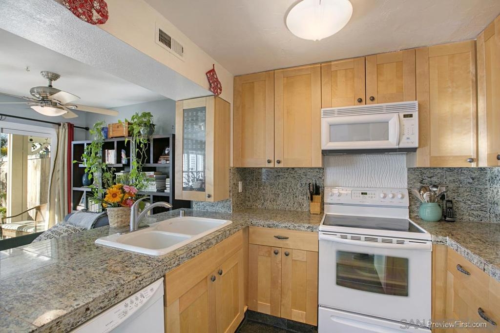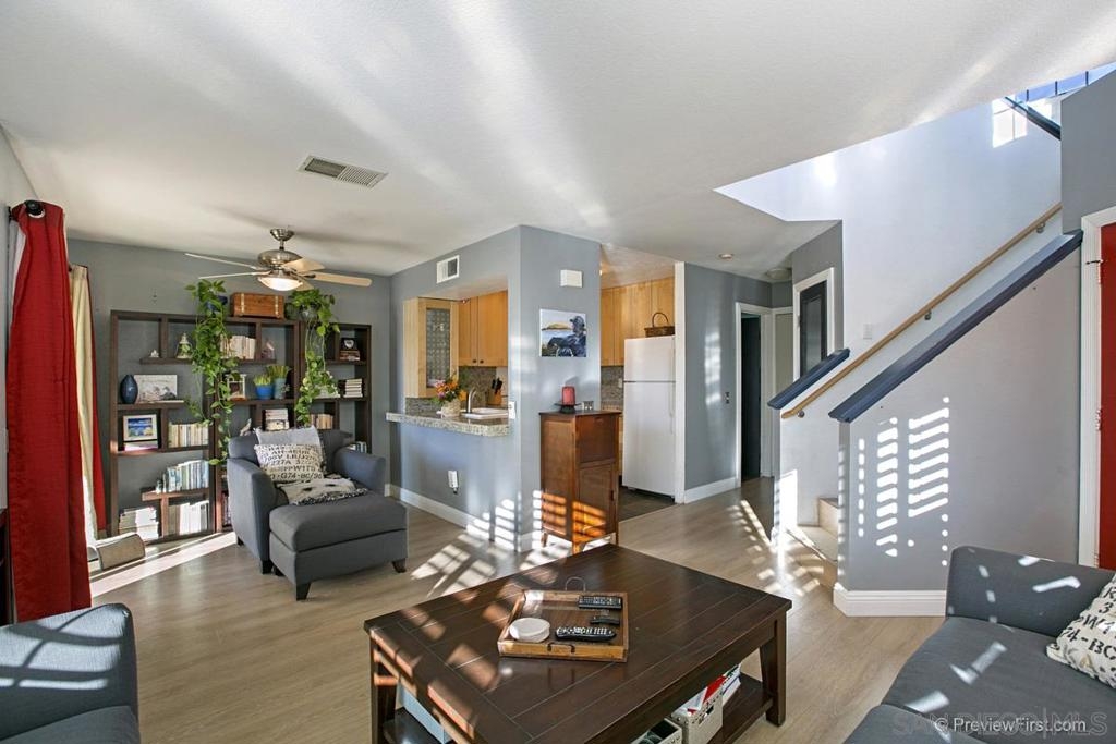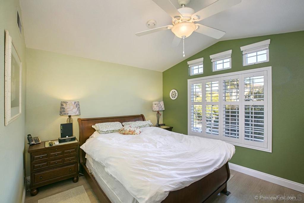 Wonderfully upgraded townhome with views. Kitchen boast granite countertops with new cabinets. Tons of other upgrades. New wood-like flooring, high-end fixtures, full master bathroom $20K remodel, extra-wide shower, Whole house fan, Plantation shutters, ect... Backyard has stamped concrete with Pergola and awesome views. This home is only steps from beautiful large Pool & Spa and a kid friendly park. Please don't miss the Walk-in Pantry and Walk-in Closet. Centrally located in North San Diego County. Decor: New remodeled master bath New wood laminate through entire house including stairs New Alumawood pergola in the patio New master closet organizing system Plantation shutters in Master bedroom and living room Recently painted exterior New landscaping Vaulted ceiling in master bedroom Updated bathrooms Updated kitchen Energy Efficiency: Duel Pane Max-Low e widows and sliding door New Insulated garage door Super quiet LiftMaster Jackshaft side mount garage door opener Whole house fan New water heater Ceiling fans in every room Comfort Master bedroom has variable thickness panes to make the window extra quiet Walk-in pantry Ceiling fans in every room Vaulted ceiling in master bedroom Sunset views Cool breezes Low traffic street Larger back yard than most properties in the community Amenities Pool Jacuzzi Tot lots HOA maintained landscaping, painting, roof, fencing Walking distance to Vista Village Walking distance to Sprinter station 1 Minute access to 78 Freeway A few minutes away from the beach