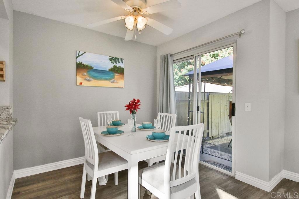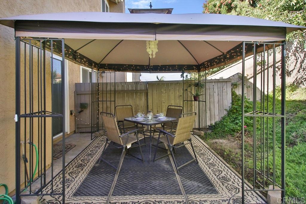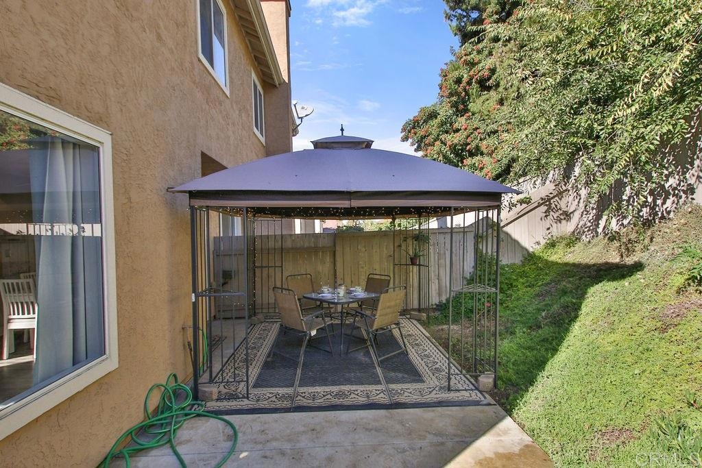 This lovely 3 bedroom 2.5 bath home is situated in a prime spot in the neighborhood with no one behind allowing for more privacy. The interior has been recently upgraded and includes; gorgeous gleaming granite kitchen counter tops with a backsplash, new kitchen cabinets, kitchen can lighting, vinyl wood flooring, partially upgraded bathrooms, a "one year new" water heater still under warranty, a new stove, and newly installed carpet complete with upgraded padding! In addition to all of this, a new roof was added in 2020! Enjoy the private backyard and the wonderful canopy, patio set, storage shed, and BBQ that will convey to the buyers! You will enjoy all the natural light that pours through this home. This property has central A/C, an attached 2 car garage, a walk-in closet in the master bedroom and a large closet under the stairway allowing for plenty of additional storage. Conveniently located to grocery stores, dining and shopping. Just 2 minutes from freeways, without the noise! Tri City Hospital is a 10 min drive away. The Sprinter Station for public transportation is in close proximity and Vista Village is just 5 minutes away! The refrigerator, washer and dryer will convey with the property!