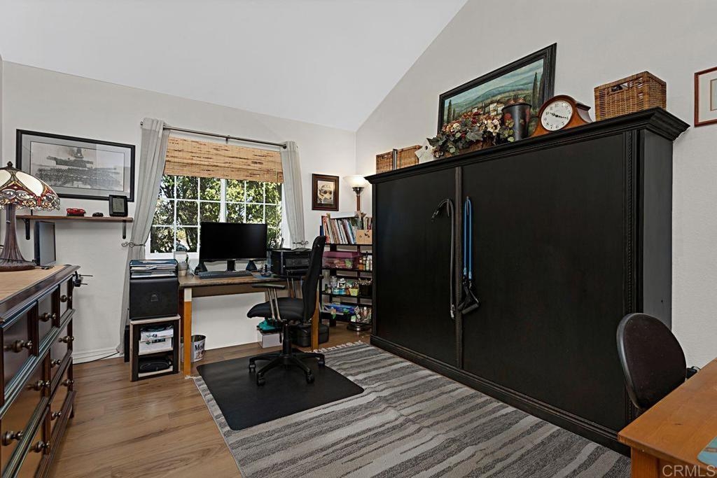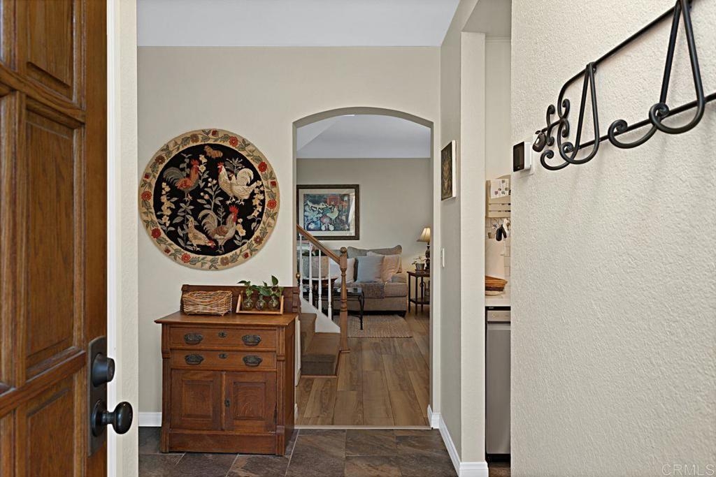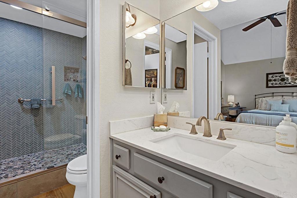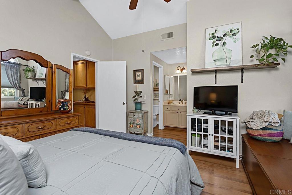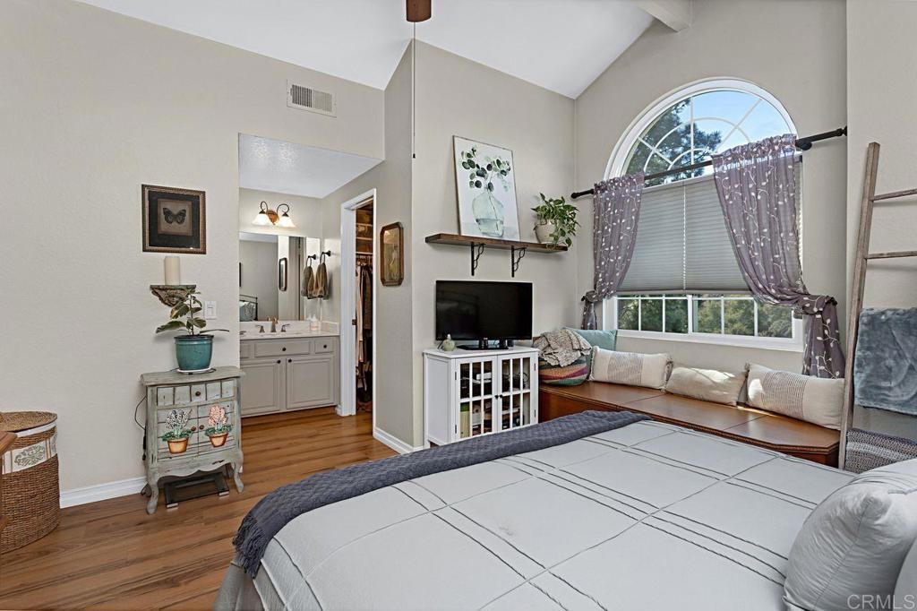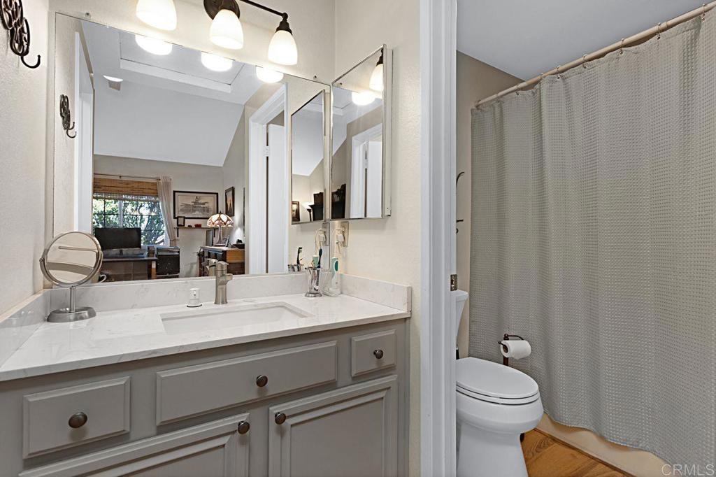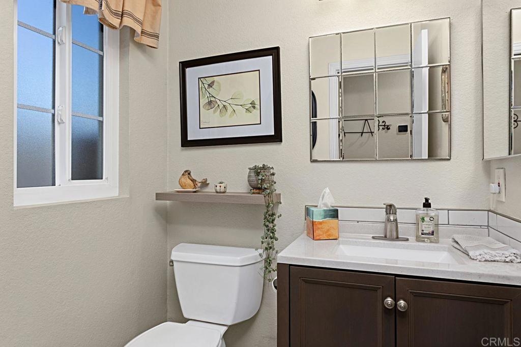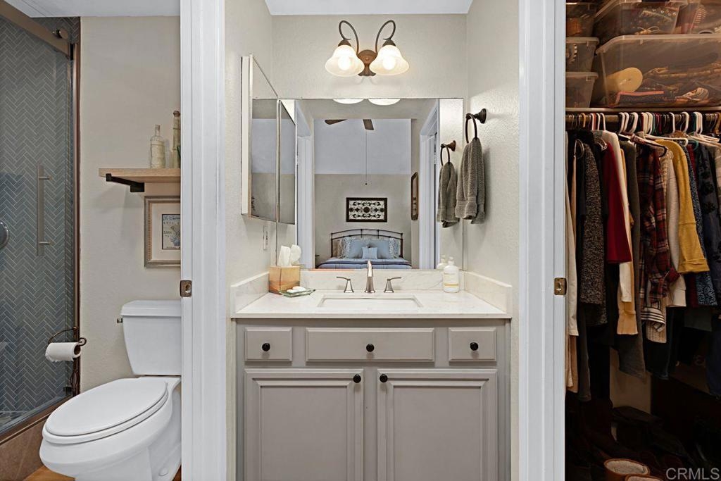 Welcome to this bright and airy luxury corner unit with an open floor plan filled with natural light. Located in the popular Charlemont community, you'll be just a short walk from shops, restaurants, parks, and schools, with easy freeway access for your convenience. The spacious living room has a cozy fireplace and sliding doors that open to a large rear patio with pavers. The detached two-car garage features a new door and a full wall of high-quality storage cabinets, providing plenty of space. The fully updated kitchen comes with brand-new wood cabinets, stainless steel appliances, and elegant quartz countertops. There's a half bath and a laundry closet with a side-by-side washer and dryer on the main floor for ease. Upstairs, the second bedroom boasts a custom Murphy Bed that adds a unique touch, vaulted ceiling with ceiling fan and an ensuite bathroom for extra comfort and privacy. The master bedroom is a true retreat with a vaulted ceiling with ceiling fan, a walk-in closet and a master bathroom featuring a newly tiled walk-in shower. Recent updates include energy-efficient windows and a sliding door, a new HVAC heat pump system, and new wood laminate flooring on the main level, plus quality tile at the entryway and kitchen floor. This well-maintained condo is move-in ready and waiting for its new owners. Don't miss out on this gem!