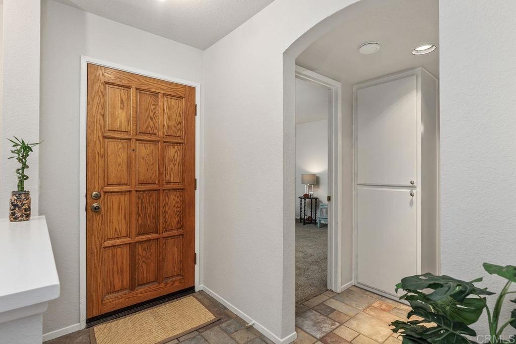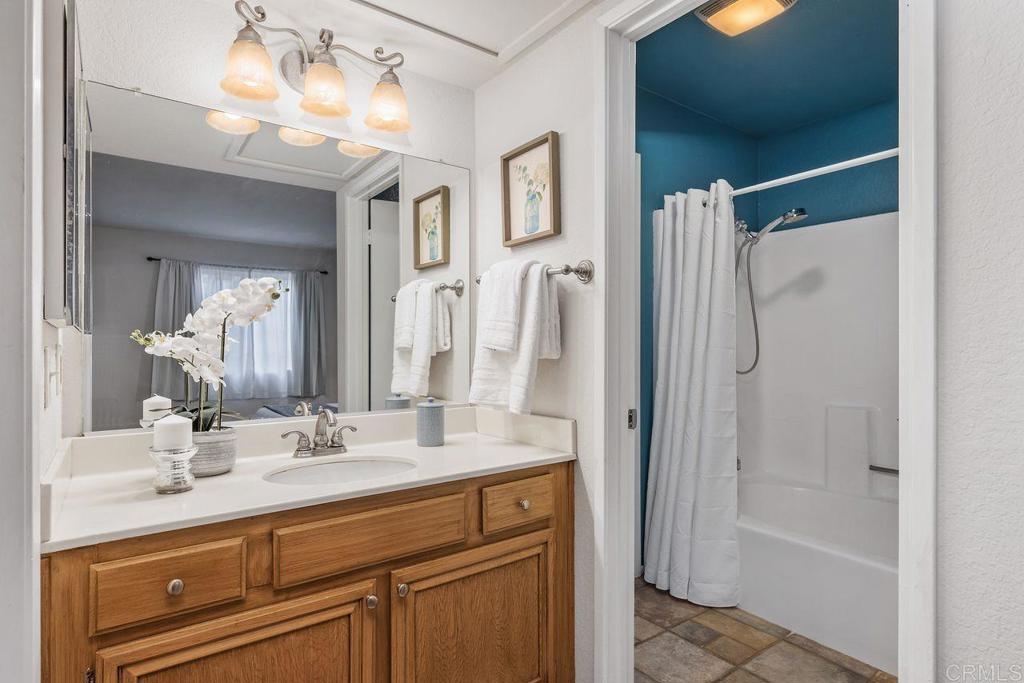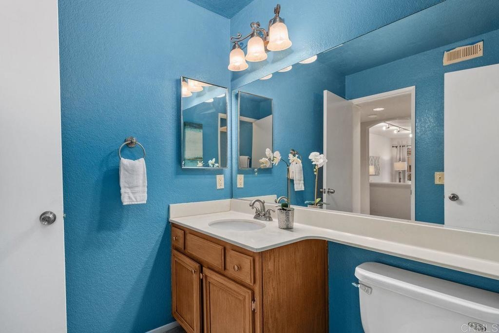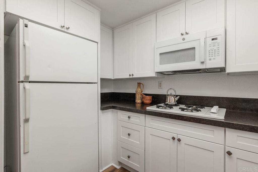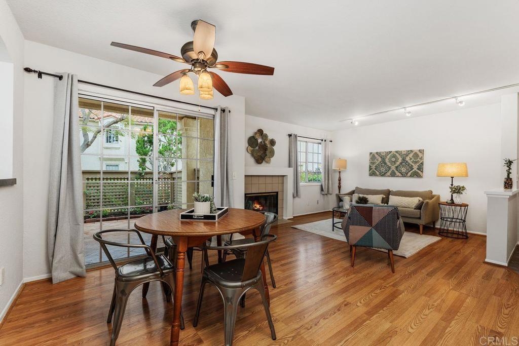 This move-in ready Charlemont condo has a brand new kitchen, two large bedrooms and a spacious private patio! The recently renovated kitchen has new cabinetry and flooring, high-end quartz countertops, several new appliances, and a stainless sink. The living area has vinyl plank flooring and a gas fireplace living area has vinyl plank flooring and a gas fireplace. Each bathroom has updated lighting and plumbing fixtures, and the shared tub and shower surround has been resurfaced. This convenient ground level unit offers a spacious patio with views of the trees. Other features include A/C, a newer water heater, in-unit laundry, and mirrored closet doors. The unit offers an oversized one-car garage with ample storage, newer garage door, plus a designated parking space.The Charlemont community has a pool, spa, and clubhouse. The complex is well-located south of the 78 FWY, with convenient access to Vista Village, Mira Costa College, Tri City Medical, The Vista Courthouse, highly rated schools, and conveniences of Melrose.