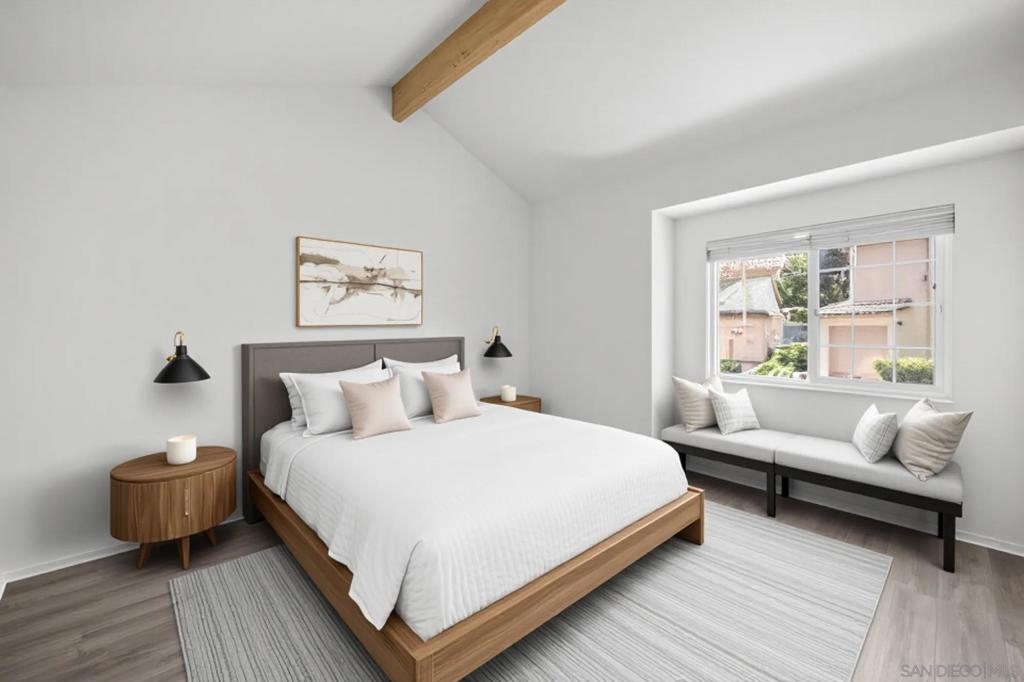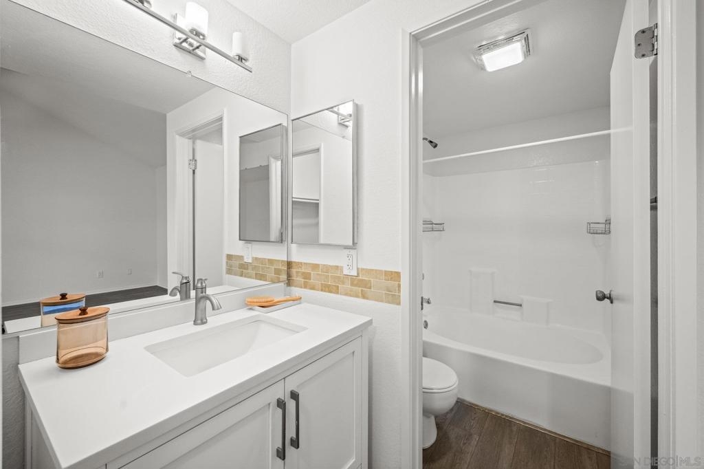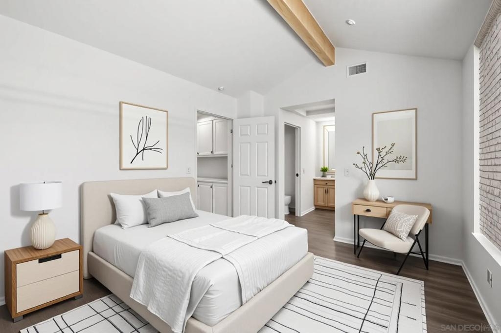 Nestled in a quiet, private, parklike community, this upgraded, VA-approved townhome offers the perfect blend of comfort, style, and convenience. Enjoy fresh paint throughout, multiple upgrades in kitchen and baths and energy-efficient double-pane windows. The open-concept downstairs floor plan is ideal for both everyday living and entertaining, featuring a welcoming family room with a fireplace and a separate dining area. Upstairs, you'll find two spacious primary bedrooms, each with ensuite baths and large closets - perfect for privacy and flexibility. Private, sunny fenced patio, a sunny spot to enjoy morning coffee or evening relaxation, with direct access to a 2-car garage that offers plenty of room for parking and storage! Located in the desirable and well-maintained community of Charlemont with tree-lined grounds, community room, two pools and spa. This home has easy access to freeways, and is walking distance to shopping, parks, schools, the farmers market, and more. Whether you're a first-time buyer or looking to downsize without compromise, this home offers upgraded living in a prime Vista location. Note: some photos virtually staged to give buyer an idea of room sizes and decorating possibilities.