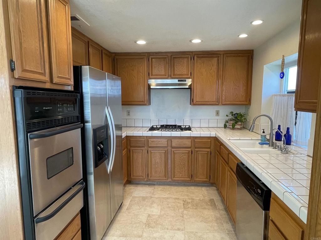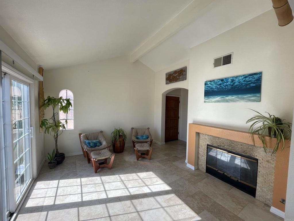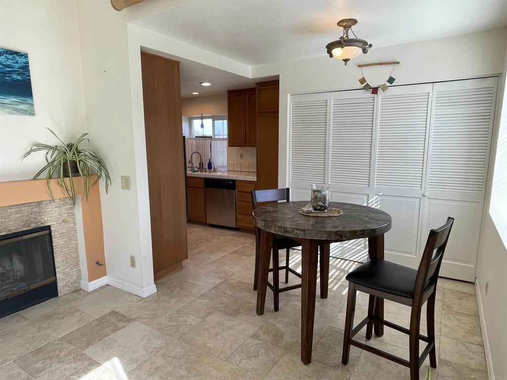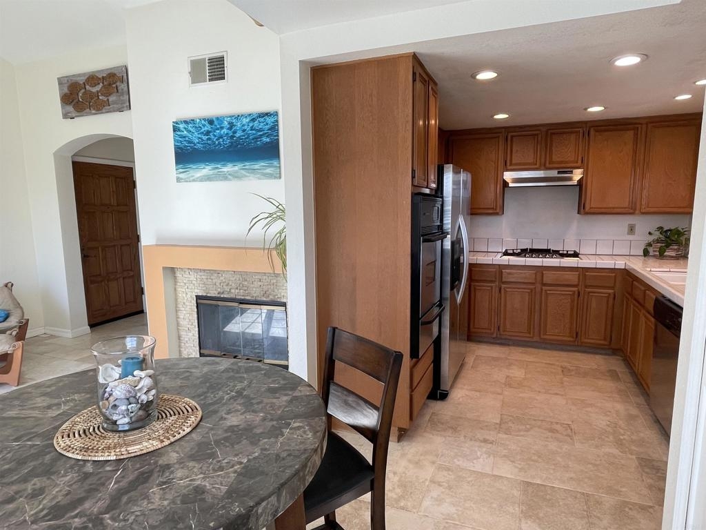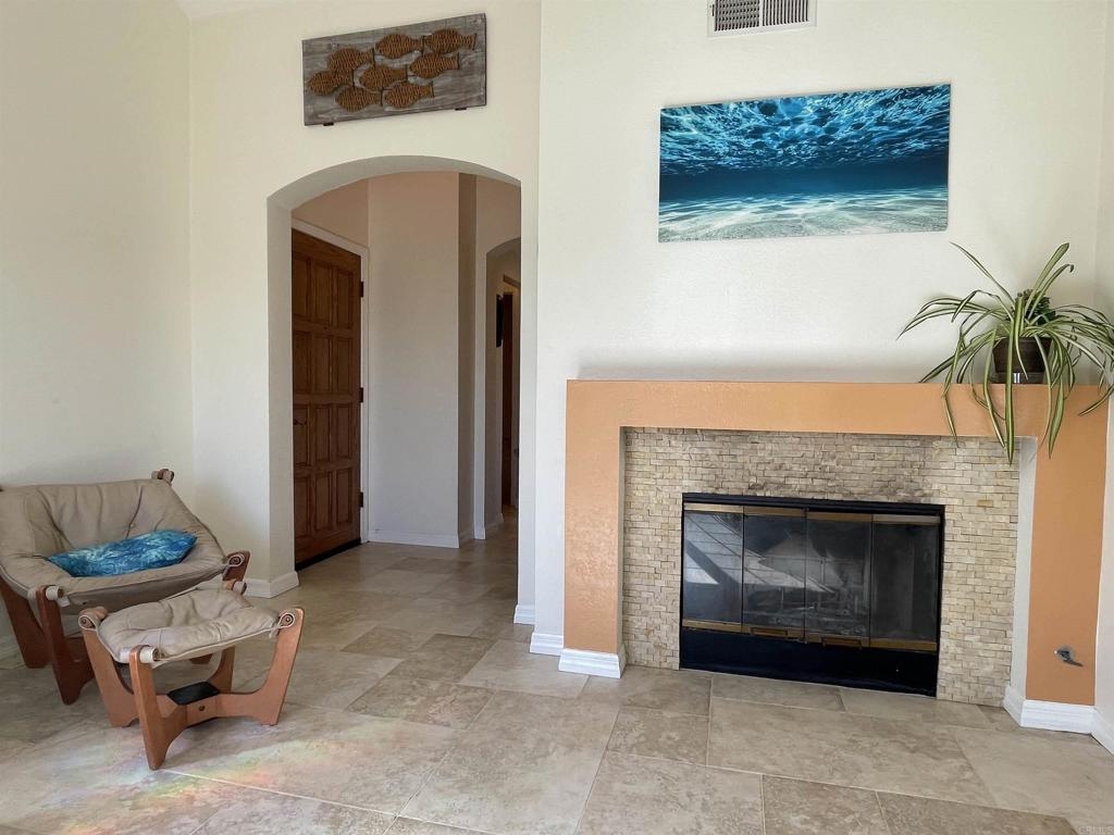 Welcome to this cozy 1-bedroom condominium offering a blend of simplicity and comfort. Inside, you'll find travertine tile in the main living area and luxury vinyl flooring in the bedroom. The kitchen comes equipped with stainless steel appliances, plenty of cabinetry and a mountain view window above the sink. Enjoy the bright open floor plan with living room dinning room combo and vaulted ceilings. Step out onto the balcony for a breath of fresh air and enjoy the mountain views. Warm up by the fireplace during a rainy day and read your favorite book. Convenience is key with in-unit washer-dryer hookups, eliminating the hassle of laundromat visits. Your vehicle will have its own secure spot in the 1-car garage, featuring a brand-new garage door. As part of the community, take advantage of shared amenities like the clubhouse, pool, and spa – perfect for mingling and relaxation. Shopping and restaurants just moments away, allowing you to indulge in the local lifestyle. Easy freeway access and its only 10 mins to the beach! Don't miss the chance to make this your own and start creating lasting memories.