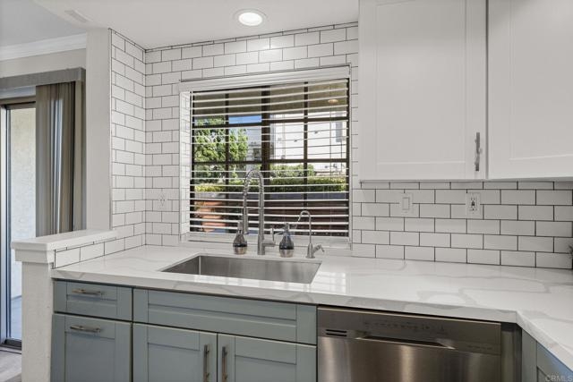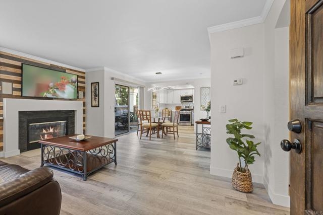 Welcome to Charlemont! This two bedroom, two full bathroom condo is a lower level end unit, offering privacy and style. The durable and stylish luxury vinyl plank flooring brightens up and enlarges the space, creating a seamless flow from room to room. Relax by the fireplace, updated with a stylish stone surround, or enjoy cooking in the fully remodeled kitchen, offering quartz countertops and tile backsplash. Each bedroom offers new closet doors, crown moulding, and plenty of space. The bathrooms have been customized to provide convenience and privacy. With an enclosed outdoor space, you can invite your guests for a barbeque, or enjoy the space yourself, with room for a small garden. Centrally located with quick access to HWY 78, Palomar Airport Rd, shopping and entertainment, and only 7 miles to the beach.
