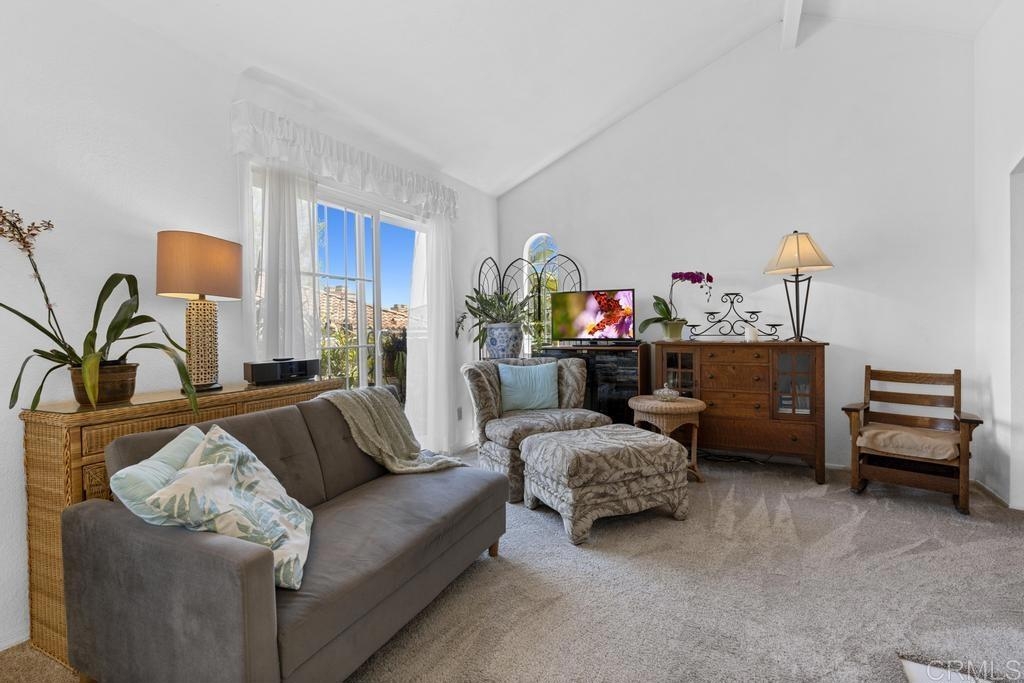 Welcome to this cozy 1-bedroom, 2nd story condominium offering a blend of simplicity and comfort. Enjoy the bright open floor plan with a living room dinning room combo and vaulted ceilings. Updates include new AC & ducting as of January 2024, windows, slider, carpet, bathroom remodel, drop down ladder to spacious attic & garage door. Step out onto the balcony for a breath of fresh air and enjoy the neighborhood views. Warm up by the fireplace during a rainy day and read your favorite book. Convenience is key with in-unit washer-dryer hookups, eliminating the hassle of laundromat visits. Your vehicle will have its own secure spot in the 1-car garage, featuring an update door. As part of the community, take advantage of shared amenities like the clubhouse, pool, and spa – perfect for mingling and relaxation. Shopping and restaurants just moments away, allowing you to indulge in the local lifestyle. Easy freeway access and its only 10 mins to the beach! Don't miss the chance to make this your own and start creating lasting memories.