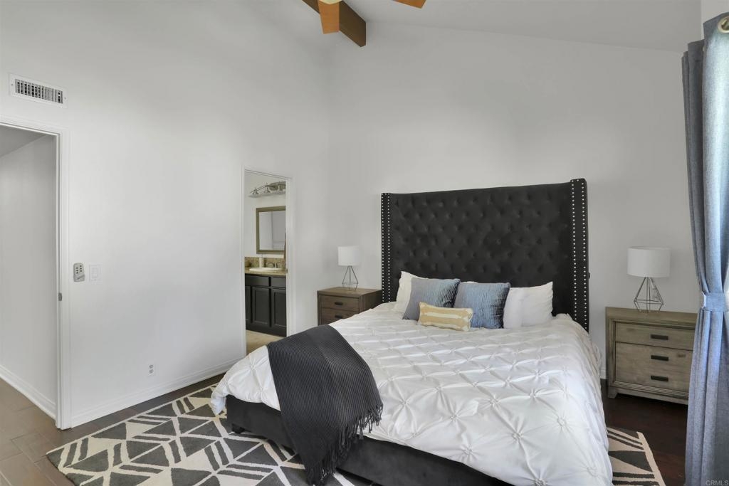 Welcome to this spacious move-in ready single-story townhome that was recently freshened up and is now ready for its next owner. Enjoy vaulted ceilings that stream in loads of natural light. Relax in the peace & quiet that comes with a gated community and no neighbors above/below. The primary bedroom has an en suite bathroom with an enlarged soaker tub. The large outdoor patio is perfect for outdoor dining, morning coffee, a garden or a safe play area for a child. Perfectly located off the 78 & near the Vista Transit Center for easy commutes/travel. 5 minutes from restaurants, groceries & shopping and just 10 minutes to the Coast. This home comes with a 1-car garage, a designated parking space, and plenty of guest parking. Multiple storage closets & separate laundry room in-unit. VA & FHA approved. Stay cool in the summers with Central A/C and a dip in the community pool. Priced to sell – hurry, this one won’t last!