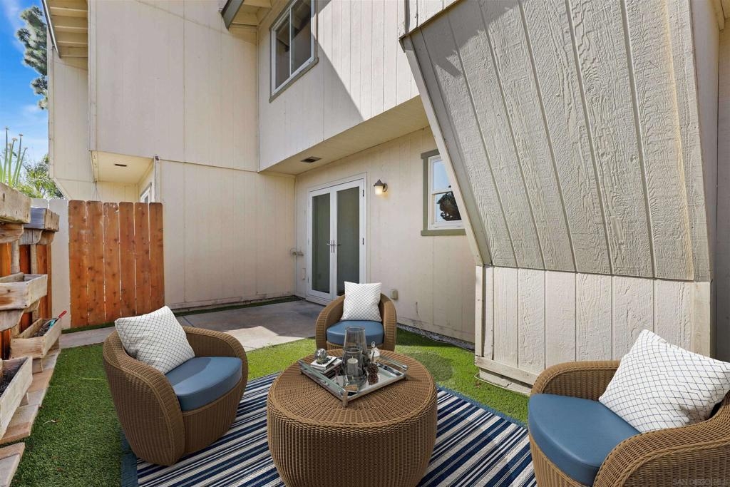 This is the one you have been waiting for! Updated end-unit townhome on a prime location in the community with no neighbors behind and to one side. Enter to find fresh paint, new carpet and luxury vinyl planks. Upstairs, you will find the primary bedroom with attached bath and built out closet, along with the spacious secondary bedrooms that share a hall bath. The ground level has a living room with cozy fireplace, dining area and remodeled kitchen with high end stainless steel appliances, new cabinetry and stone countertops. Upon entry there is a 1/2 bath and access to the large two car garage with no lack for storage. This is SoCal living at its best with a private patio, perfect for dining out doors, grilling or relaxing with a good book. The unit is located close to the sparkling pool and comes with AC for those hot summer days! Close to Vista Village, Restaurants, Breweries, shops, Civic Center and Library. Hurry this one wont last!!!