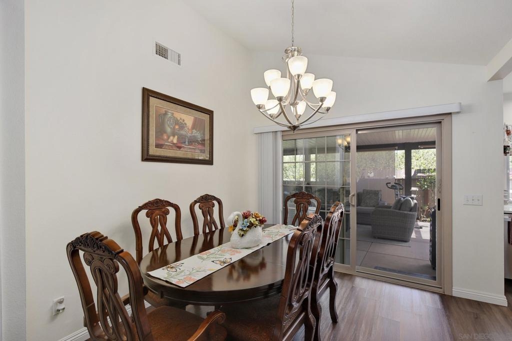 Come live your best life in this upgraded end unit single story in an amazing 55+ community! The vaulted ceilings create a high volume living atmosphere. No expense was spared in creating the perfect space for an outdoor living and dining room where you can relax and unwind while soaking in the idyllic weather all year long. So many upgrades! Both bathrooms have been remodeled, new windows installed, new slider to the back patio, new quartz counter tops in the kitchen, LVP floors throughout the home. So much to enjoy! There is also plenty of room to let your green thumb go wild. The 2 car garage makes parking a breeze and adds extra storage space. This home lives like a detached home as it only has one shared wall with neighbors on the garage side. Nob Hill offers its residents a Clubhouse, BBQ area, sparkling pool and spa and RV/boat parking too! Conveniently located by an abundance of shopping, dining and entertainment venues. Guajome Regional Park, Rancho Buena Vista Adobe and Alta Vista Botanical Gardens are nearby providing hours of outdoor enjoyment. Area beaches are less than 30 minutes away too! To see it is to love it! Complex Features: ,,,, Sewer: Sewer Connected Topography: LL