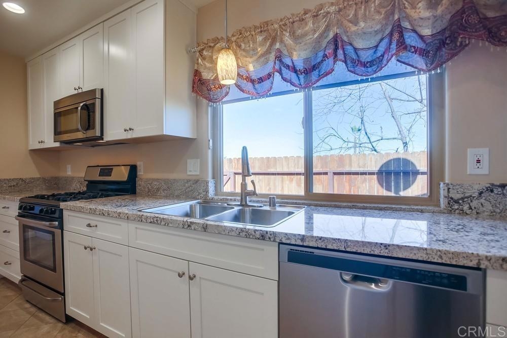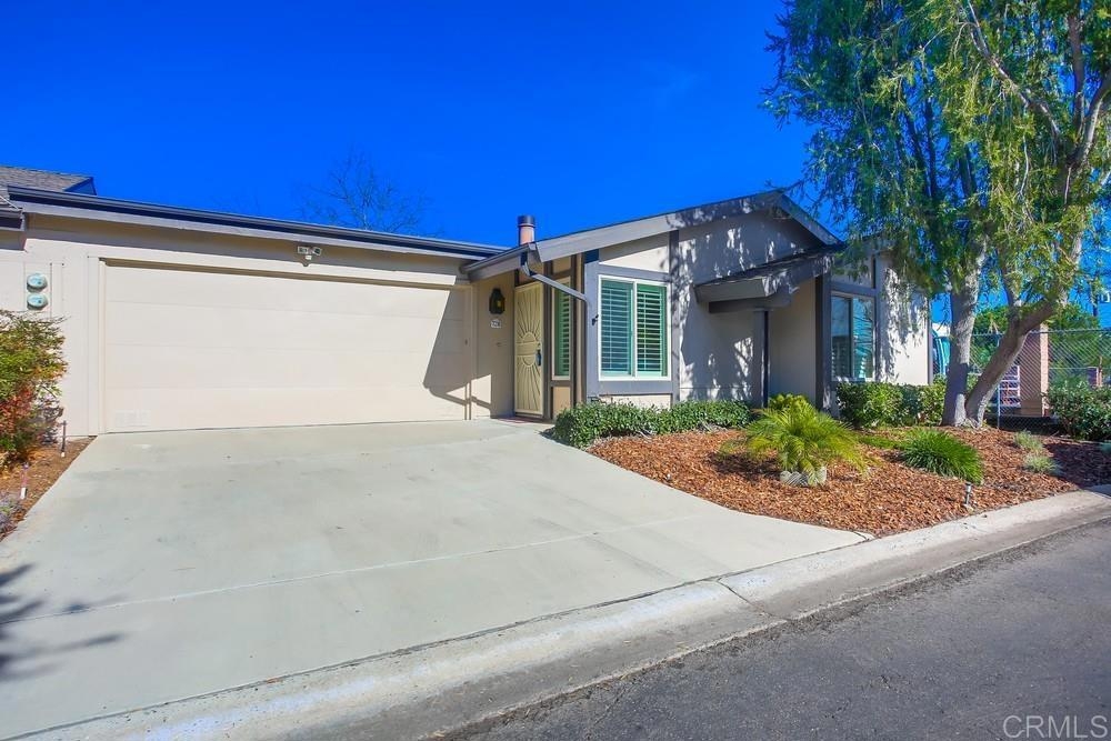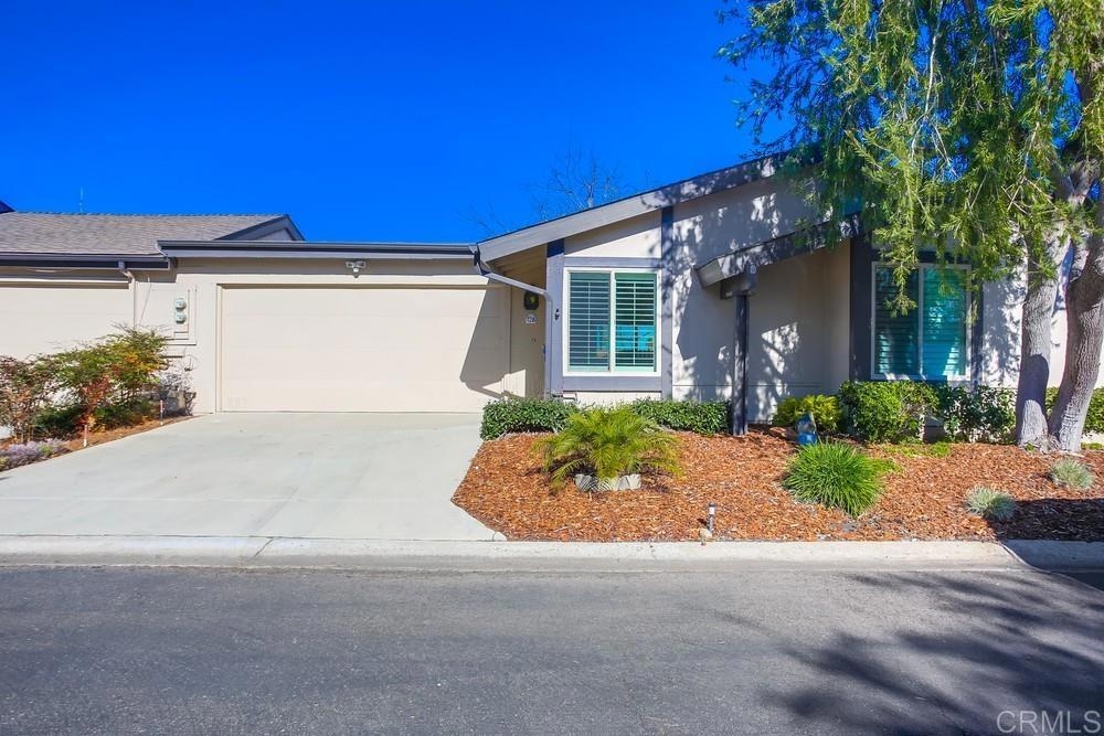 Fantastic end unit that was completely remodeled about 5 years ago! Age restricted community (55+) offers activities, pool & clubhouse + homeowner fee includes exterior maintenance (including roof) & front yard + pest control. Home has upgraded laundry room w/barn door to close off from kitchen, attached 2 car garage w/storage & built-in cabinetry in the dining area. Upgraded shower enclosures, tile flooring with carpet in both bedrooms + ceiling fans & shutters on most windows. Artificial turf in back yard. Plenty of guest parking adjacent to home & private, fenced patio! All within easy access to shopping & bus stop.