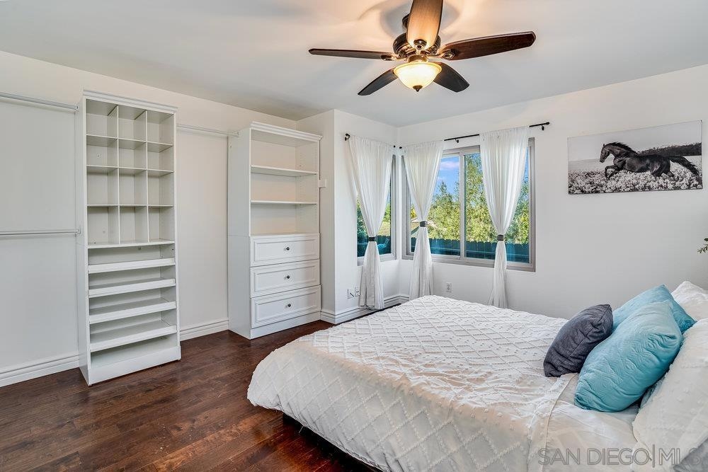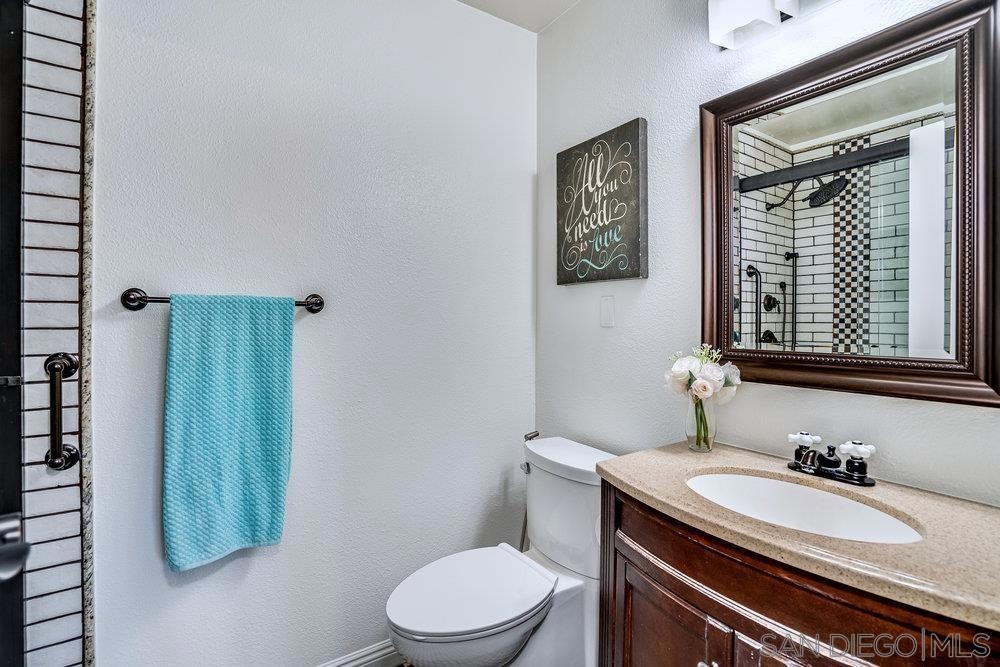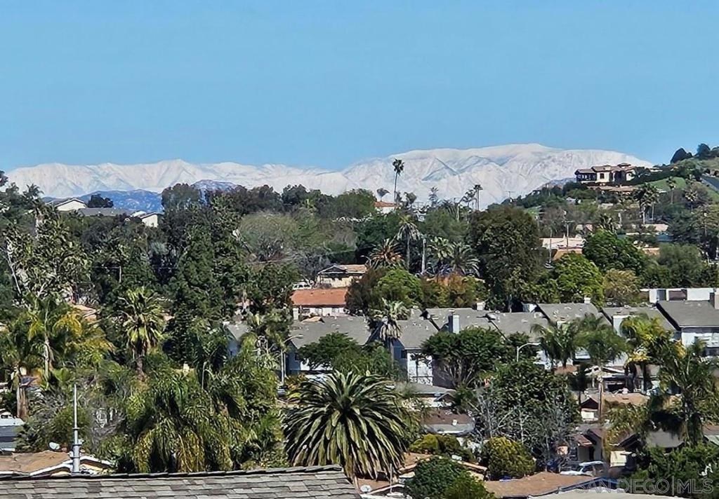 Imagine sipping your coffee and enjoying the beautiful views of the snow-capped San Bernadino mountains! Charming single-level attached property boasts an array of desirable features that make it a standout choice for comfortable and convenient living in the Nob Hill 55+ community of Vista, Ca. Engineered wood flooring throughout living room and bedrooms, upgraded bathrooms, and a beautiful and bold kitchen remodel with hazel green cabinets, white quartz counters with an undermount farmhouse sink, and a rustic red brick backsplash and accent wall. Fresh white interior paint highlights the vaulted ceilings and wood beams. In addition, the location of the property in the community is arguably one of the best as it sits at the top of Nob Circle both near the pool but also, and more importantly, in a position where you get views of the hillsides and snow-capped San Bernadino mountain range out of the kitchen, main bedroom, and outdoor patio where you can entertain your friends, family, and new neighbors. Development amenities includes Pool, Spa, RV & Boat parking/ Clubhouse and Recreation Room. Vista has been secretly becoming a vibrant destination community over the last decade as there's been an influx of restaurants and businesses alike. Multiple breweries, the Wave waterpark, Main St, and the amazing Moonlight Amphitheater that continuously host great shows and musical performances are all close by.