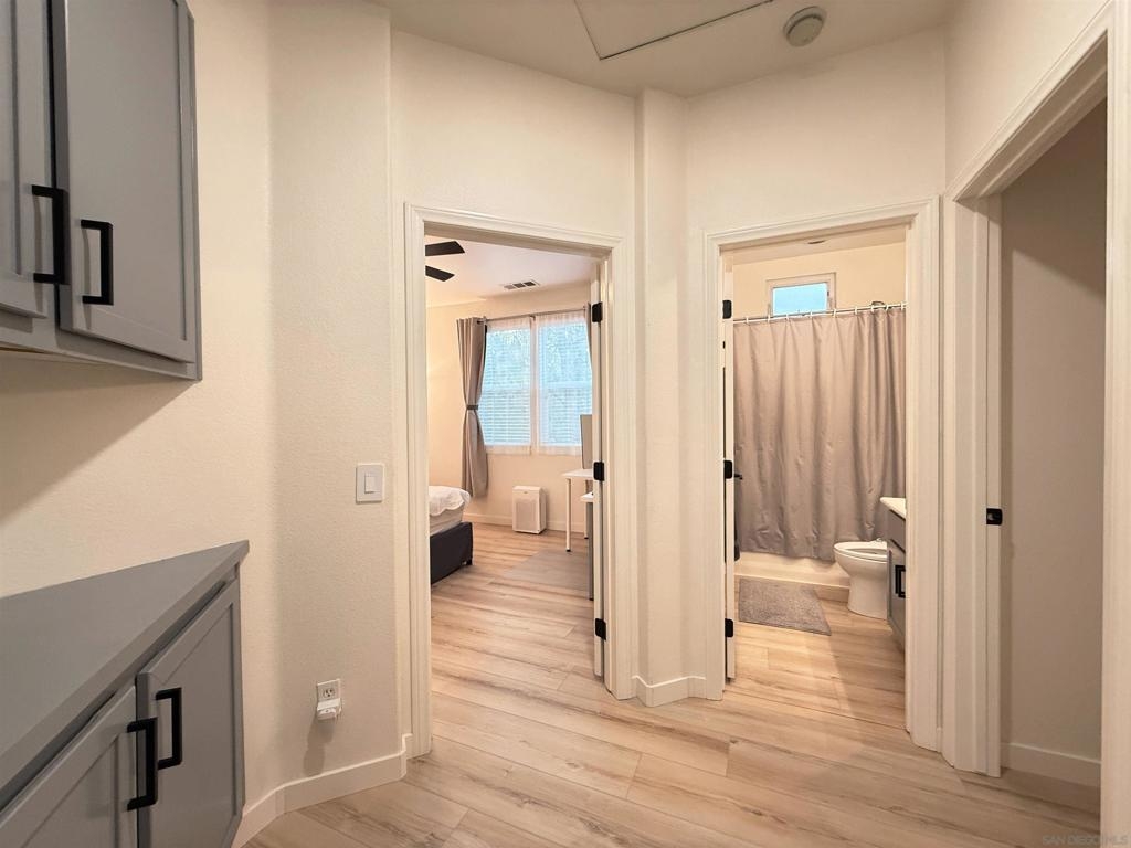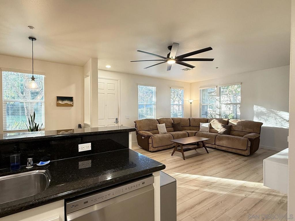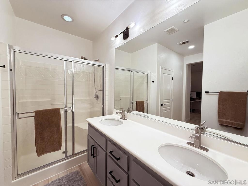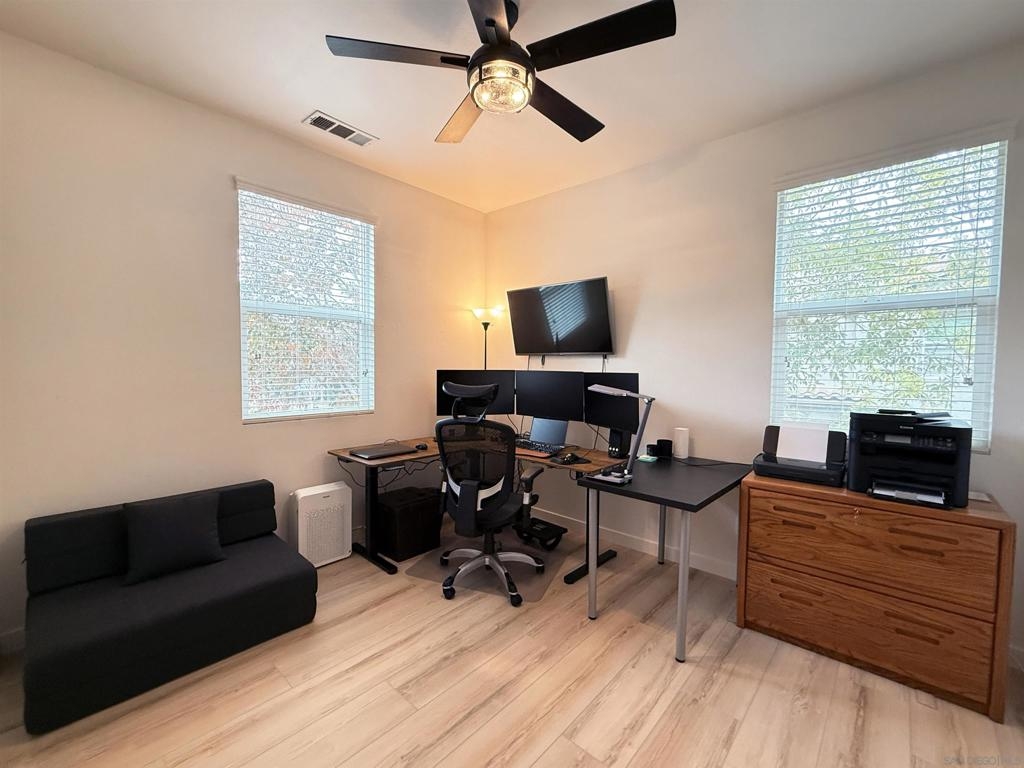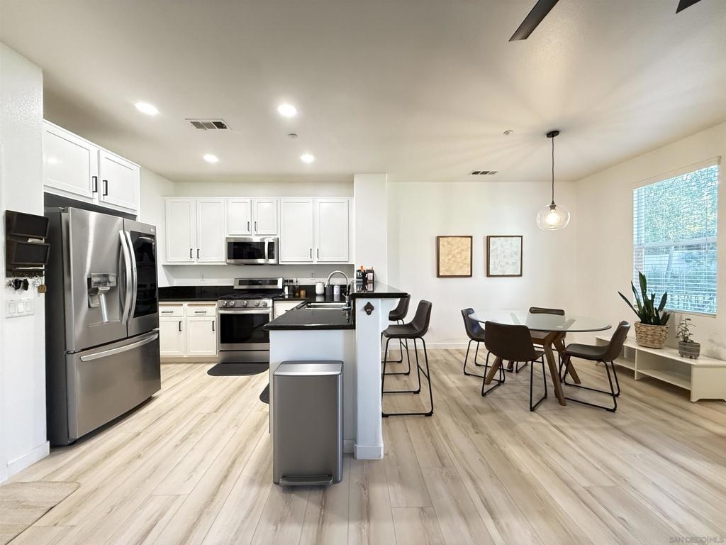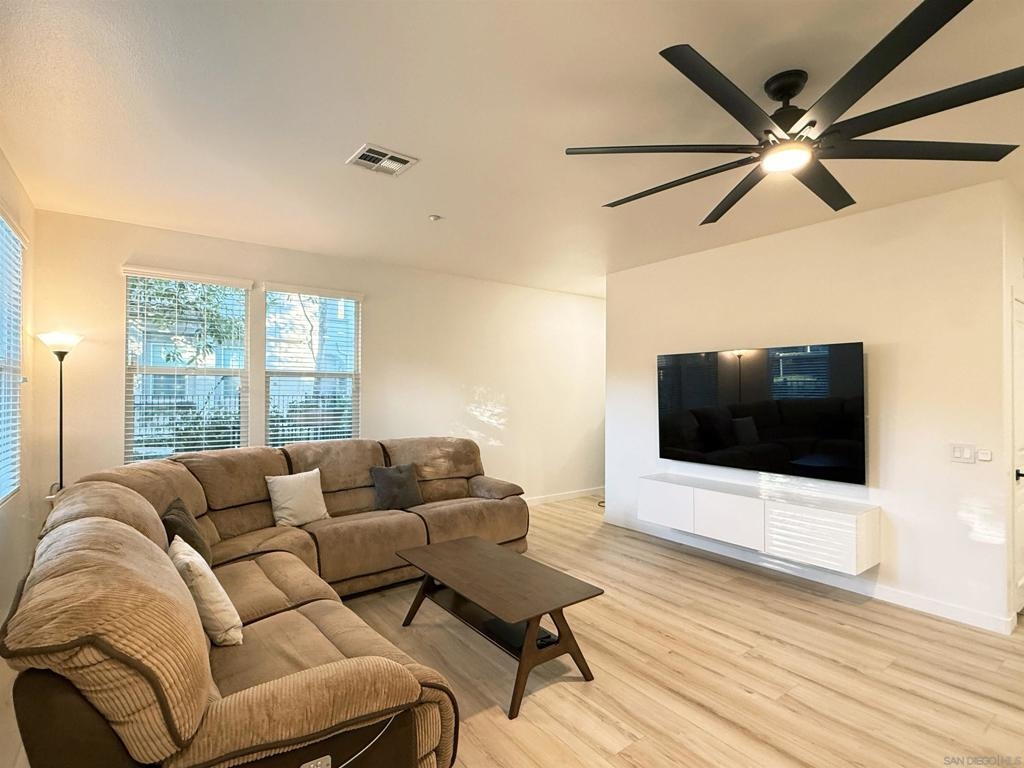 Updated, Modern, Move-In Ready, 3 bed/2.5 bath townhome offering the largest and most desirable floorplan (1,378 sq. ft.) in the most desirable location in the community. 5-minute walk to the NCTD Sprinter, connecting you to Amtrak, Coaster, Metrolink, CSU San Marcos, Downtown San Diego, Orange County, and LA—perfect for daily commuters or investors. Enjoy a private, secure, inward-facing unit that opens to a community playground—ideal for families. Spacious primary suite features two walk-in closets and a dual vanity, while a separate laundry nook keeps living spaces clutter-free. Upgrades include: Modern luxury vinyl wide-plank flooring through out, new Toto Drake toilets, matching ceiling fans, and upgraded A/C. Fully integrated smart home w/ dimmable LED lighting in every room. Walk to Vista Village (Cinepolis, The Wave, Frazier Farms) and the vibrant Downtown Vista scene of breweries, eateries, and entertainment. Just 8 miles to the coast! This home offers space, smart living, and unbeatable access—schedule your tour today! Home qualifies for 3% down conventional loan with no PMI - inquire with lender or ask agent.