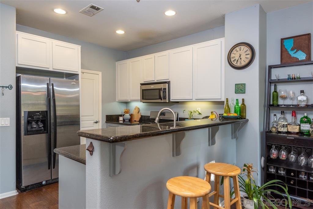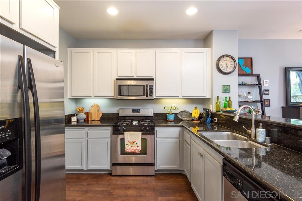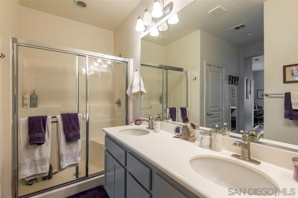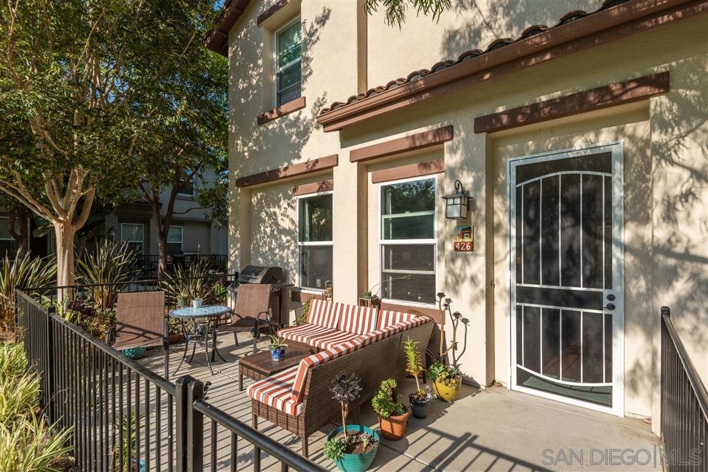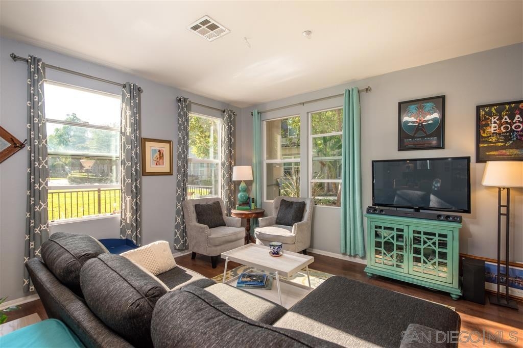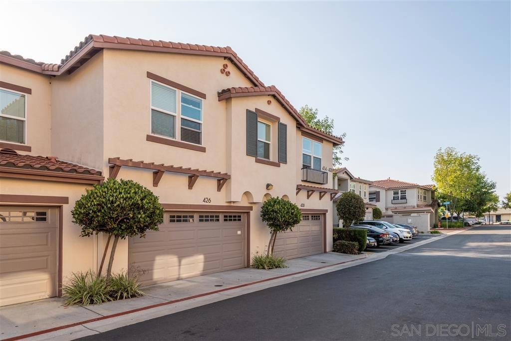 This spacious 2-story home with an open-concept floor plan offers a large kitchen with walk-in pantry & sit-in bar, dining area, bright, sunny living room, & half bath on the main floor. Newer paint & carpet, updated bathroom fixtures, high ceilings, & beautiful flooring combine for a fresh, stylish ambiance. Walk out the front door & BBQ on your own gated patio overlooking an expansive common area with grassy lawn & playset. Attached 2-car garage with designated laundry area and built-in storage. Designed for privacy, all three bedrooms are on the upper level with a separate full bath, and a master suite with 2 closets, dual vanities, large shower and room for an at-home workspace. A desirable interior unit in this small complex, the garage is easily accessible while the front door is securely facing away from the main street. The attached 2-car garage has built in shelving plus a designated laundry area including movable folding counter with storage cabinets. Conveniently located near shops, restaurants, breweries, movie theater, transit station, freeway, and walking distance to downtown Vista Village, this is the perfect place to call home. Equipment: Garage Door Opener, Range/Oven Other Fees: 0 Sewer: Sewer Connected Topography: LL