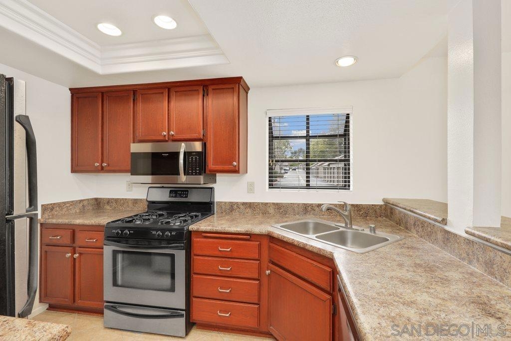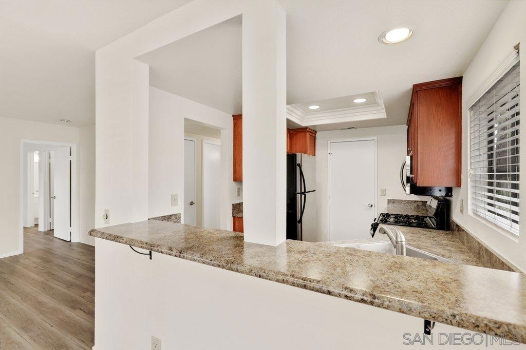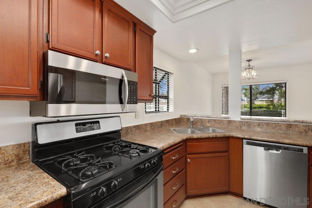 Move right in! You won't have to do a thing in this nicely updated 2 bedroom, 2 bathroom ground level corner unit condo. Featuring new fresh paint with on trend colors, new durable hybrid vinyl wood-like flooring, open floor plan, and a large outdoor space, an ideal place to relax with a cup of coffee or a glass of wine. Perfect for prep or a quick bite is the kitchen boasting granite-look laminate countertops, stainless steel appliances, wood colored cabinets, and tray ceiling with recessed lighting. Attached is a laundry closet with stackable washer and dryer for ease of convenience. Both bedrooms are generous in size and have ensuites and walk-in closets. Garage parking and additional designated spot are within seconds to the unit. Shadowridge Aspens is a highly desirable park-like community offering its residents great amenities such as a pool, spa, and clubhouse. Close to Shadowridge Golf Club, parks, shopping, dining, and freeway access. Don't miss out!