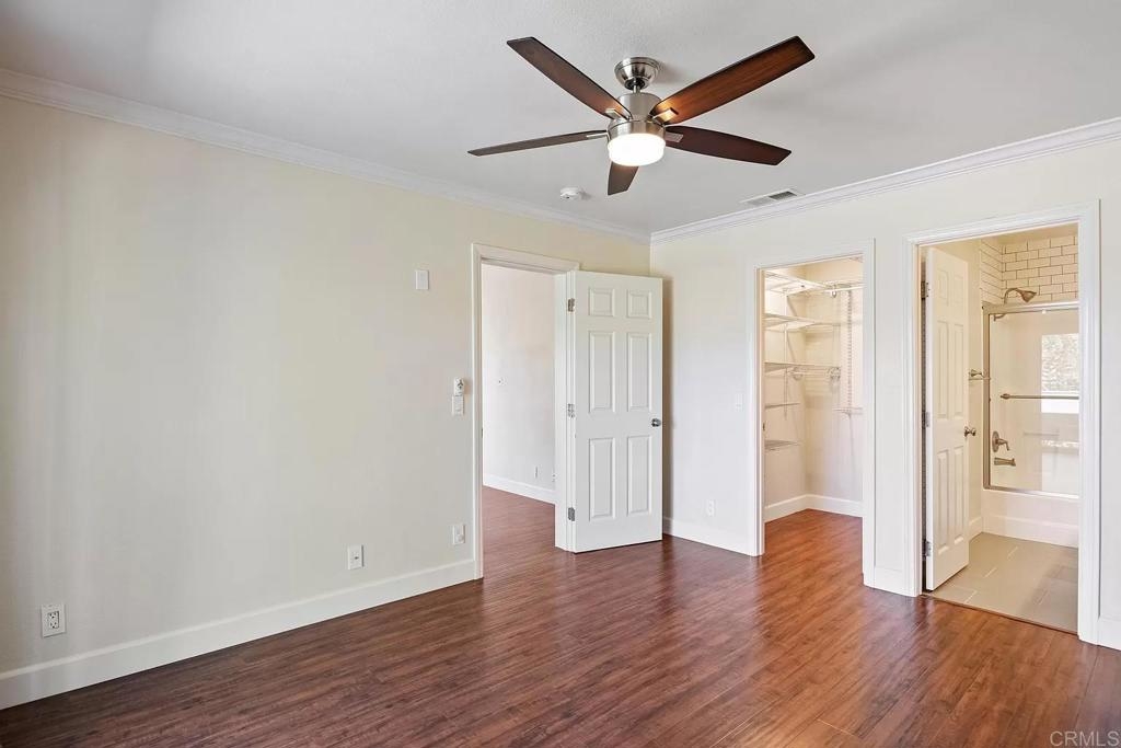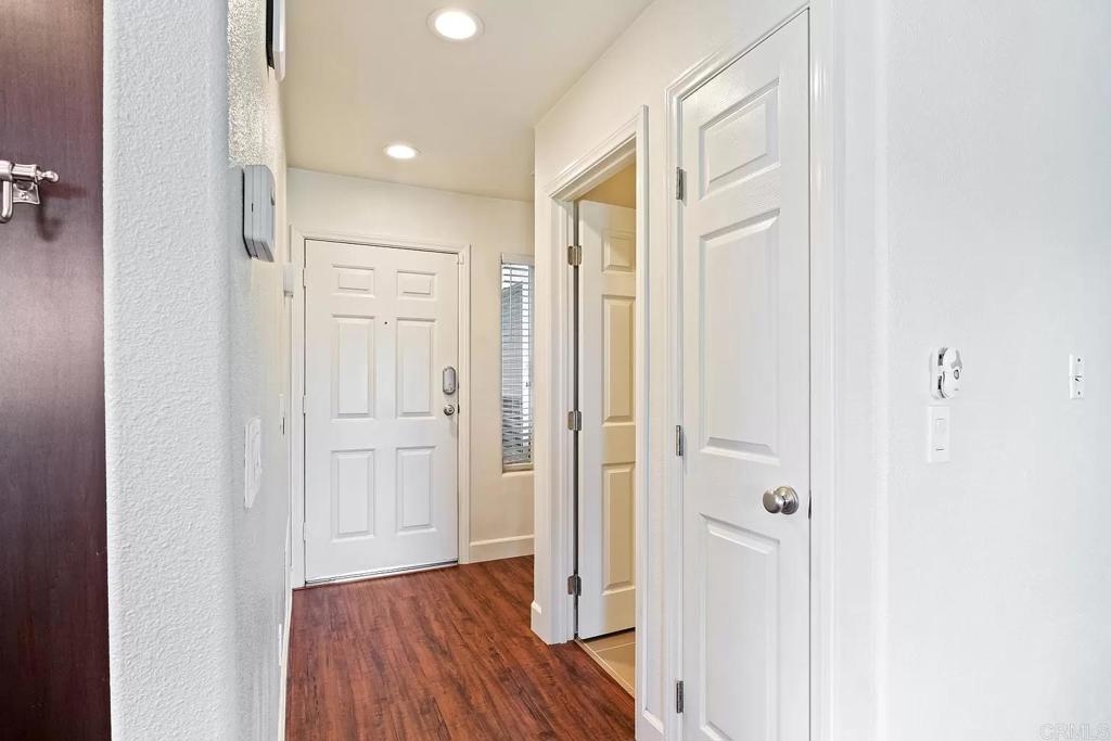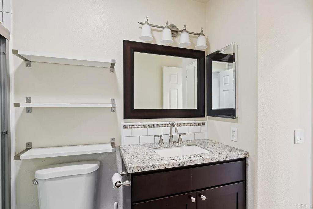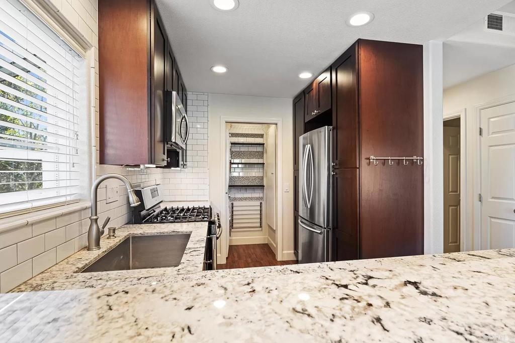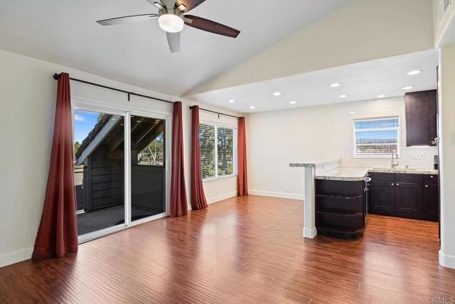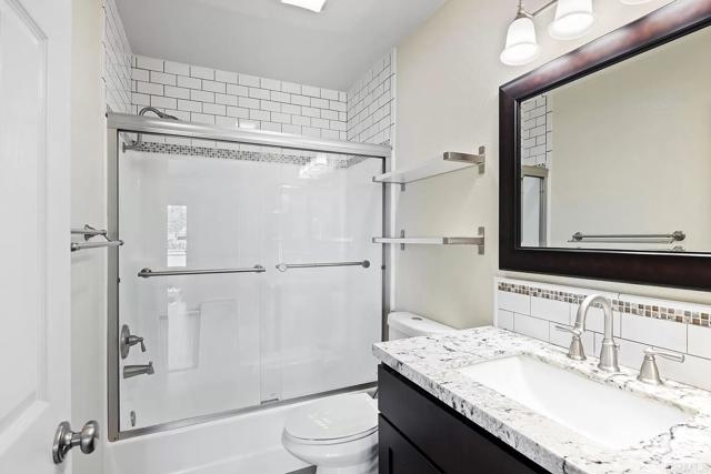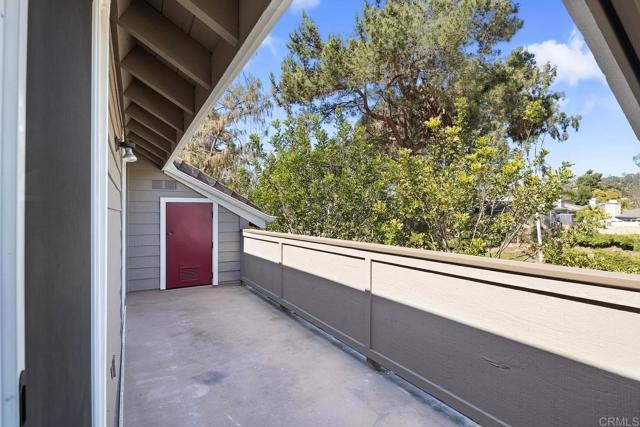 Come see this bright and beautiful condo in Shadowridge Aspens! This upstairs 2 bedroom, 2 full bath unit with vaulted ceilings is well maintained, refreshed, and ready to impress. It has tasteful and thoughtful finishes throughout - updated windows and sliders, engineered laminate flooring, plus neutral tile work and paint create a cohesive aesthetic from room to room. This unit is unique with its open, redesigned kitchen to include floor to ceiling pantry cabinets with pull-out shelving, deep drawers, large single basin sink, and full suite of stainless steel appliances. A pocket door to the laundry closet encloses the full-sized stackable washer and dryer, additional shelving, and furnace cabinet. The two nicely sized bedrooms, each with a walk-in closet and attached full bathroom, are the perfect set-up for split wing privacy. The large deck with additional storage overlooks the wonderful Shadowridge community, with a partial view of the golf course across the street. A shaded grassy area just outside with maintained flower beds and greenery creates a welcoming path leading up to the unit itself. For parking, enjoy an assigned uncovered space plus a detached single-car garage that offers even more storage, with pull-down stairs access to an attic space above. Community features include a clubhouse, pool, spa, and sitting areas for entertaining. HOA fees include water, trash, sewer, and maintenance of the public spaces. This condo is wonderfully located in proximity to so many of North County San Diego's best amenities. You'll be just minutes from every-day shopping and grocery stores, toes in sand at the beach, coastal entertainment hot spots, easy freeway access, and more. If you've been looking for just the right condo to call home, this is the one!