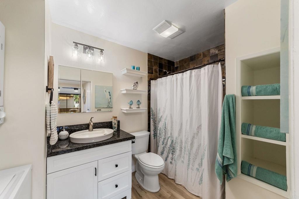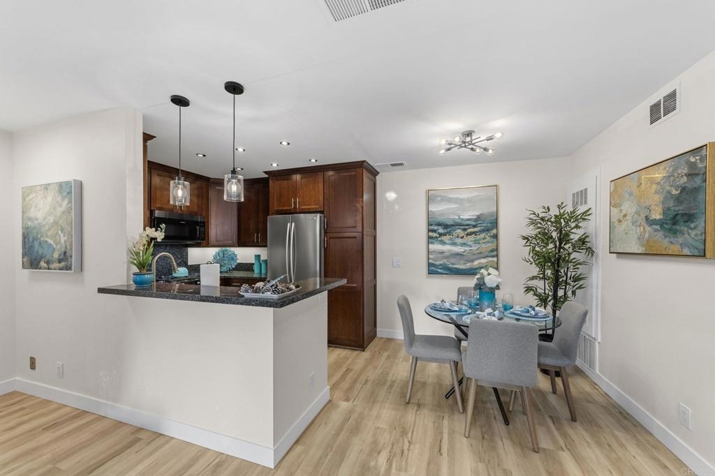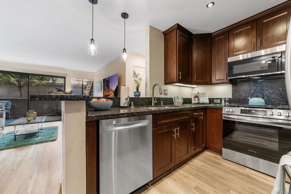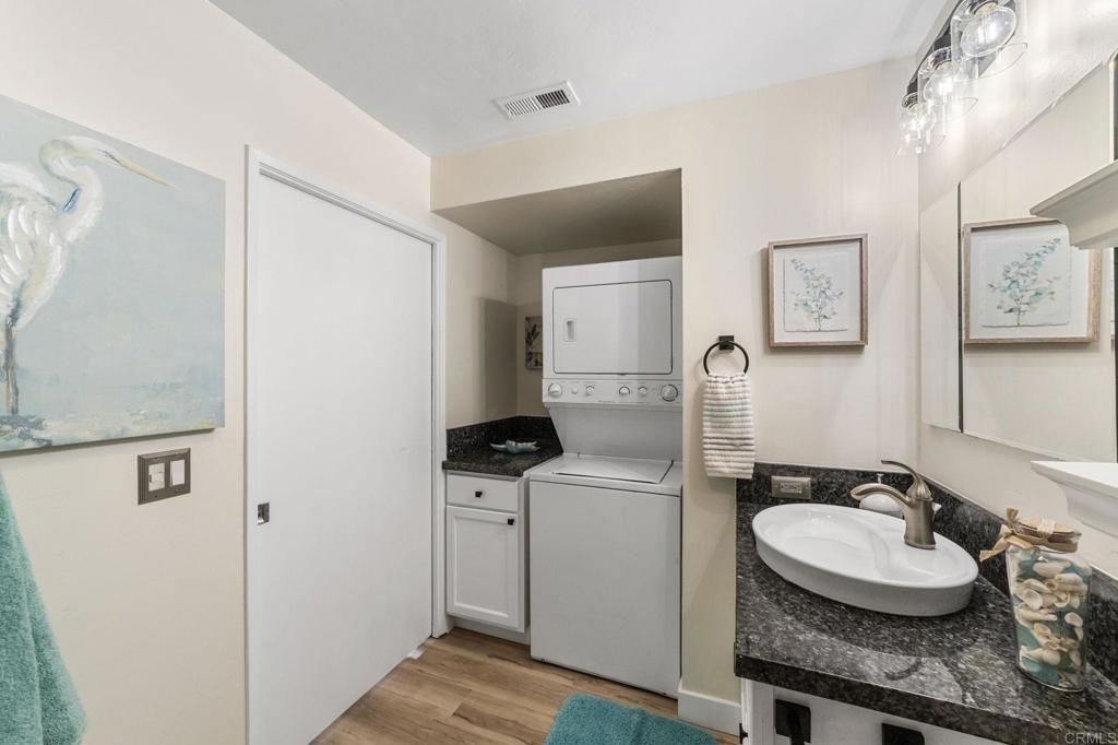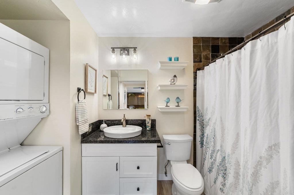 PRICE IMPROVEMENT! Seller will entertain offers from $449,900 to $499,900. Just Listed in Shadowridge Aspens! This beautifully upgraded, light and bright move-in ready condo is on the ground floor. It is packed with stylish updates and located in one of the most sought-after communities in Shadowridge! Features you'll love: New stylish flooring, Sleek stainless steel kitchen appliances, Kraft Maid cabinetry + Blue Pearl granite countertops, Fresh paint throughout, New lighting, fan, and window coverings, Stackable washer/dryer, Newer HVAC system including compressor , 1-car garage (#16) just steps from your front door, Private patio off both the living room & bedroom for effortless indoor/outdoor living, HOA includes a tranquil pool with lounge area. This is a Well maintained and beautiful community. Located near Hwy 78, top-rated dining, major shopping, and minutes from thriving Carlsbad Business Parks—home to many popular microbreweries. Shadowridge Golf Club is right across the street! Enjoy the tree-lined streets, a peaceful setting, and easy access to everything North County has to offer. Whether you're a first-time buyer or looking for low-maintenance living, affordable housing, this home is a must-see!