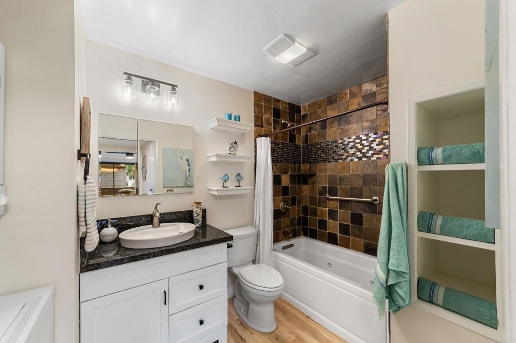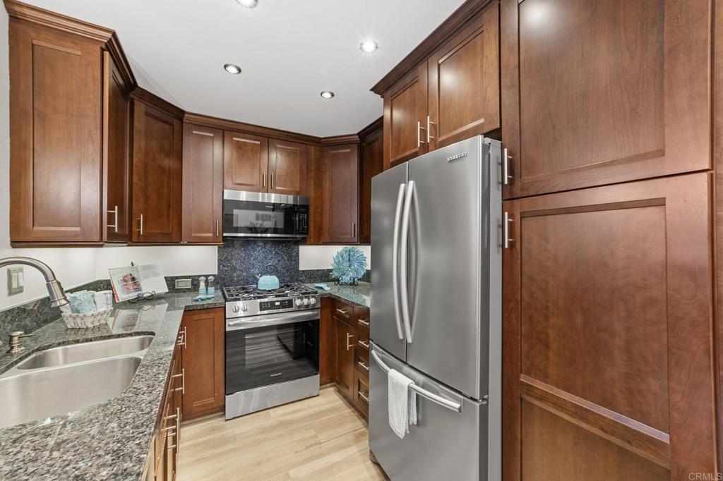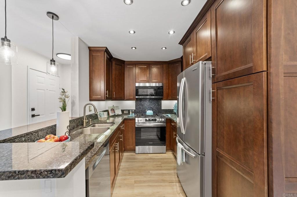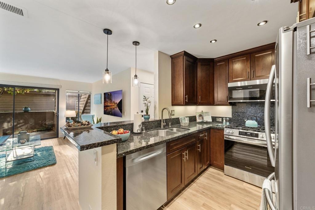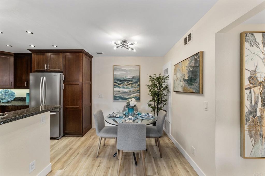 PRICE IMPROVEMENT! Seller will entertain offers from $449,900 to $499,900. Just Listed in Shadowridge Aspens! This beautifully upgraded, light and bright move-in ready condo is on the ground floor. It is packed with stylish updates and located in one of the most sought-after communities in Shadowridge! Features you'll love: New stylish flooring, Sleek stainless steel kitchen appliances, Kraft Maid cabinetry + Blue Pearl granite countertops, Fresh paint throughout, New lighting, fan, and window coverings, Stackable washer/dryer, Newer HVAC system including compressor , 1-car garage (#16) just steps from your front door, Private patio off both the living room & bedroom for effortless indoor/outdoor living, HOA includes a tranquil pool with lounge area. This is a Well maintained and beautiful community. Located near Hwy 78, top-rated dining, major shopping, and minutes from thriving Carlsbad Business Parks—home to many popular microbreweries. Shadowridge Golf Club is right across the street! Enjoy the tree-lined streets, a peaceful setting, and easy access to everything North County has to offer. Whether you're a first-time buyer or looking for low-maintenance living, affordable housing, this home is a must-see!