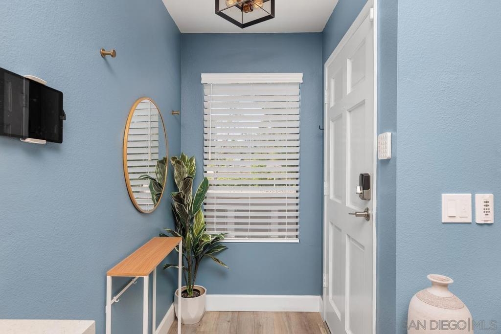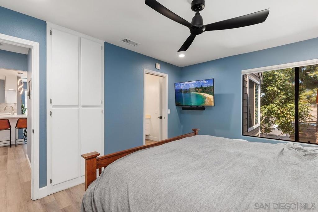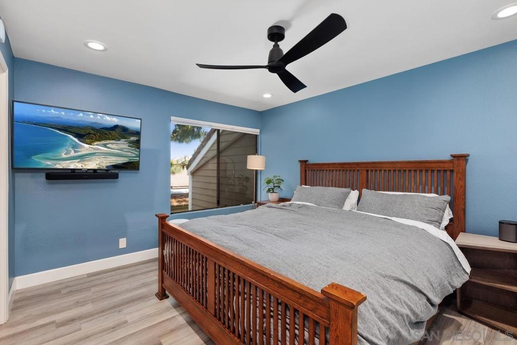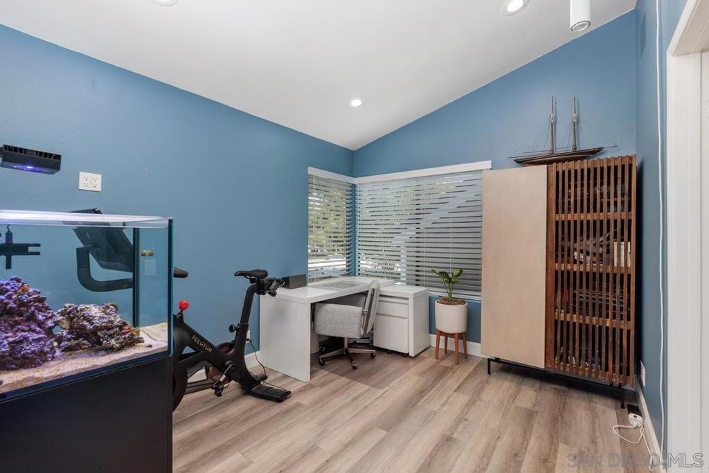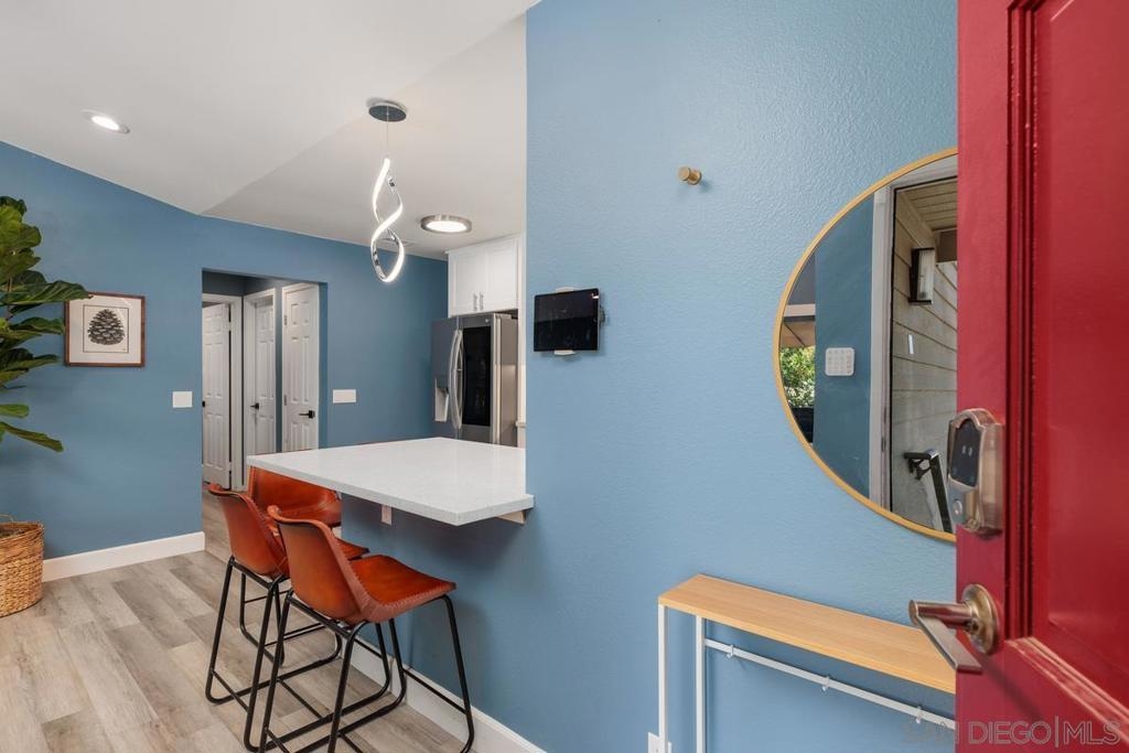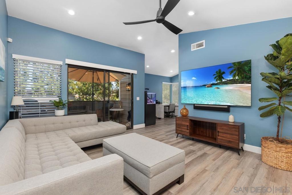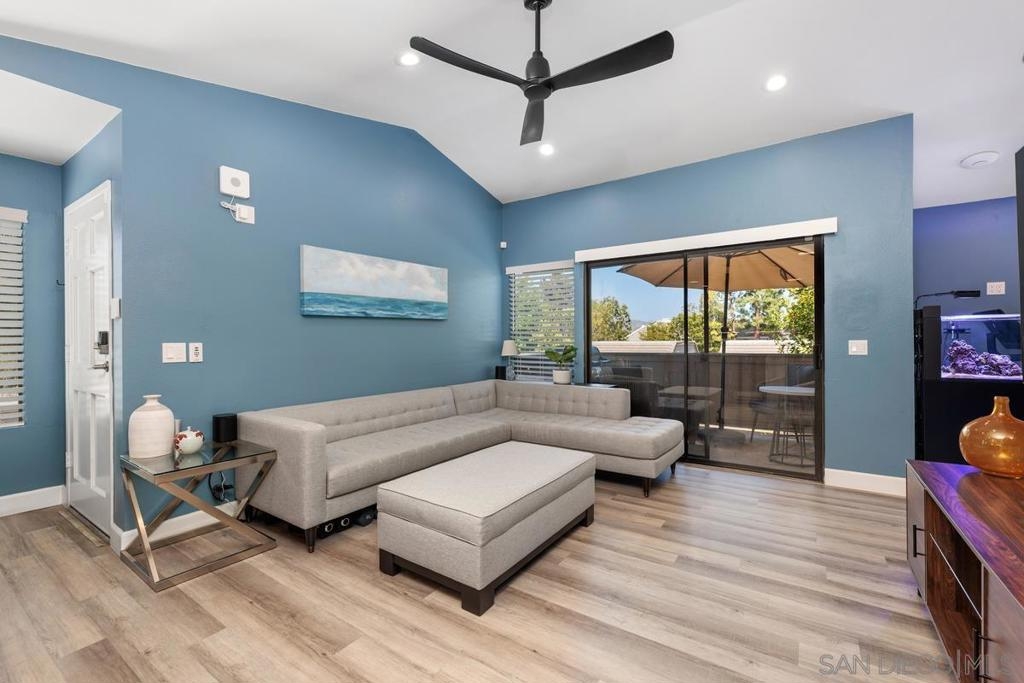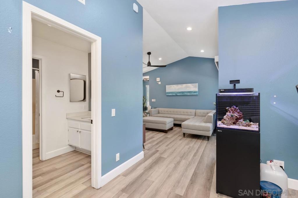 Explore endless possibilities in this remodeled upper corner unit in desirable Shadowridge Aspens! The vaulted ceiling fills the unit with natural light, creating an open and airy feel. The flexible floor plan includes a versatile open area ideal for a home office, den, or even a potential second bedroom. The living room features an inviting balcony where you can enjoy indoor/outdoor living. Inside, you'll find central A/C and heat, in-unit laundry, and a well-maintained interior featuring luxury vinyl plank (LVP) floors and recessed lighting. The fully remodeled kitchen boasts Shaker cabinets, new stainless steel appliances, a wine fridge, and a stylish subway tile backsplash. This charming unit includes a detached one-car garage, with RV parking available for a monthly fee. The community amenities are exceptional, including a clubhouse, pool, and spa for your enjoyment. Shopping, restaurants, Highway 78, and the beautifully manicured Shadowridge Golf Course are also just around the corner. With elegant updates and countless nearby conveniences, this condo is an opportunity not to be missed.