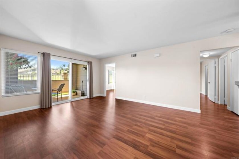 FORE! Enjoy the golf life from this condo patio, course-side at Shadowridge Golf Course! Remodeled first floor end-unit in Shadowridge Aspens. Updated kitchen and bathroom cabinets, granite stone counters and stainless appliances. The dishwasher is brand NEW! Covered patio with Spectacular Golf Course Views! Laminate wood floors throughout. Stacking washer and dryer in unit's own laundry room. Primary bedroom has large walk-in closet. Jack-and-Jill bathroom with separate vanity area. Quiet location in back of complex. Air conditioning, forced air heat, ceiling fans and recently upgraded dual pane vinyl windows keep this home comfortable. Assigned 1-car detached garage #124. Shadowridge Aspens is a well maintained community conveniently located near the 78 freeway, with sparkling pool, spa, clubhouse and lovely common grounds. HOA fees include water, trash, sewer, building insurance and common grounds maintenance. VA Approved Complex.