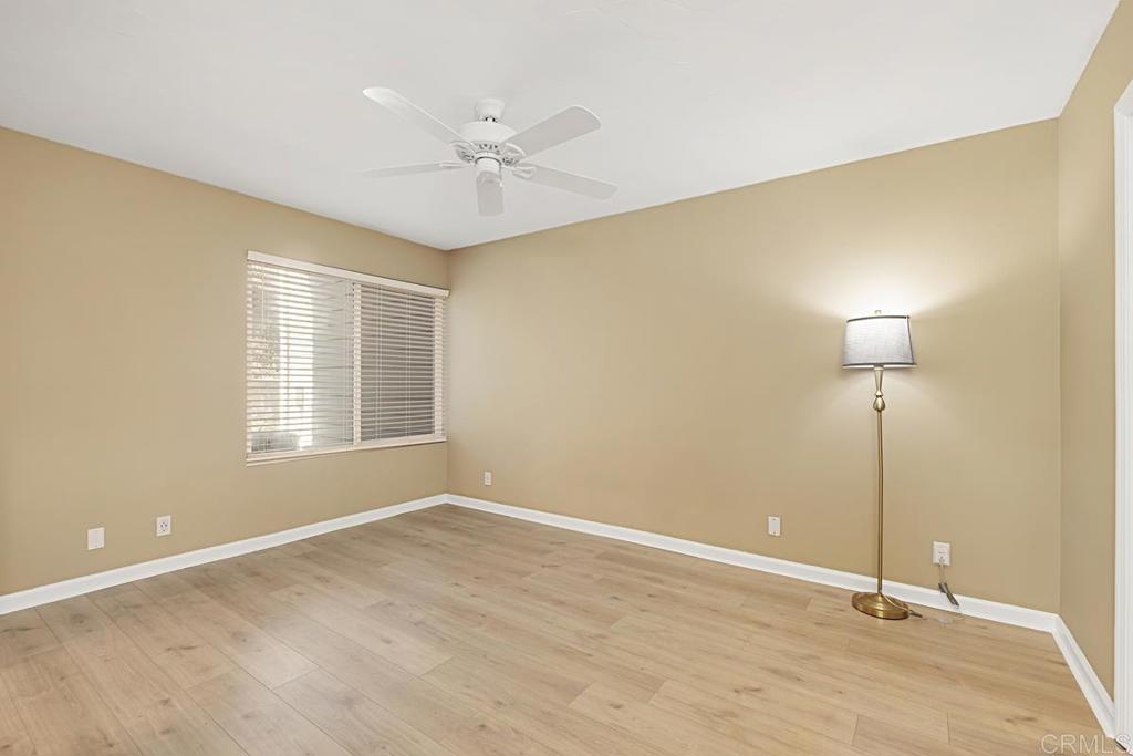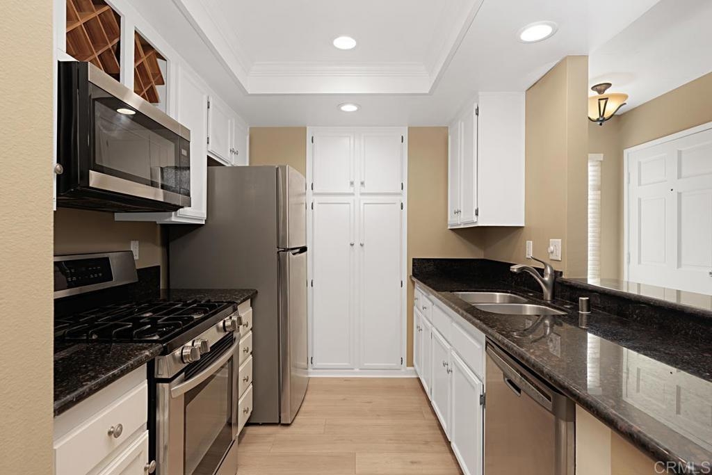 Beautiful end-unit, ground-level condo in the highly sought-after Shadowridge Aspens community. 2-bedroom + 1-bathroom home features a lovely kitchen with granite stone countertops and stainless steel appliances, remodeled bathroom with custom tiled tub surround, A/C, designer laminate flooring throughout, recessed lighting, ceiling fans, dual-pane vinyl windows and a custom California Closet organizer in the primary closet. Convenient in unit laundry room features a stackable washer and dryer. No problems parking here - unit comes with a detached 1-car garage. Enjoy the outdoors with a lovely private patio area overlooking the serene neighboring hillside. The complex enjoys access to a sparkling pool and spa. HOA provides trash, water, exterior maintenance and common area upkeep. Amazing location near shopping, grocery, restaurants, and just across the street from Shadowridge Golf Club. VA Approved complex.