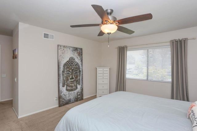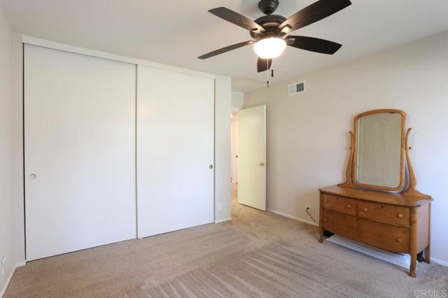 Showings begin @ 10:00 April 3. Cute, top floor, 2 bed 2 bath condo, located in beautiful Shadowridge. Vaulted ceilings and an open floor plan allow for a spacious feel. The inside laundry fits a full-size washer and dryer. The condo comes with a 1 car detached car for parking and extra storage. Relax at the community pool or walk to the park, grocery stores and restaurants. the condo is conveniently located near the 78 freeway.