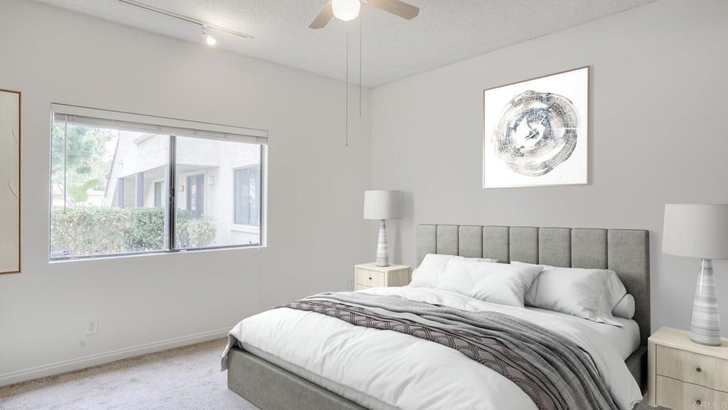 Charming first floor 2 bed , 2 bath condo in Shadowridge. Step into a bright and airy living space where natural light floods through large windows. The entire condo has been freshly painted, creating a crisp and inviting atmosphere. The open-concept living and dining area seamlessly flow together, offering the perfect space for both entertaining and relaxation. The well-appointed kitchen features white marble quartz countertops and plenty of cabinet space. The spacious master bedroom has a private en-suite bathroom and full length mirror sliding door closet. The second bedroom is equally inviting, ideal for guests or a home office. With thoughtful updates throughout, this condo is move-in ready! Enjoy the convenience of a one car detached garage and additional storage. Outside, a private balcony awaits, offering a peaceful spot to sip your morning coffee. Take advantage of the community amenities, explore the nearby parks, and enjoy easy access to freeway, shopping, and more. Don't miss the opportunity to make this updated, light, and bright condo your new home in Shadowridge.