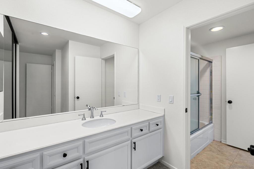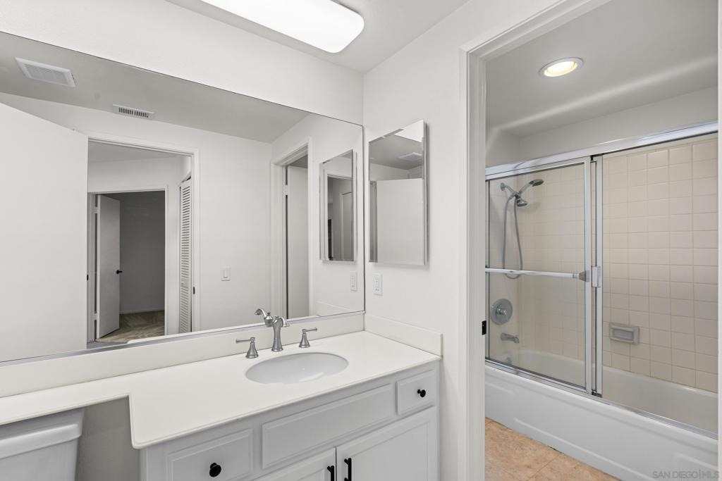 $20,000 Price Reduction! Welcome to an exquisite, newly remodeled unit within the esteemed Shadowridge Glen Community. This captivating and rarely available bottom unit offers 2 sizable bedrooms and 1.25 bathrooms. As you step inside, discover an inviting space where the living room seamlessly connects to your private patio—a serene spot to unwind and relax. The kitchen showcases brand-new stainless steel appliances and pristine white cabinetry, while also featuring an open pass-through to seamlessly interact with your guests. This unit features a primary en suite bedroom with separate vanities, ensuring both comfort and functionality. Additionally, discover a side-by-side laundry closet with a full-size washer and dryer. Storage options include a patio storage room, laundry area space, and built-in garage shelves, accompanied by an extra parking spot. Enjoy the meticulously manicured grounds of Shadowridge Glen with a welcoming pool and spa. Easy access to the 78 and Shadowridge Golf Club. Positioned close to excellent schools, superb shopping, dining, and major highways, this residence seamlessly blends comfort with accessibility.