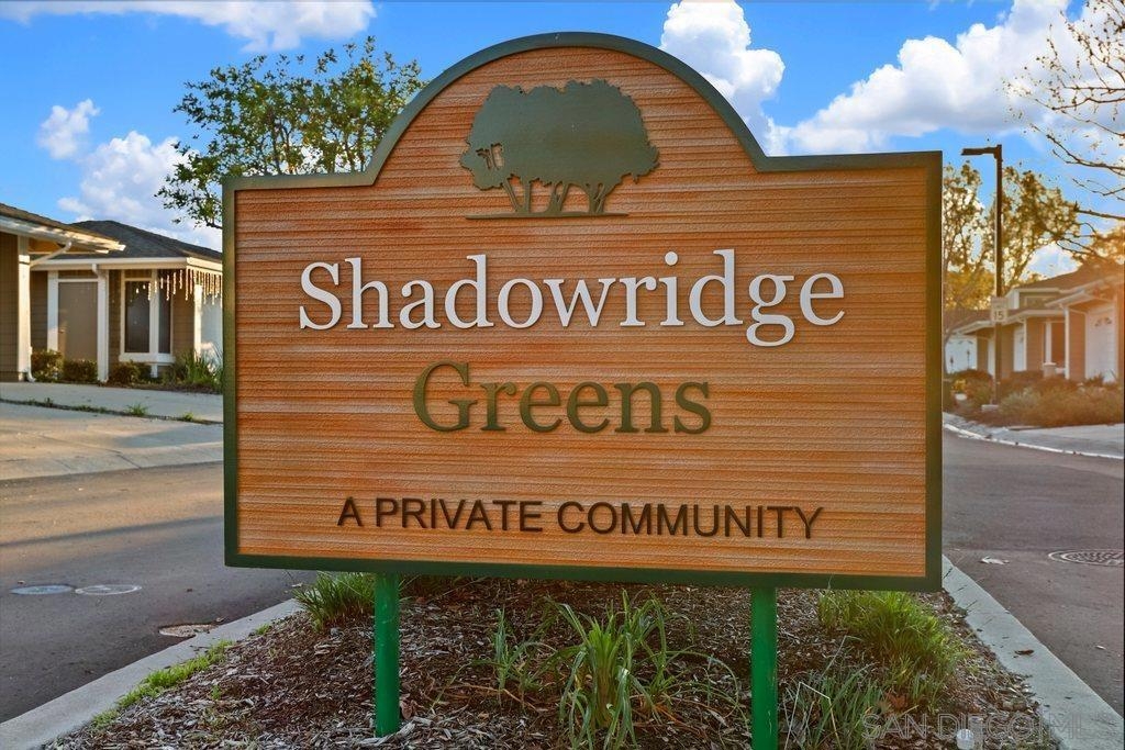 Beautifully maintained single story Townhome with an attached two-car garage located within the highly sought after community of Shadowridge Greens in Vista. This amazing residence features neutral paint and trim, a cozy fireplace, and durable flooring throughout the main living areas of the home. An open floorplan with vaulted ceilings and large windows basks the home in an abundance of natural light. A beautifully appointed kitchen with recessed lighting and breakfast counter seating that opens to the living area. A spacious primary suite with its own en-suite bath, walk-in closet, and exterior patio access. Outdoor living extends to the private backyard featuring thoughtfully designed hardscape including artificial turf and low-maintenance landscaping, making it perfect for entertaining. Great community amenities include a sparkling pool and spa. Conveniently located, just minutes away from shopping, dining, golf amenities, parks, Highway 78, plus so much more. Don’t let this opportunity pass you by!