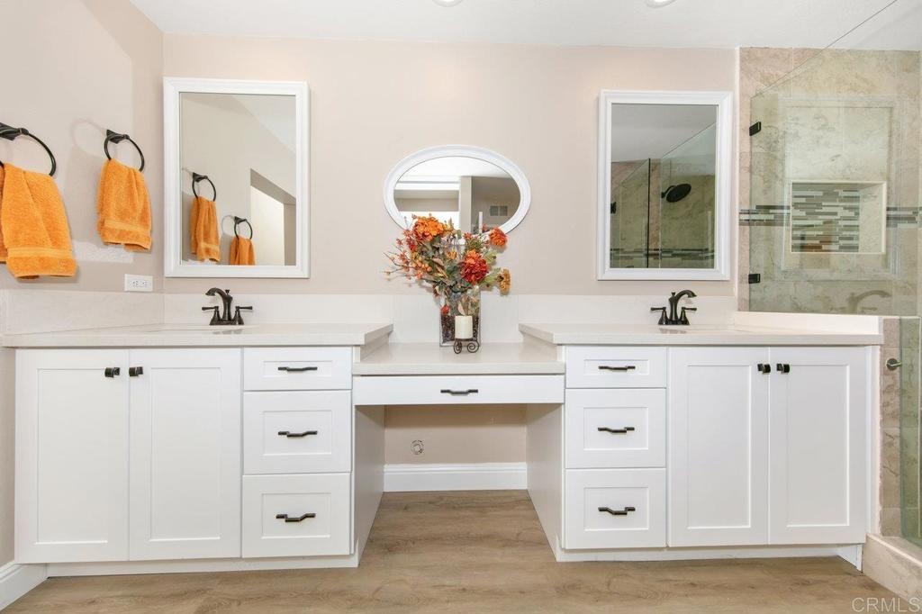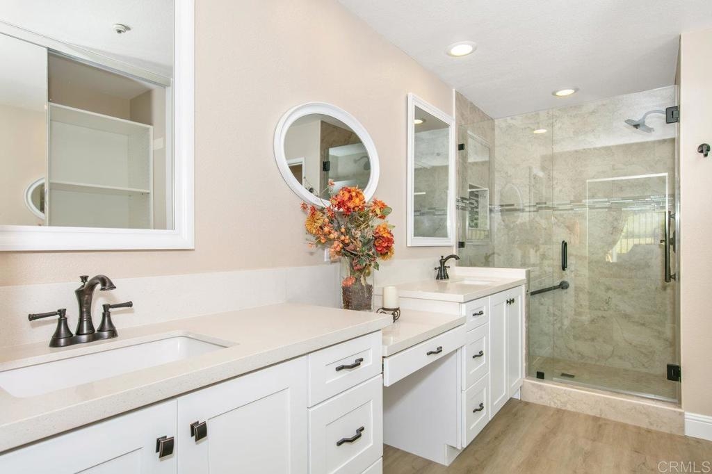 Discover Sunrise at Shadowridge. This Stunning Single Level Townhome sits on a Golf Course View Lot offering a Quiet, Private, Peaceful Setting on a Secluded Cul-De-Sac. Completely Remodeled Kitchen and Baths include all new Custom Cabinetry. Light & Bright Interior features Soaring Volume Ceilings and newly installed Can Lighting. The Master Bath is Truly Spectacular featuring a Walk-In Shower w/Frameless Glass and Custom Closet Organizers w/Added Built-In Storage. All New Milgard Windows. Gorgeous Plantation Shutters. Quality Laminate Flooring, Brand New Carpeting, and Upgraded Base installed throughout. Upgraded Interior Doors & Hardware. Awesome Remodeled Fireplace. The Den works well as a Cinema Room, Home Office, or can serve as an Optional 3rd Bedroom. Beautiful Landscape Remodel includes System Paver Patios & Walkways. Spacious 2 Car Garage includes added Storage Cabinets and Epoxy Coated Floors. Our Popular Sunrise Community is nestled between the the 3rd and 7th Fairways of Shadowridge Golf Club. It's a Short Walk to the Clubhouse, Shadowridge Community Parks, and Nearby Hiking Trails. Spectacular Restaurant & Shopping Venues in Carlsbad’s nearby Bressi Ranch are just an 8 Minute Drive Away. No Mello Roos Fees or Special Assessments. Low $195/Mo HOA Fee includes Complete Front Yard Landscape Maintenance and private use of Community Pool. Please Come By and Visit. In the meantime have a Look at the Custom Property Website Link attached to this listing.