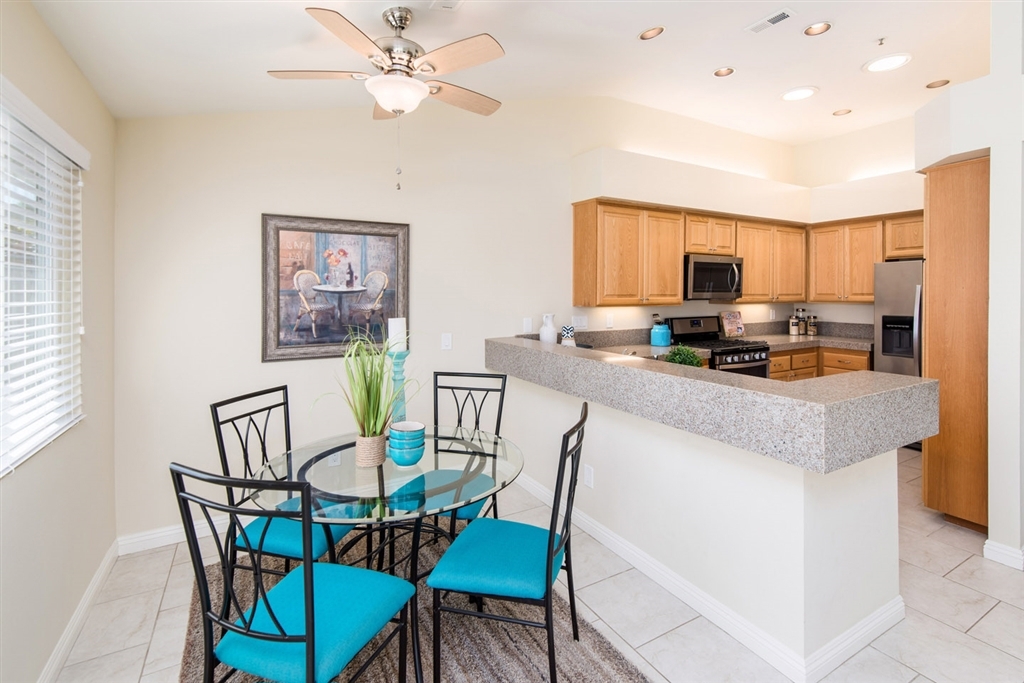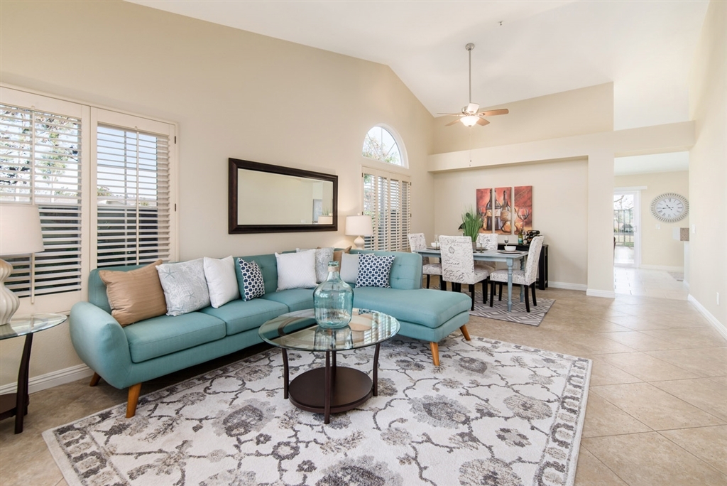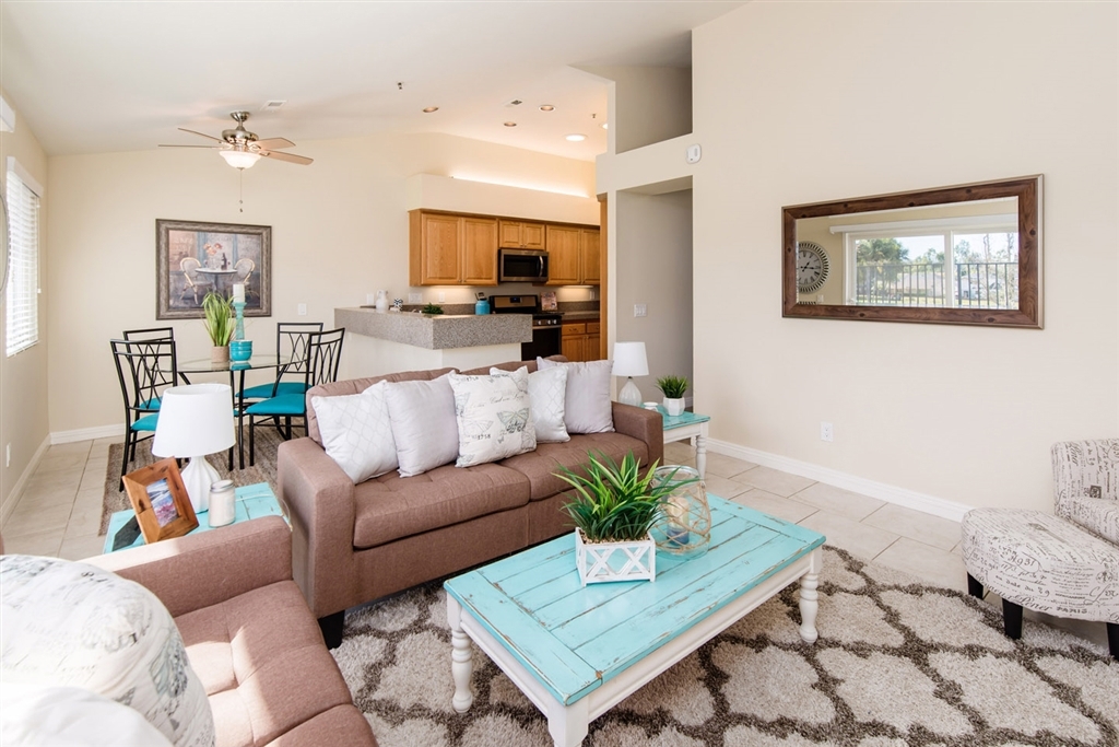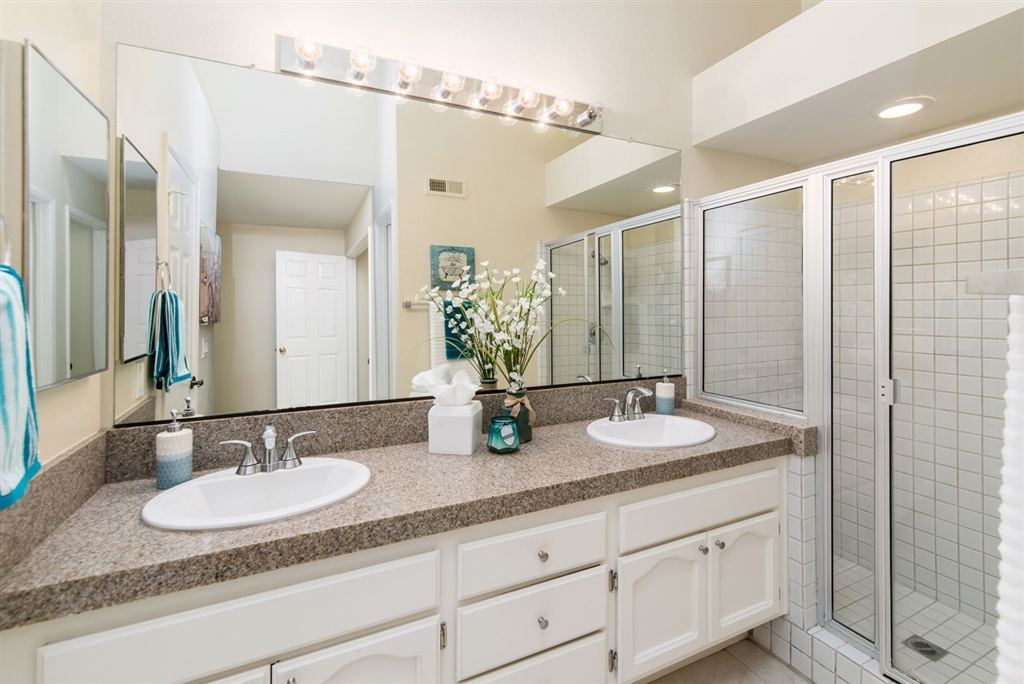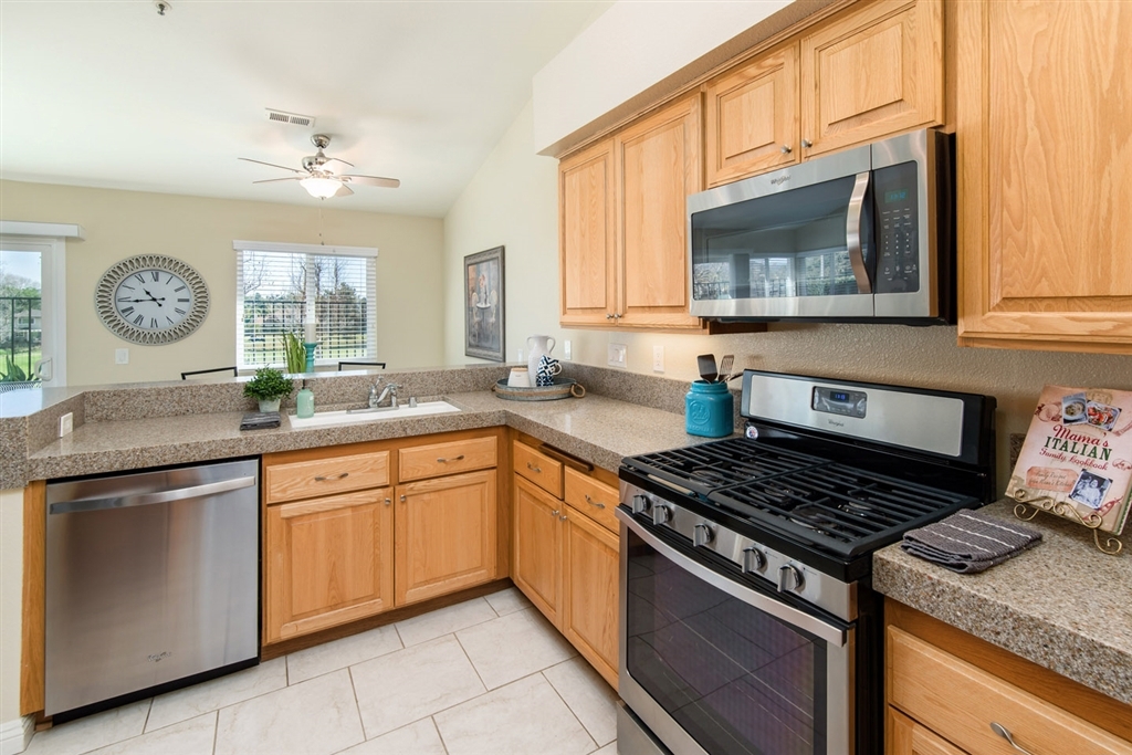 Welcome to your private retreat with the best golf course view in the community! Feels like a single family home with only 1 direct neighbor. Notable features include new low maintenance tile flooring throughout, new baseboards, fresh neutral paint, dual pane windows, new hard surface counter tops in the kitchen, new stainless steel appliances, upgraded gas log fireplace, inside laundry, all copper plumbing, upgraded garage opener with remotes. Quiet community offers residents pool & spa. (See supplement) Home has been extensively updated within the past 2 years including new flooring and baseboards, new window treatments in the family room and kitchen, new hard surface counter tops in the kitchen and all new appliances, new gas log insert was added to the family room fireplace. Entire home has been re-plumbed with copper piping. Dual pane windows and sliding glass doors insulate the home from the external temperature changes as well as any outside noise. Master retreat has private access to the patio and its own en-suite bath. Additional bath and full bedroom are perfect for guests. Laundry is conveniently located inside. Low maintenance back yard overlooks the signature hole on the golf course. Front yard landscaping is maintained by the HOA. Community offers its residents a swimming pool & spa.. Neighborhoods: Sunrise Complex Features: ,,, Equipment: Dryer,Garage Door Opener, Washer Other Fees: 0 Sewer: Public Sewer Topography: LL