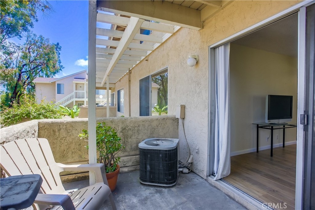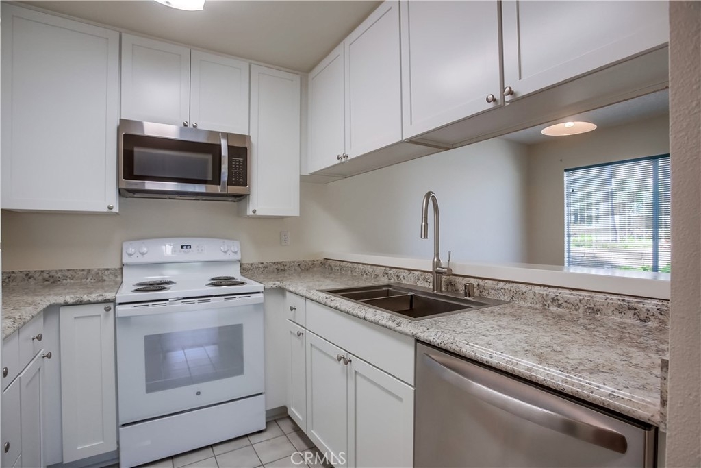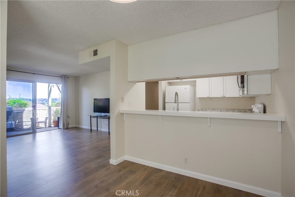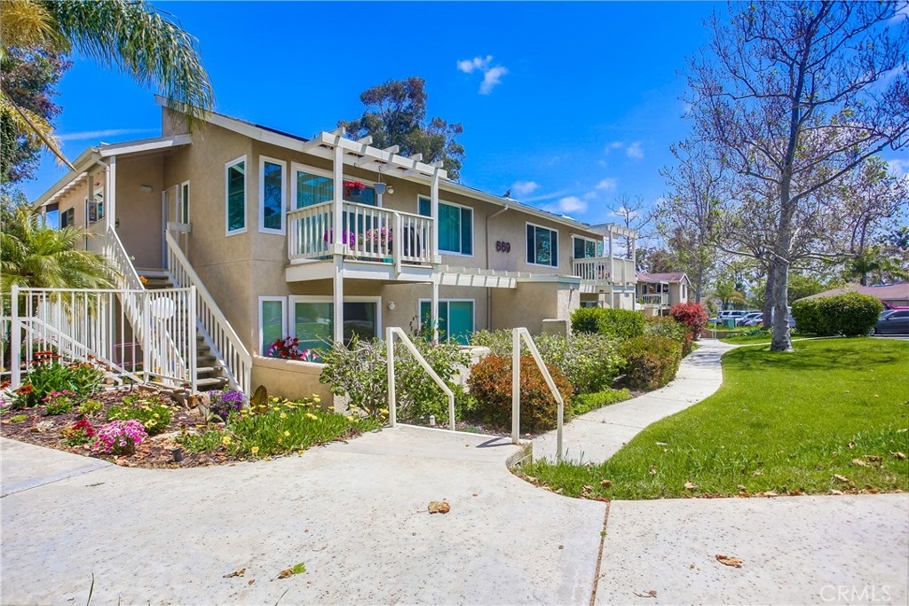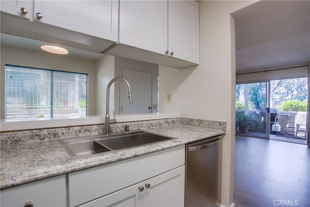 A Very Nice complex and .......WHO WOULD EVER THINK, you could OWN your own home in Southern CA for this price!?!!! 1 BR, 1 BA on the view side of this elevated building in Vista, close to everything! Really nice division of space with plenty of light! Living room with glass slider to patio and view. Backs to a green belt with a north east view and no close neighbors - great privacy since the position is elevated and among trees. Back to the interior...... The Dining room is across from the kitchen with a bar separating them so you can sit at the counter to entertain the cook, or sit at a table and enjoy your friends! The kitchen is great with shaker style cabinets, a BEAUTIFUL new stainless farm sink & new modern look faucet, beautiful granite style counters, new stainless dishwasher, new stainless microwave and a 4 burner newer electric range. There is new wood style flooring throughout with the exception of the kitchen and shower room. There is a Samsung stackable full size laundry in the hallway so there's no need to use a public laundry! (Thank goodness) The bedroom is large with more than enough room for a king size bed! There are 2 large closets with another closet at the dressing area next to the sink. The 'wet' area of shower and toilet has it's own privacy door and plenty of room. This is just a GREAT location within the tract, only a bit away from your reserved parking space & the garage so it's nice and quiet but not a long hard trek with groceries! You are near a community gym that is bright and easy to get to..... so no excuses for not working out on the 2 treadmills, elliptical, stationary bike, weight machine and bench. The pool, spa and tennis court are just around a corner and you're close to absolutely EVERYTHING! Near downtown Vista Village with dining and entertainment, the 78 freeway and the Wave Water Park! You're less than 8 miles from the beach and you will feel like the luckiest person ever - to finally own your own chunk of Southern California! This will not last - Seriously a great little home to call your own!