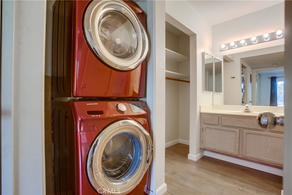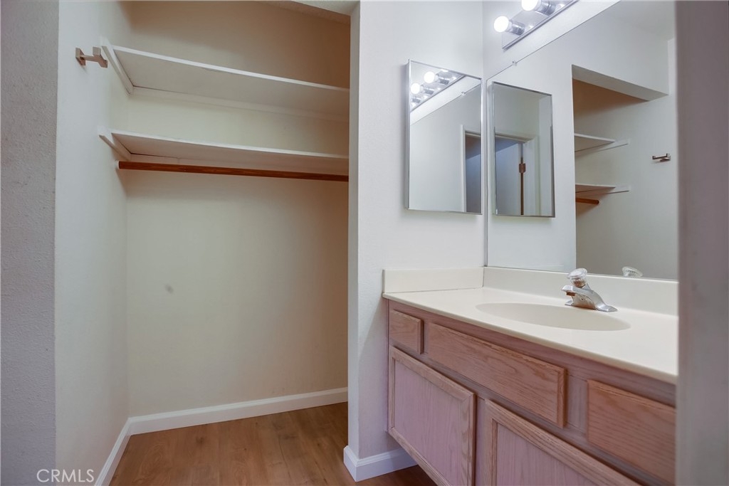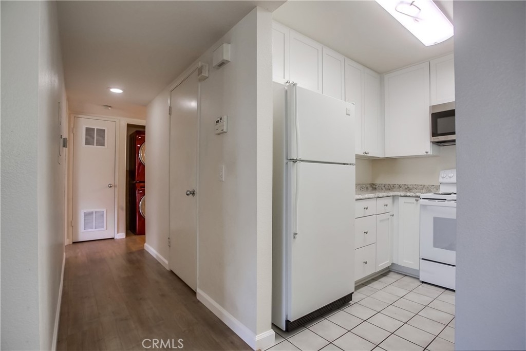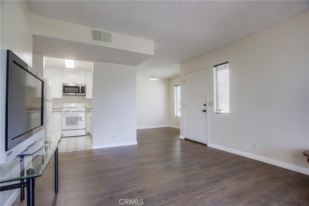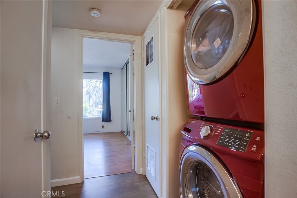 A Very Nice complex and .......WHO WOULD EVER THINK, you could OWN your own home in Southern CA for this price!?!!! 1 BR, 1 BA on the view side of this elevated building in Vista, close to everything! Really nice division of space with plenty of light! Living room with glass slider to patio and view. Backs to a green belt with a north east view and no close neighbors - great privacy since the position is elevated and among trees. Back to the interior...... The Dining room is across from the kitchen with a bar separating them so you can sit at the counter to entertain the cook, or sit at a table and enjoy your friends! The kitchen is great with shaker style cabinets, a BEAUTIFUL new stainless farm sink & new modern look faucet, beautiful granite style counters, new stainless dishwasher, new stainless microwave and a 4 burner newer electric range. There is new wood style flooring throughout with the exception of the kitchen and shower room. There is a Samsung stackable full size laundry in the hallway so there's no need to use a public laundry! (Thank goodness) The bedroom is large with more than enough room for a king size bed! There are 2 large closets with another closet at the dressing area next to the sink. The 'wet' area of shower and toilet has it's own privacy door and plenty of room. This is just a GREAT location within the tract, only a bit away from your reserved parking space & the garage so it's nice and quiet but not a long hard trek with groceries! You are near a community gym that is bright and easy to get to..... so no excuses for not working out on the 2 treadmills, elliptical, stationary bike, weight machine and bench. The pool, spa and tennis court are just around a corner and you're close to absolutely EVERYTHING! Near downtown Vista Village with dining and entertainment, the 78 freeway and the Wave Water Park! You're less than 8 miles from the beach and you will feel like the luckiest person ever - to finally own your own chunk of Southern California! This will not last - Seriously a great little home to call your own!