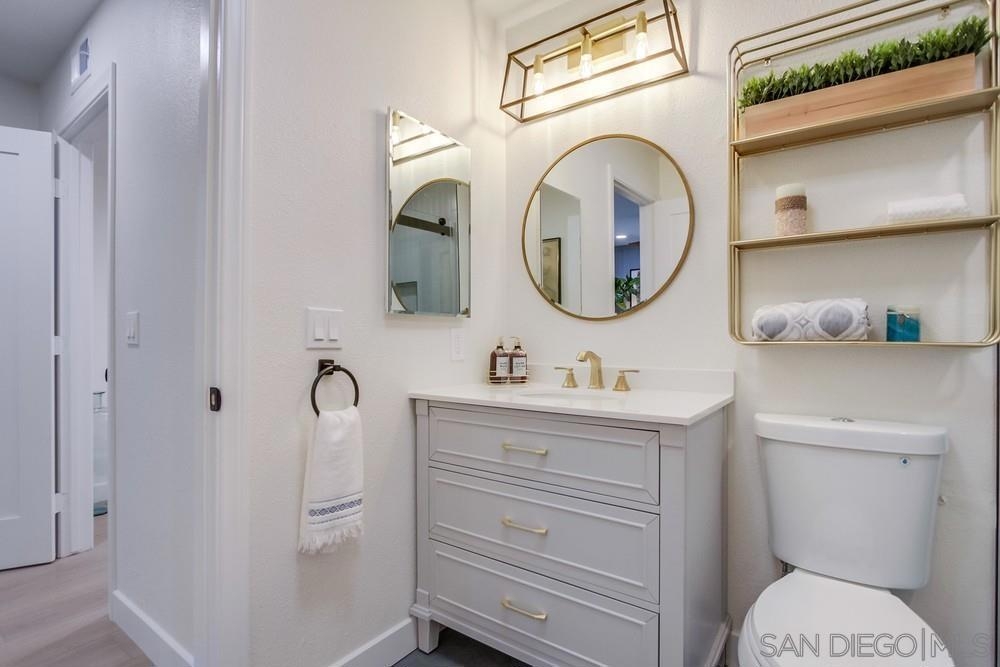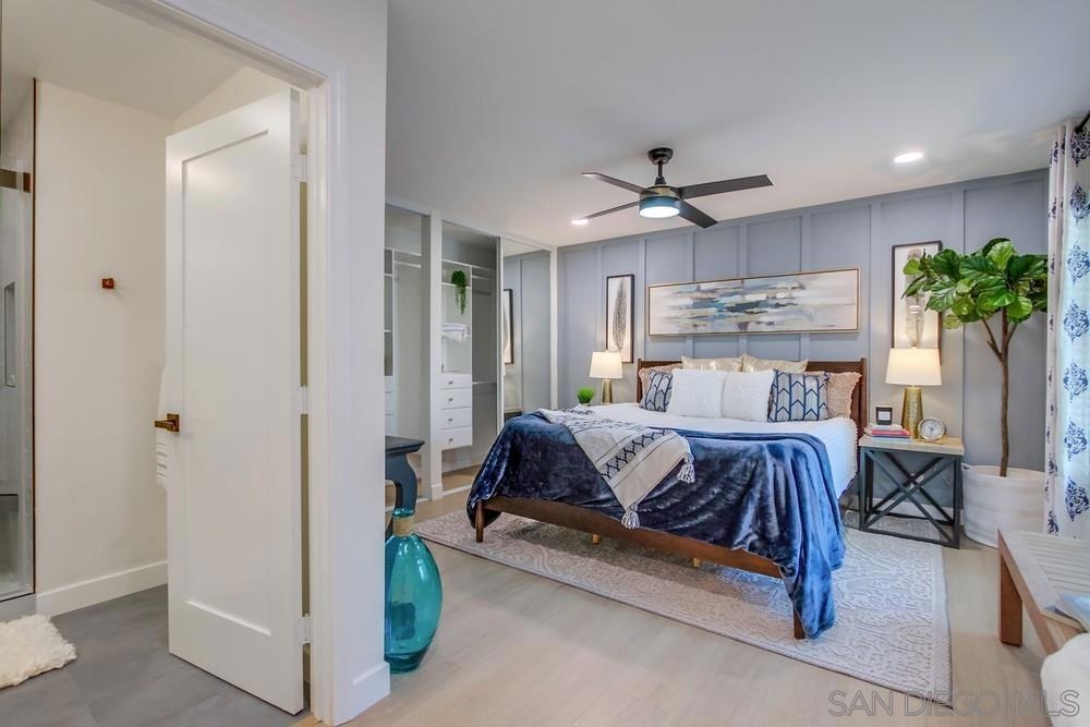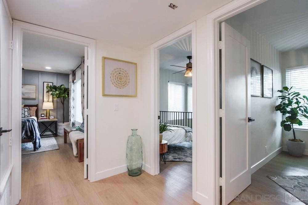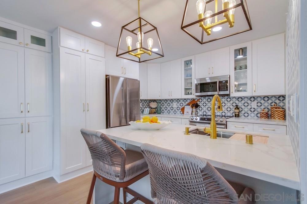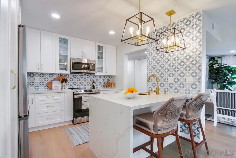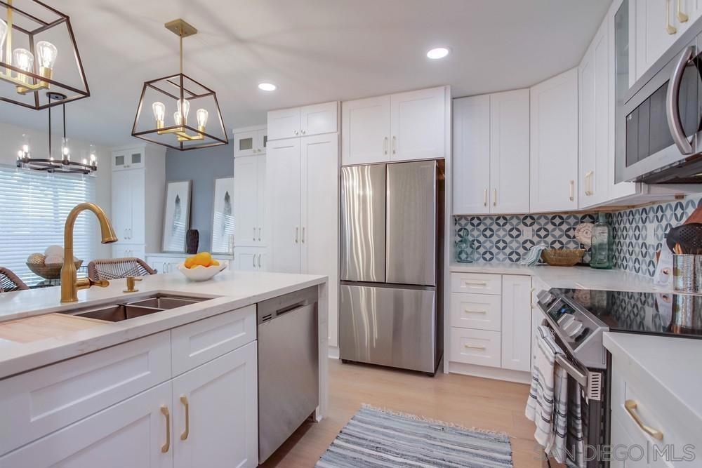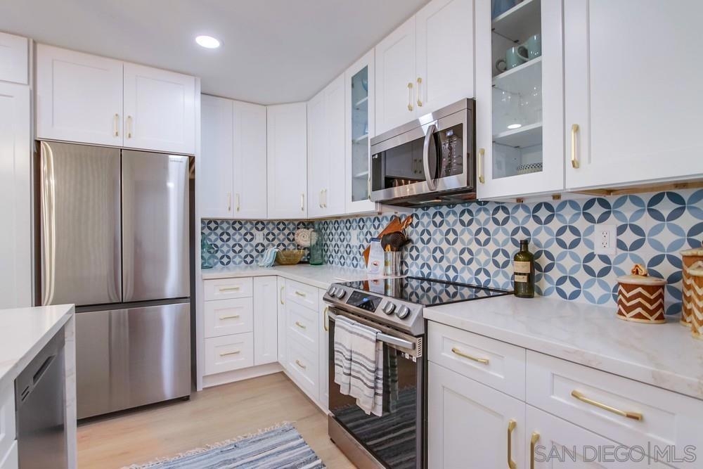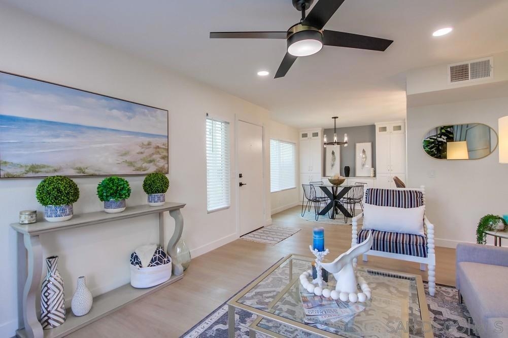 You have to see this fully remodeled 3 bedroom 2 full bath unit that has it all, look no further. Don't let this one pass you by, it has high end designer touches throughout, newer A/C, full size Laundry closet in Unit, new appliances, new windows and doors, custom kitchen, LVP flooring, a garage, assigned parking spot, and so much more, including a new roof replaced in 2021. The property is an entry level unit and is located in a highly desired location within the community, towards the back where it is peaceful and has less foot traffic. This property feels very spacious and well laid out. Enjoy your community pool or hop on the 78 fwy within a few minutes and be on your way to the beach, which is a short 8 mile drive. There are lots of restaurant and shops near by including Costco. All of this for under $600k.