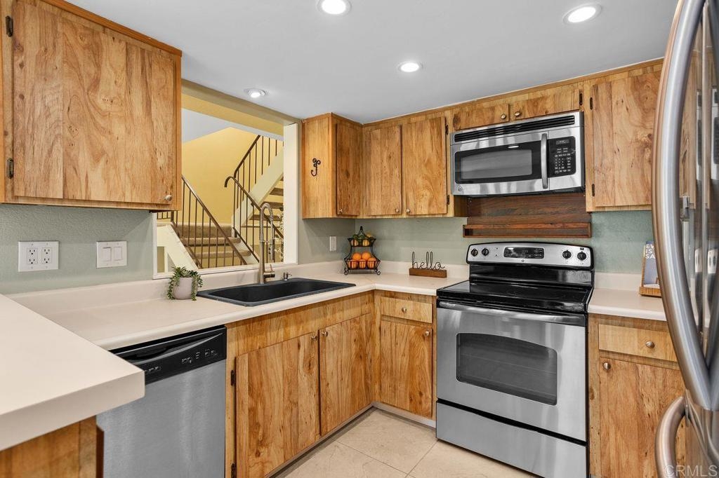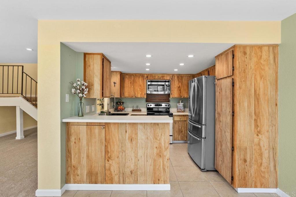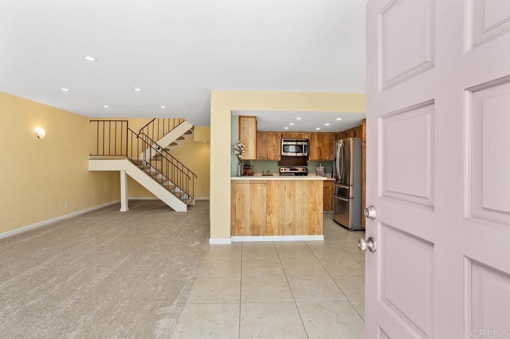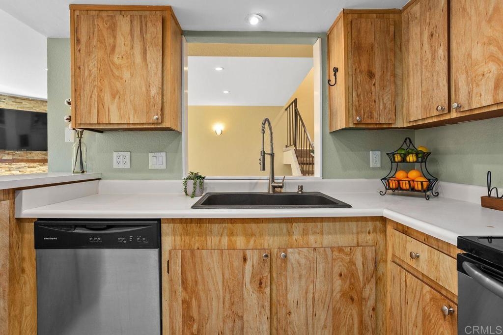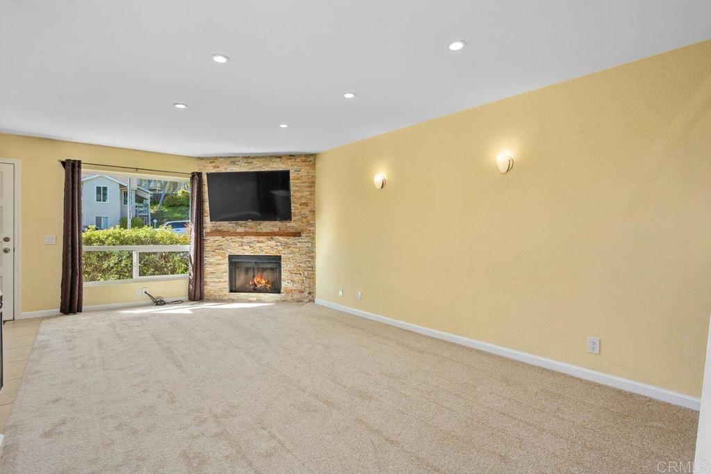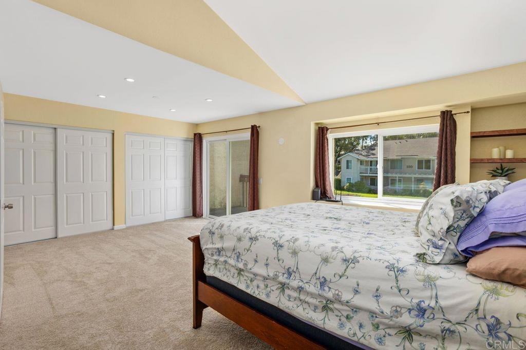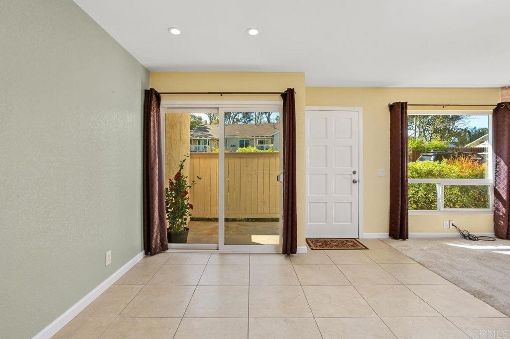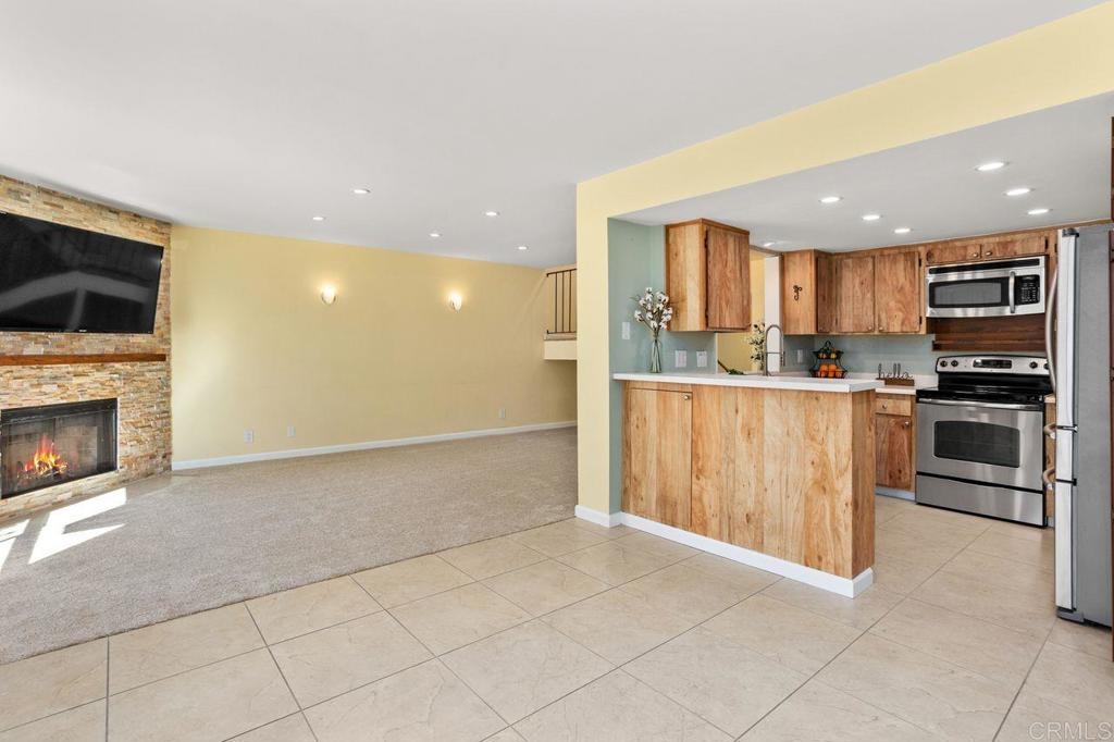 Seller will consider contributing to an interest rate buy-down with an acceptable offer! Formerly a two-bedroom, this 1159 ft² townhouse-style condo was transformed into a spacious one-bedroom, but the layout is flexible to suit YOUR needs (convert back if needed)—plus, no neighbors above or below! Inside this clean and move-in ready home, you'll appreciate the updated dual-pane vinyl windows and sliders, all new carpeting, and freshly painted baseboards, ceilings and doors. Natural light pours in through all the windows - so light, bright and happy! The kitchen sparkles with stainless steel appliances (refrigerator included) and opens to the dining and living areas. Cozy up for movie night by the stunning stacked-stone wood-burning fireplace and wide-screen TV. There is so much storage in this home - with multiple closets and storage cabinets, upstairs and downstairs! The bedroom features a walk-in closet + a wall of closet space, and the attached 2-car garage comes with shelving and a washer/dryer. Soak up the sun on the south-facing balcony off the primary bedroom, or hang out on the downstairs patio that flows right out from the kitchen/dining area. The HOA recently replaced the roof for added peace of mind. Community perks include TWO pools, a hot tub and clubhouse (and RV/trailer parking for additional fee). Located just minutes from the 78 and Melrose, with quick access to Downtown Vista’s buzzing restaurants, craft breweries, and the beloved Moonlight Amphitheater—this is a fantastic opportunity you won’t want to miss!