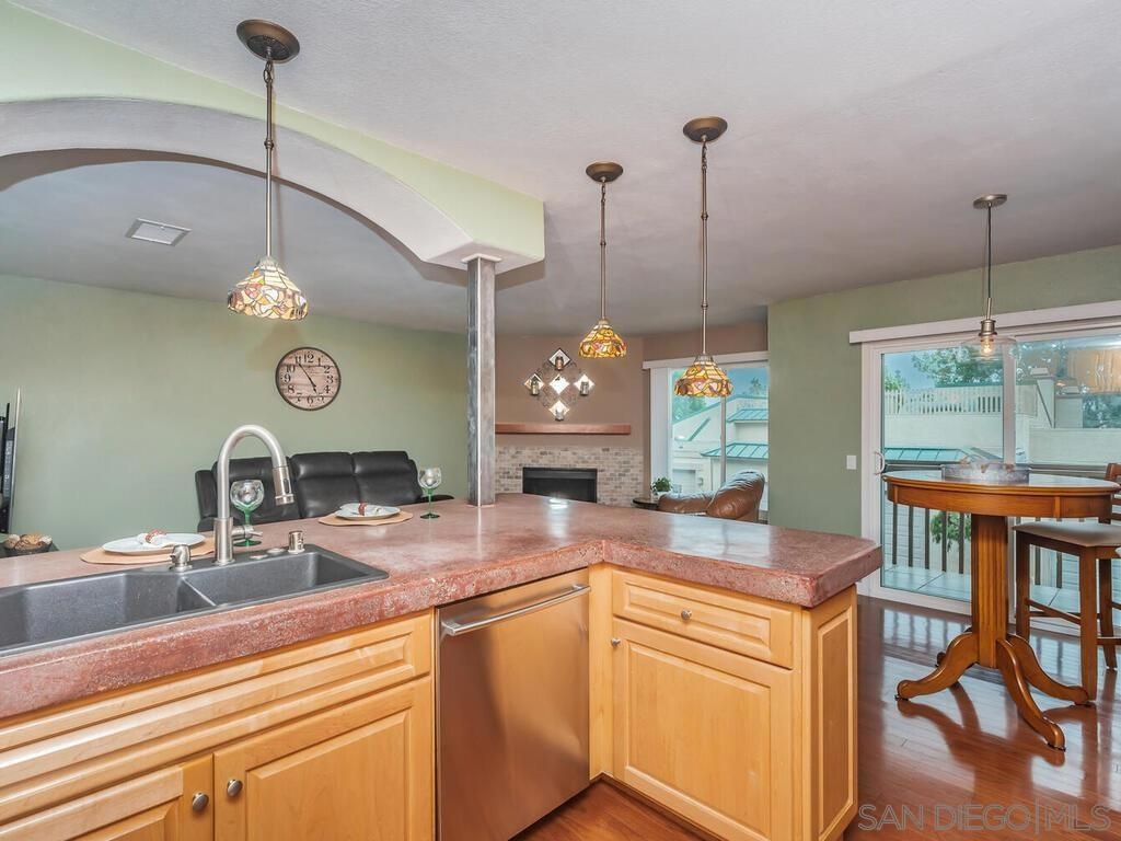 Lovely, storybook home nestled in the heart of Vista! This charming beauty has been beautifully upgraded with amazing touches. Enjoy a wonderfully remodeled kitchen which features new-age, concrete countertops, white maple custom cabinetry + pot lighting, a lazy Susan, and LG stainless steel appliances all of which convey. Additional features of this charming home include hardwood floors, beautifully remodeled fireplace, dual pane windows, three balconies, an attached 2-car garage, and a newer furnace a/c system. Enjoy access to (2) sparkling community pools as well as a short drive to nearby beaches. Easy access to freeways, restaurants, + the Melrose transit station to catch the Sprinter. Welcome home! Sellers will entertain offers between $375,000 and $425,888. Additional photos will be uploaded on 5/16. Equipment: Dryer,Garage Door Opener, Range/Oven, Washer Sewer: Sewer Connected Topography: LL