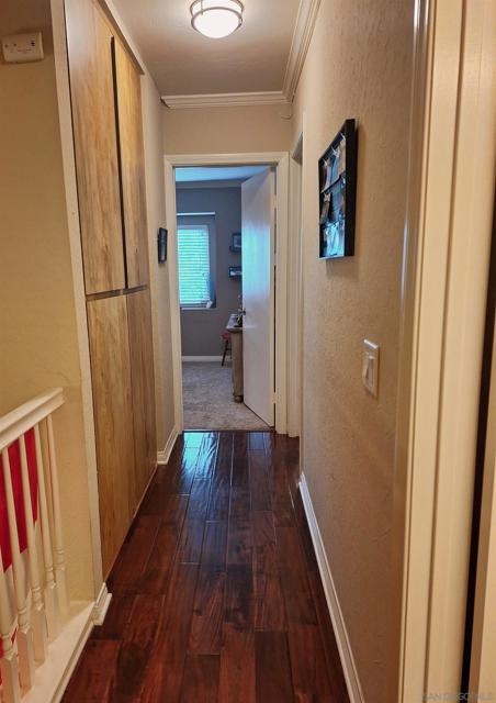 Charming Two-Bedroom Townhome in Vista De Vista—Just Six Miles from Oceanside Beach! Embrace coastal living in this beautiful corner lot townhome within the stunning Vista De Vista community. Located just minutes from stores, restaurants, and entertainment, this home offers easy access to Highway 78. Enjoy the community pool, along with amenities like attached garage parking, a spa, and RV parking for an additional small fee (check with HOA for pricing). Residents enjoy spacious community areas complemented by breathtaking panoramic views. With nearby hiking trails, medical offices, and Camp Pendleton. This inviting two-bedroom home features elegant hardwood floors in the common areas, while the master bedroom boasts stylish matte wood flooring. The master includes a large walk-in closet, a private balcony, and a bidet in the en-suite bathroom. The second bedroom also offers a walk-in closet on the upper level, with a convenient guest bathroom downstairs featuring a bidet as well. The spacious kitchen showcases beautiful countertops, perfect for cooking and entertaining. The Sheetrock ceiling texture imitates the appearance of layered stone, while baseboards and classic crown moldings throughout add a touch of elegance. The downstairs area features a front patio, an open living room and dining area, and a rare wood-burning fireplace for a cozy atmosphere. All appliances are included with the sale of this home: stove, refrigerator, washer, and dryer. No central AC. Central Heating downstairs. Each bedroom has their own heater. Hurry this one won't last!