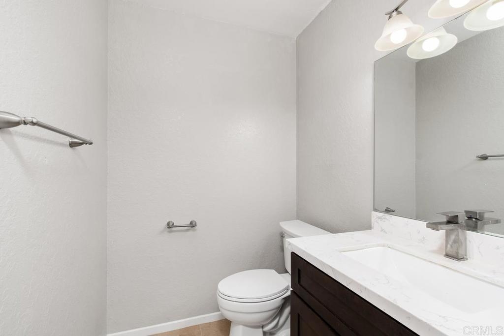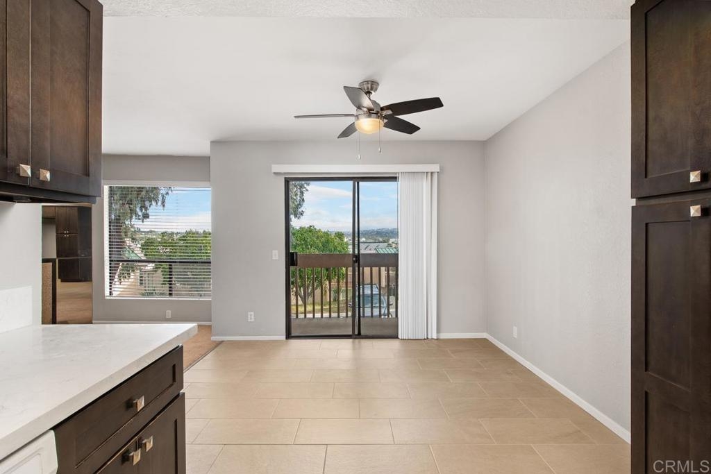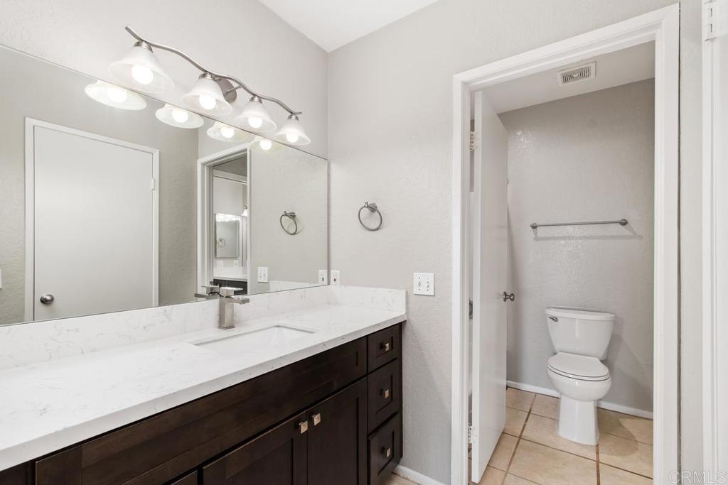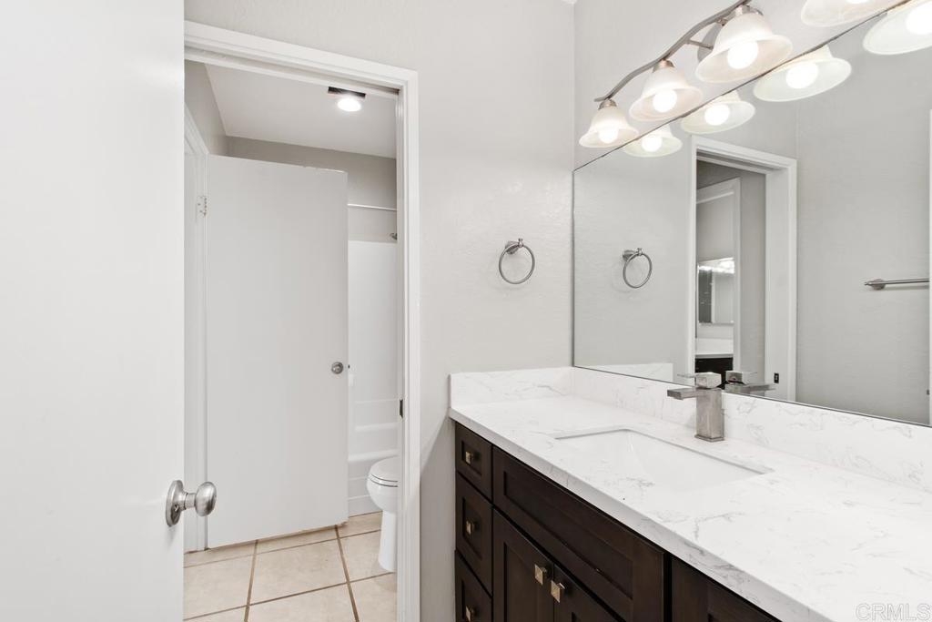 In the heart of vista! Remodeled 2 bed 1 1/2 bath condo located walking distance from restaurants, stores and quick access to the HWY 78 and public transportation! A 10-minute drive to the beach, this condo boasts a gourmet kitchen with beautiful cabinets and quartz countertops. Balcony off the dining area makes it great for entertaining. The unit sits on the higher part of the complex and has a private patio with breathtaking Mountain views. The master bedroom has vaulted ceiling and has a beautiful private bathroom and walk-in closet, a 2-car garage is conveniently attached with direct access to the condo and is where your in house laundry hook ups are located. Community amenities include BBQ area, 2 sparkling pools, spa clubhouse and on site RV parking option ($25 a month).