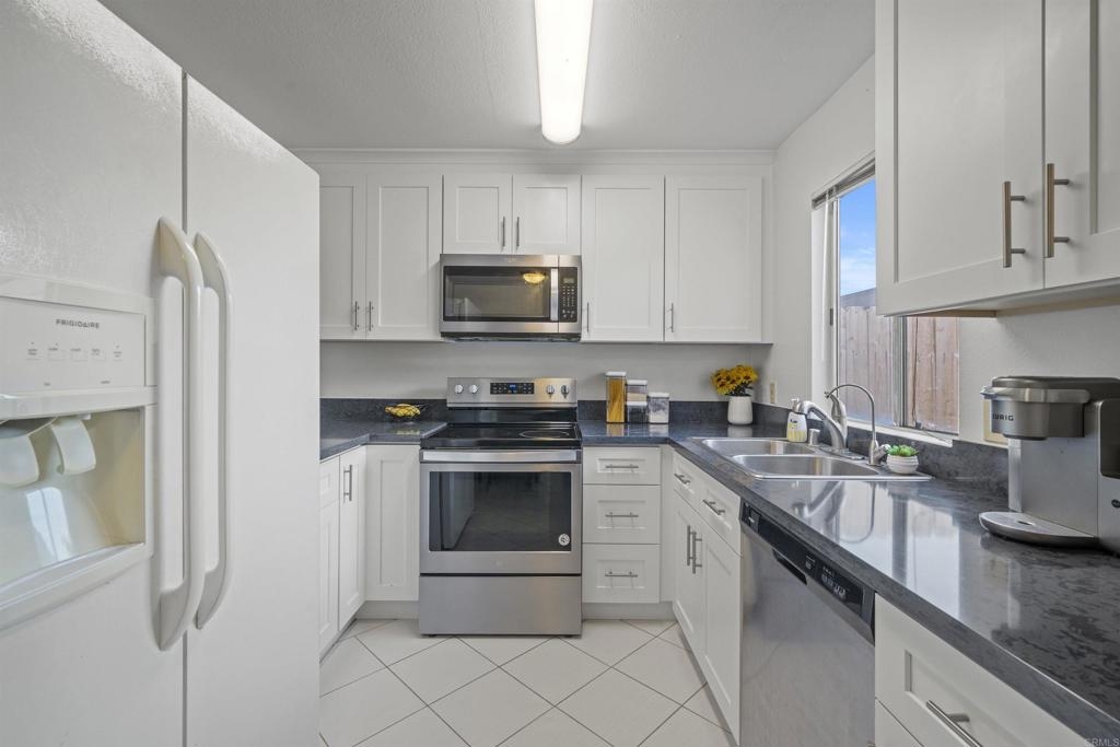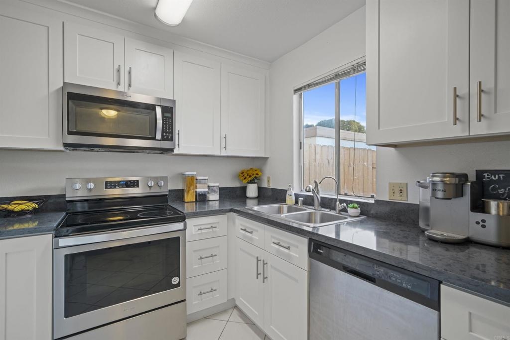 AMAZING OPPORTUNITY for starter home, downsizing or investment property. Light and bright main floor 1BD/1BA condo in the FHA and VA approved community of Vista Hills Estates. Beautifully upgraded with modern color pallet, new cabinetry and countertops, light fixtures, and Whirlpool stainless steel dishwasher, microwave and range. Spacious, versatile layout with low maintenance tile floors and huge bedroom featuring floor to ceiling mirrored closet doors and plush carpet. Ample storage throughout, repurpose the hall closet with a stackable in-unit washer and dryer or use the on-site laundry center. The private yard with patio allows direct access to the property from a single car garage. So much potential for creating a private retreat and personal space for gardening, pets and play. The quaint, well maintained community is comprised of only 72 units and features a clubhouse, picnic area with BBQ's, swimming pool, jacuzzi, tennis courts and greenspace. HOA covers community maintenance, water, trash and central boiler system. Great central location near public transit and walking distance to the Sports Park, downtown Vista, shopping, restaurants and schools. Come quick!! Open House Saturday, September 3rd, 10 AM - 2 PM.