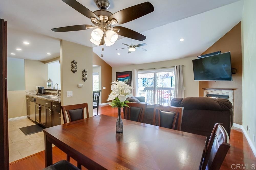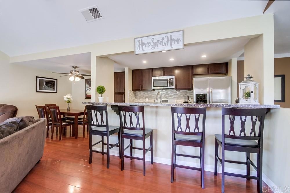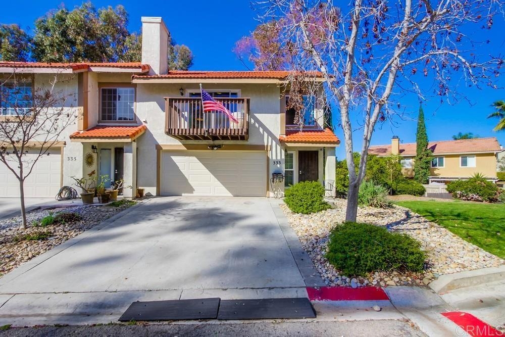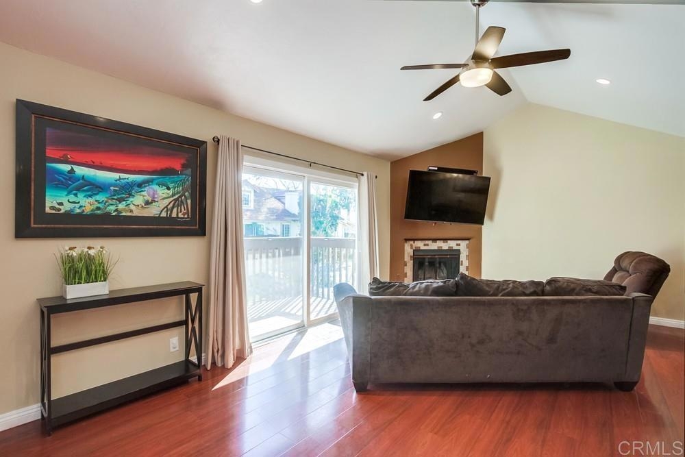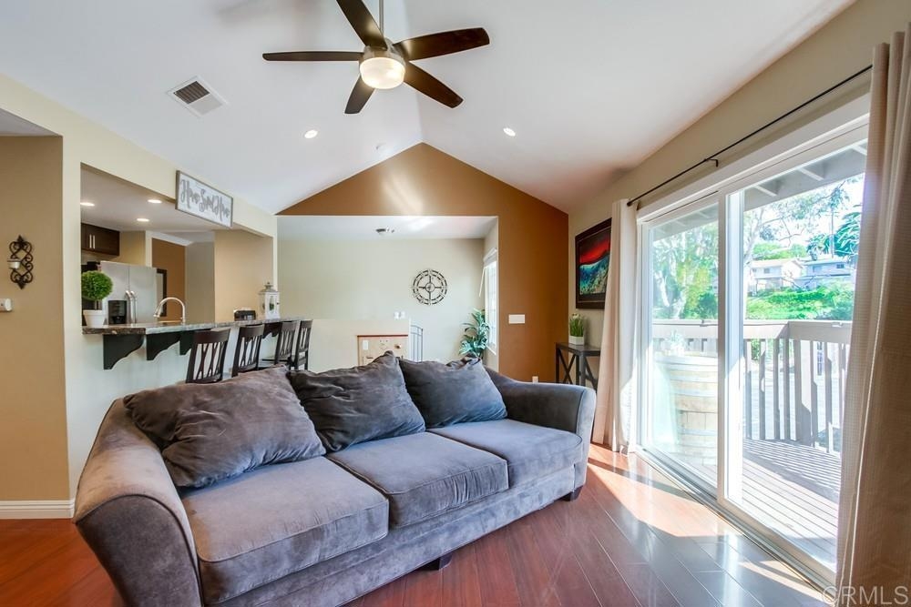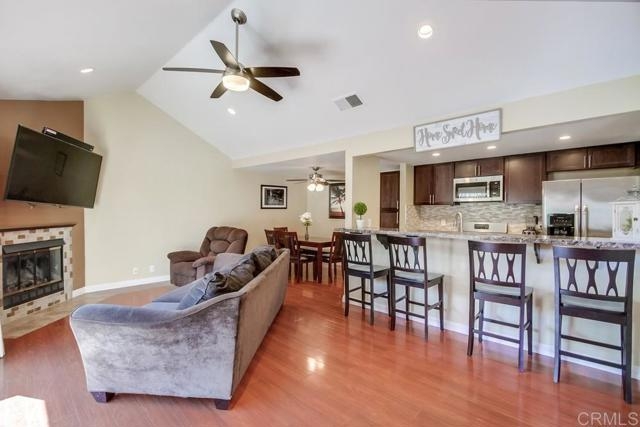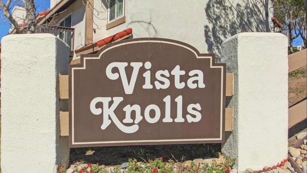 Vista Knolls is a quiet tree-lined 52 unit community with a pool, spa and clubhouse. This one will not last! Newly installed rear slider for access to back yard. Upgraded, end-unit townhome with natural light. Engineered wood flooring, newer windows, paint, stainless appliances, glass tile backsplash, stunning newly remodeled master bathroom, smart thermostat, LED lighting and fans throughout, and more. Located at the end of the complex cul-de-sac, adjacent to green belt and a guest parking area, with an attached two car garage. There is only a neighbor on one side and there is a backyard, which is not common on all units. Great location close to downtown Vista and all that San Diego has to offer. Sale is contingent on seller finding a suitable replacement property. All information herein is deemed reliable but is not guaranteed - buyer to verify all prior to COE.