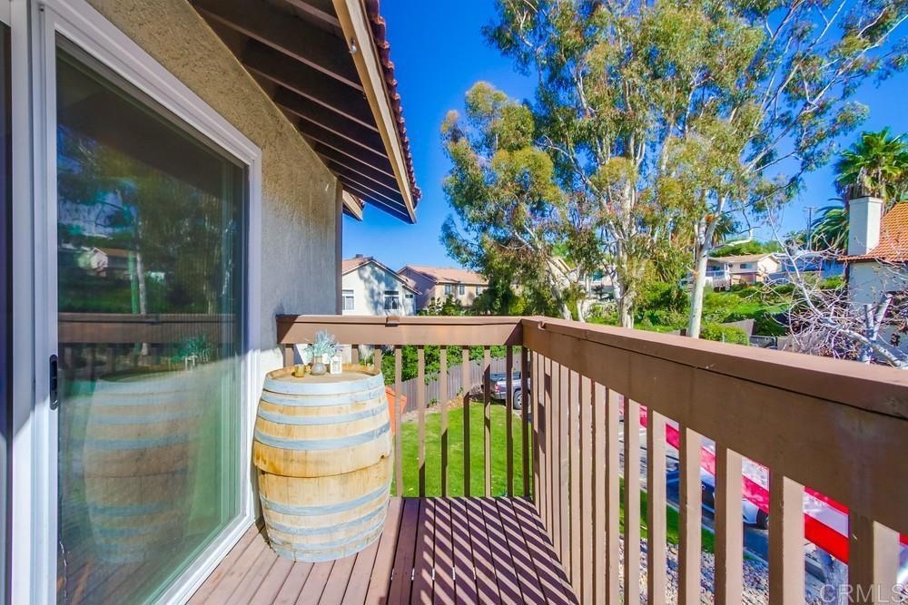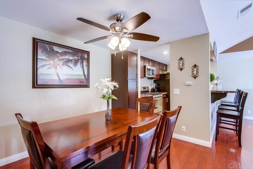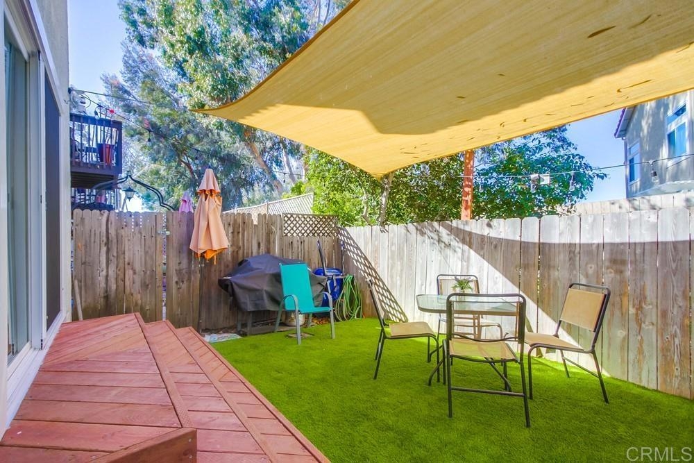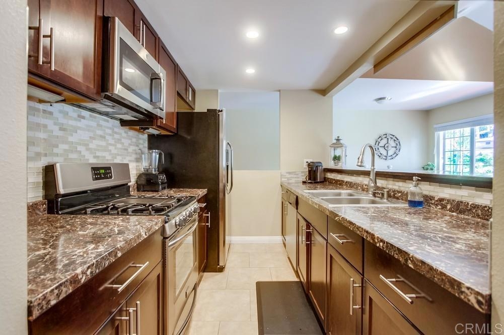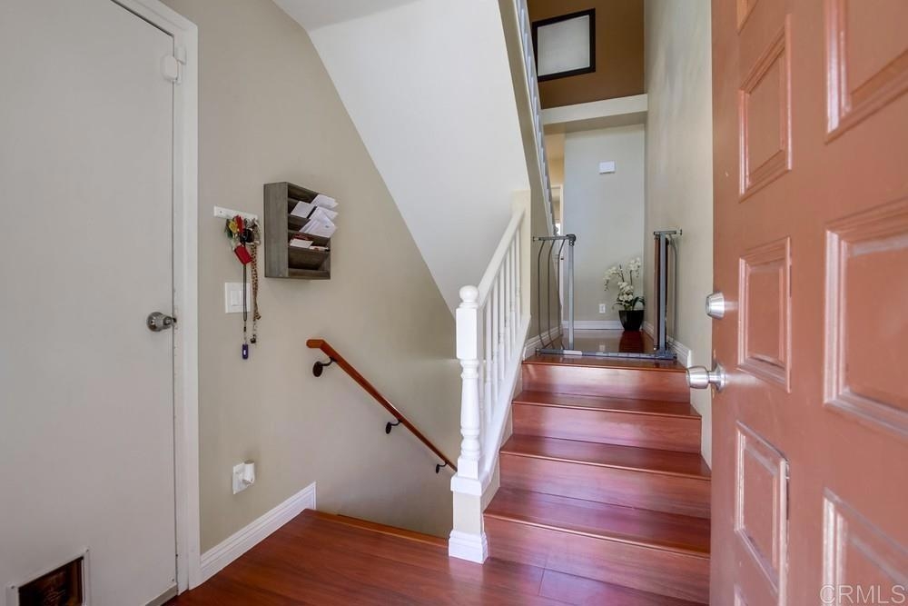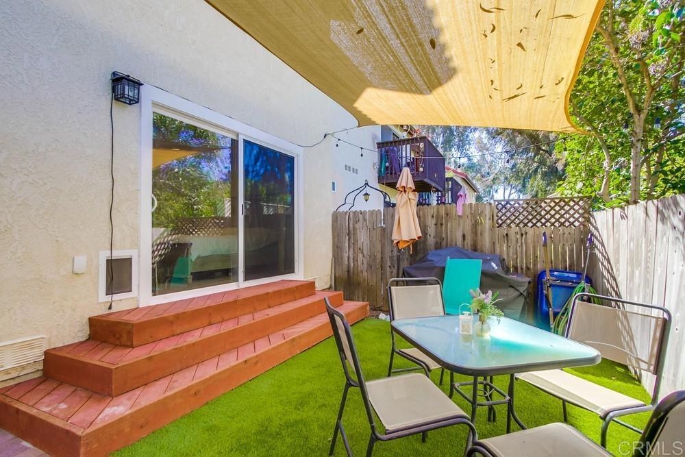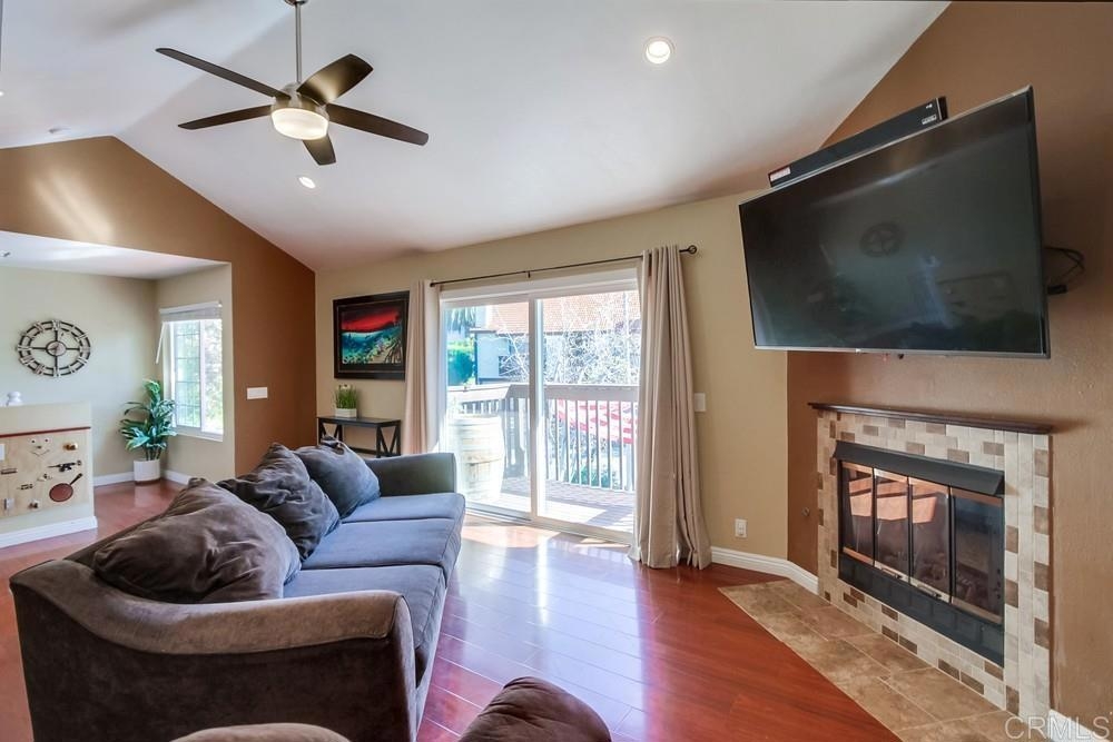Vista Knolls is a quiet tree-lined 52 unit community with a pool, spa and clubhouse. This one will not last! Newly installed rear slider for access to back yard. Upgraded, end-unit townhome with natural light. Engineered wood flooring, newer windows, paint, stainless appliances, glass tile backsplash, stunning newly remodeled master bathroom, smart thermostat, LED lighting and fans throughout, and more. Located at the end of the complex cul-de-sac, adjacent to green belt and a guest parking area, with an attached two car garage. There is only a neighbor on one side and there is a backyard, which is not common on all units. Great location close to downtown Vista and all that San Diego has to offer. Sale is contingent on seller finding a suitable replacement property. All information herein is deemed reliable but is not guaranteed - buyer to verify all prior to COE.