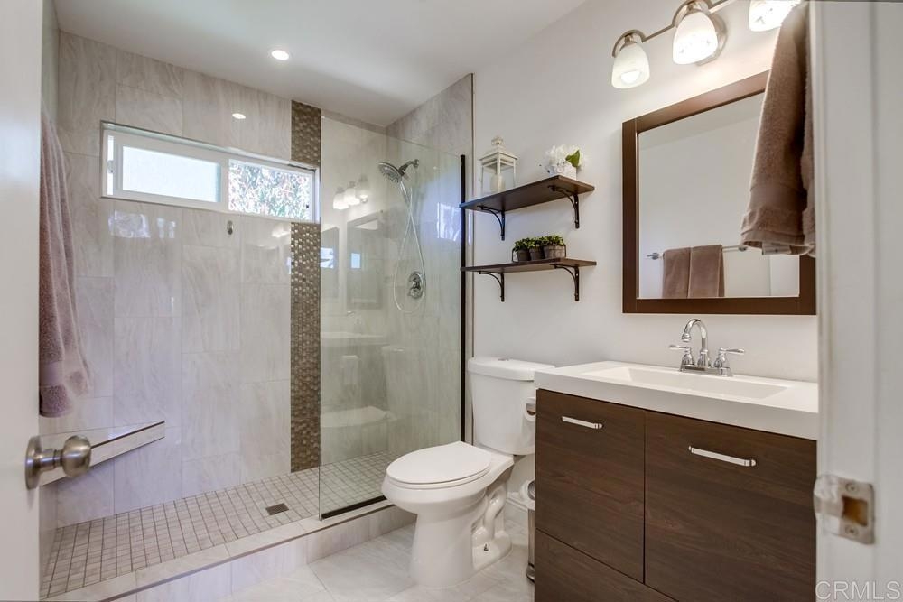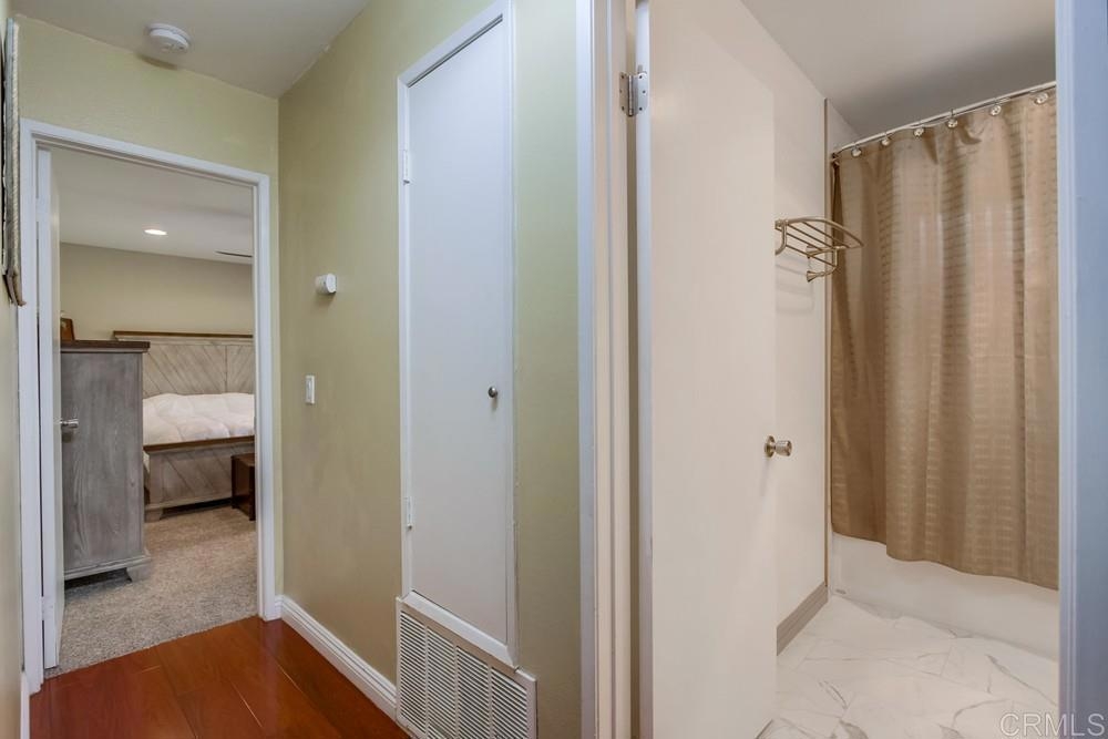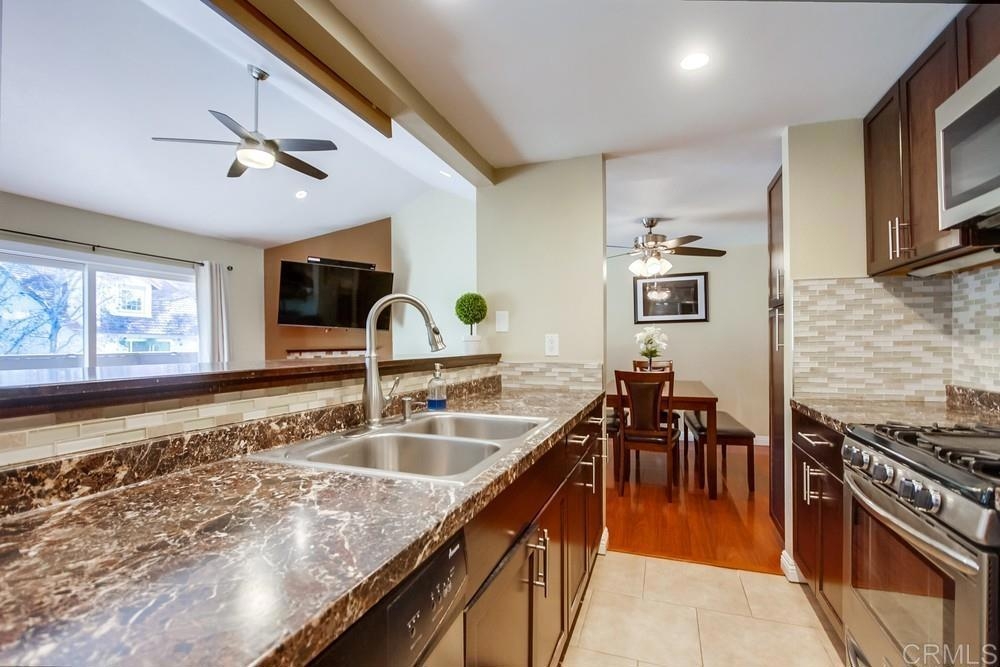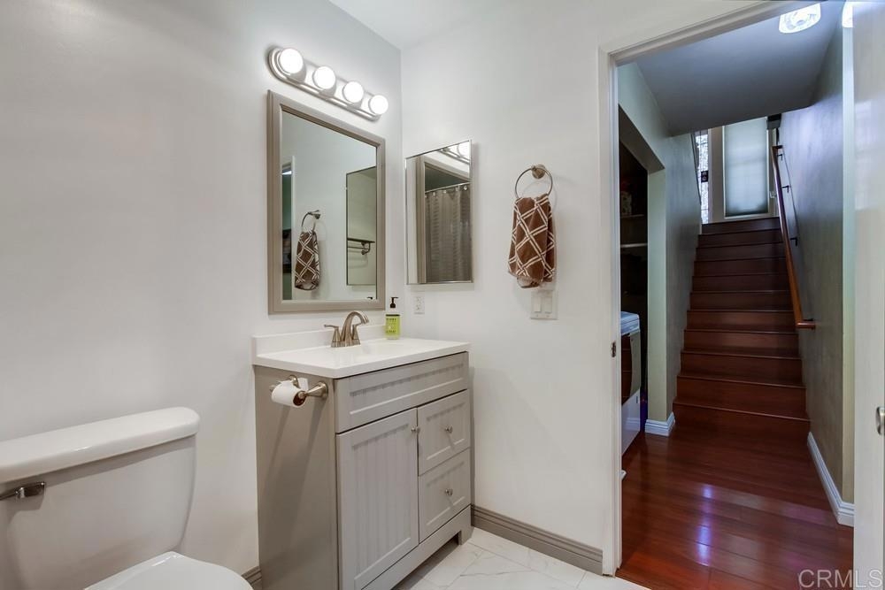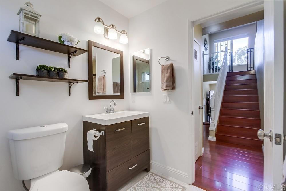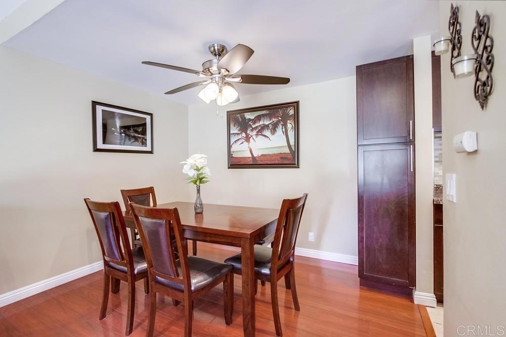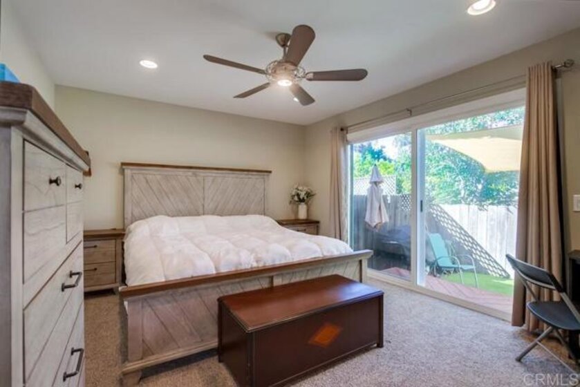 Vista Knolls is a quiet tree-lined 52 unit community with a pool, spa and clubhouse. This one will not last! Newly installed rear slider for access to back yard. Upgraded, end-unit townhome with natural light. Engineered wood flooring, newer windows, paint, stainless appliances, glass tile backsplash, stunning newly remodeled master bathroom, smart thermostat, LED lighting and fans throughout, and more. Located at the end of the complex cul-de-sac, adjacent to green belt and a guest parking area, with an attached two car garage. There is only a neighbor on one side and there is a backyard, which is not common on all units. Great location close to downtown Vista and all that San Diego has to offer. Sale is contingent on seller finding a suitable replacement property. All information herein is deemed reliable but is not guaranteed - buyer to verify all prior to COE.