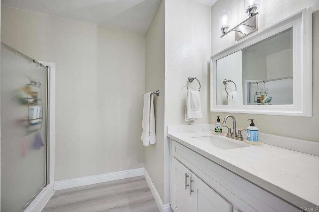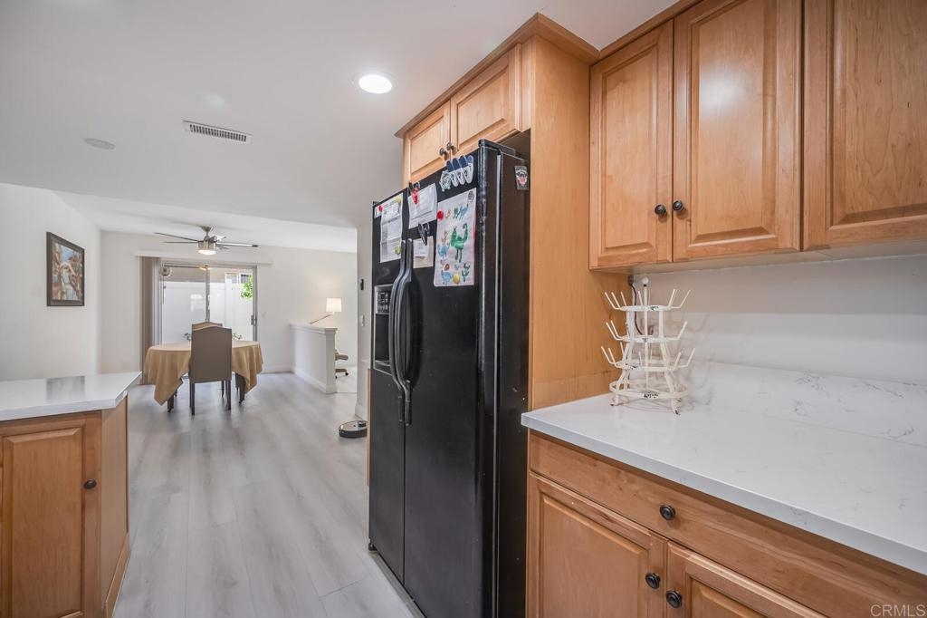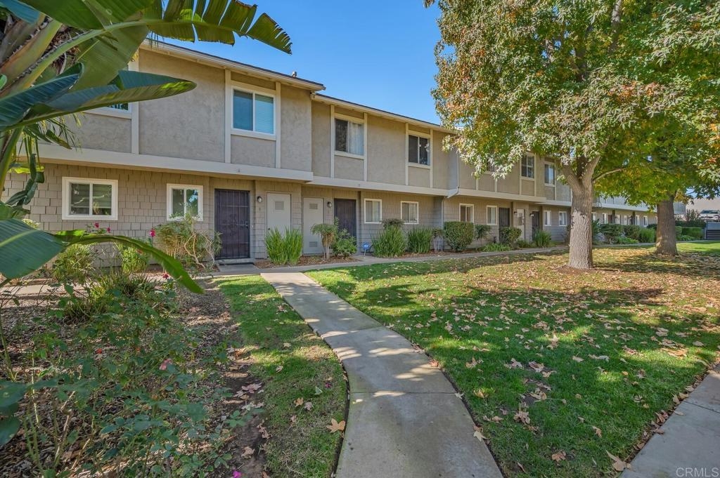 Welcome Home! This beautiful property offers everything you need to call it home, featuring 3 bedrooms, 2 full bathrooms, and a half bath. Enjoy a grassy lawn area in the front and a private patio off the living and dining rooms in the back, perfect for relaxing or entertaining. The spacious interior includes a large kitchen, dining area, and living room with a wet bar, all enhanced by stunning vinyl plank flooring throughout. The primary suite boasts a walk-in closet and private bath, while the other two bedrooms share a full bathroom. Additional conveniences include a one-car garage and a parking space near the unit. The community amenities are sure to impress with a gated pool, spa, entertainment area, and restrooms. Situated in a great location close to downtown Vista’s shops, dining, and easy freeway access, this home is ready for you.