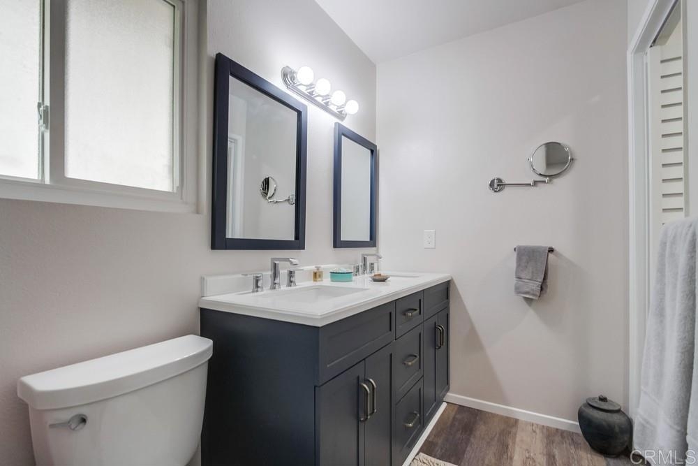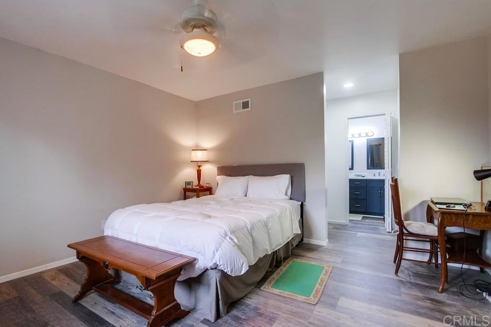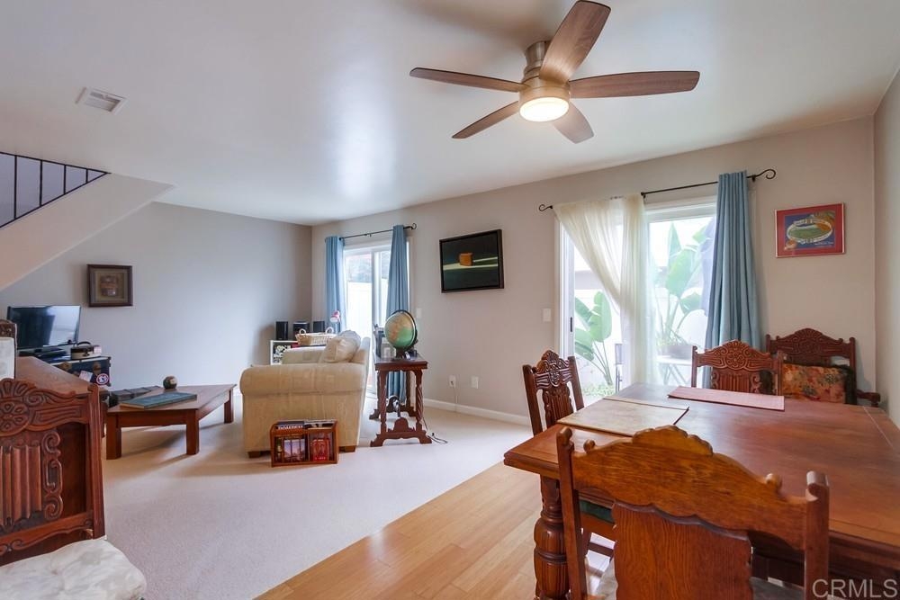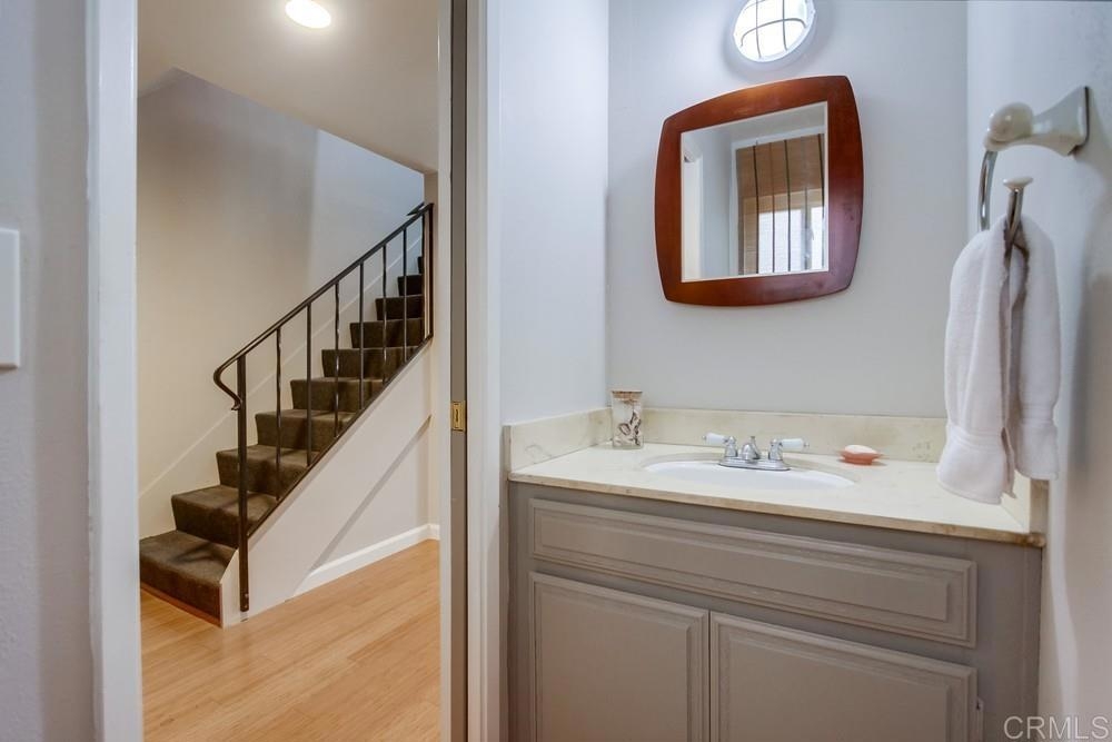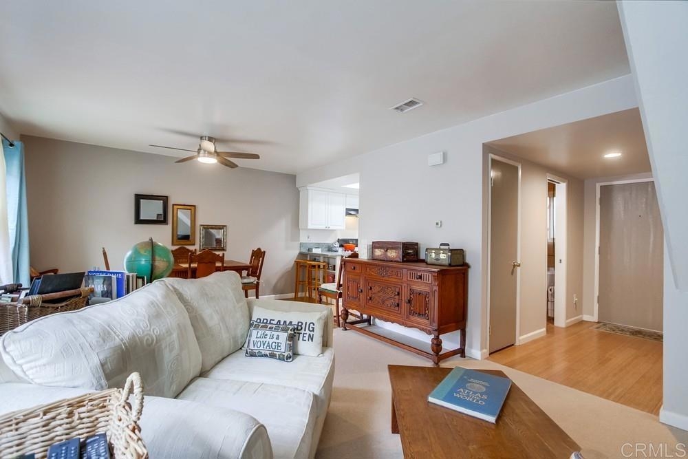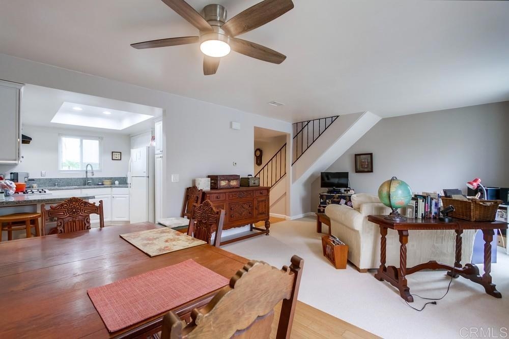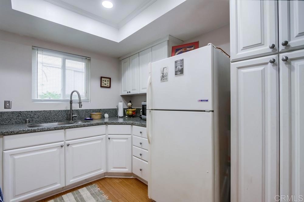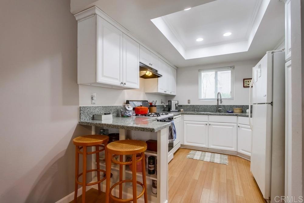 Fantastic end unit with extensive improvements in the nicest location in community! Nook/office area created at top of stairs, large walk-in closet has built-in cabinetry and upgraded vinyl plank flooring throughout upstairs. Downstairs has upgraded, wool carpet in LR & bamboo flooring in DR & Kit. Generous laundry room w/storage is an added bonus with accessible shelving into br/ba area. The kitchen has been remodeled & upgraded with new cabinetry and granite counters. Newer dual glazed vinyl windows & sliders! Townhome has 1 detached garage & 1 assigned parking space. Washer, dryer & fridge included & portable A/C.