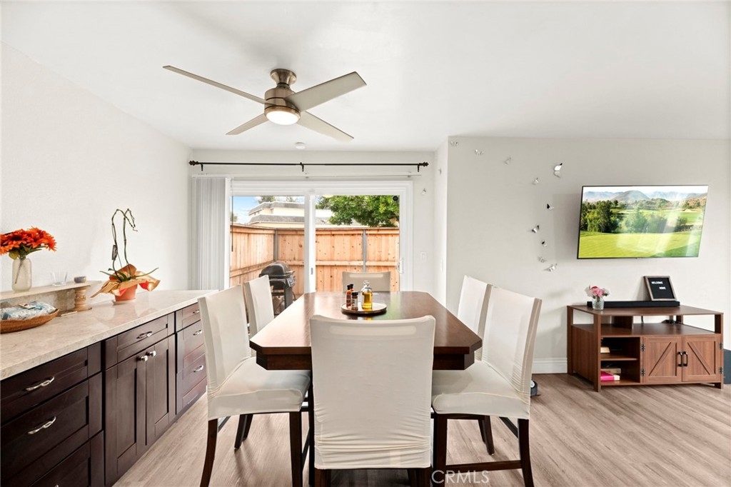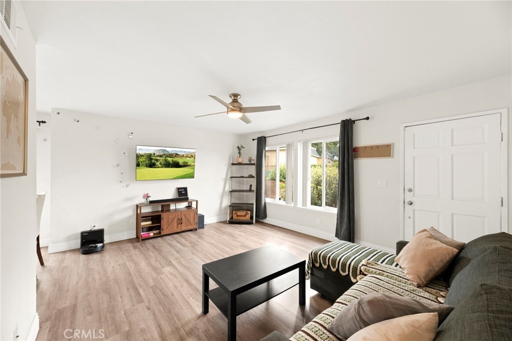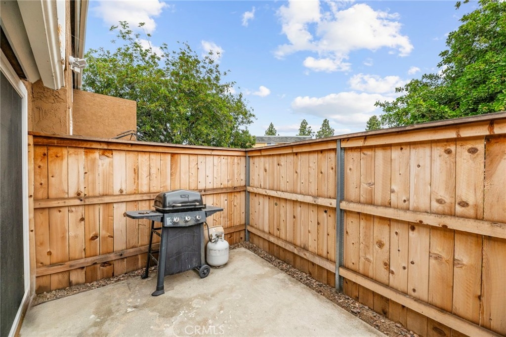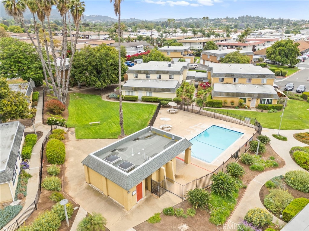 Welcome to this beautiful condo nestled in the highly sought-after Vista Park Villas community. This charming 2-bedroom, 1.5 bathroom home offers the perfect blend of comfort, style, and convenience—ideal for first-time buyers or anyone looking to enjoy easy living in a vibrant neighborhood. Step inside to discover an inviting open-concept layout filled with natural light, sleek vinyl flooring, and a spacious living area perfect for relaxing or entertaining. The kitchen is a true highlight, featuring granite countertops, rich mahogany cabinetry, and ample storage for any home chef. Retreat to the generously sized primary bedroom, complete with a spa-inspired bathroom that provides a peaceful escape. You'll also enjoy the convenience of an in-unit laundry room. Outside, a large private backyard offers a serene setting for outdoor gatherings or quiet evenings. Additional features include a one-car garage, an assigned parking space, and easy access to the community pool. Located just minutes from downtown Vista, Brengle Terrace Park, and the renowned Moonlight Amphitheatre, this home places you in the heart of it all. The HOA fee of $490 covers water, trash, building insurance, exterior maintenance (including roof and termite). Don’t miss this opportunity—schedule your private tour today before it’s gone!