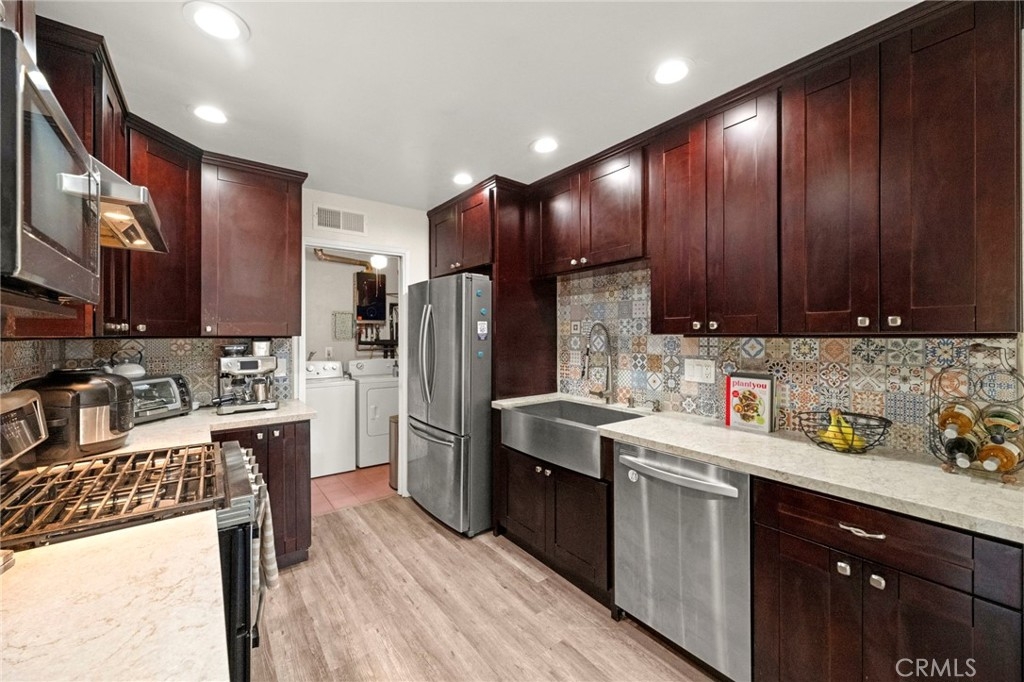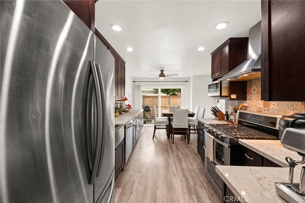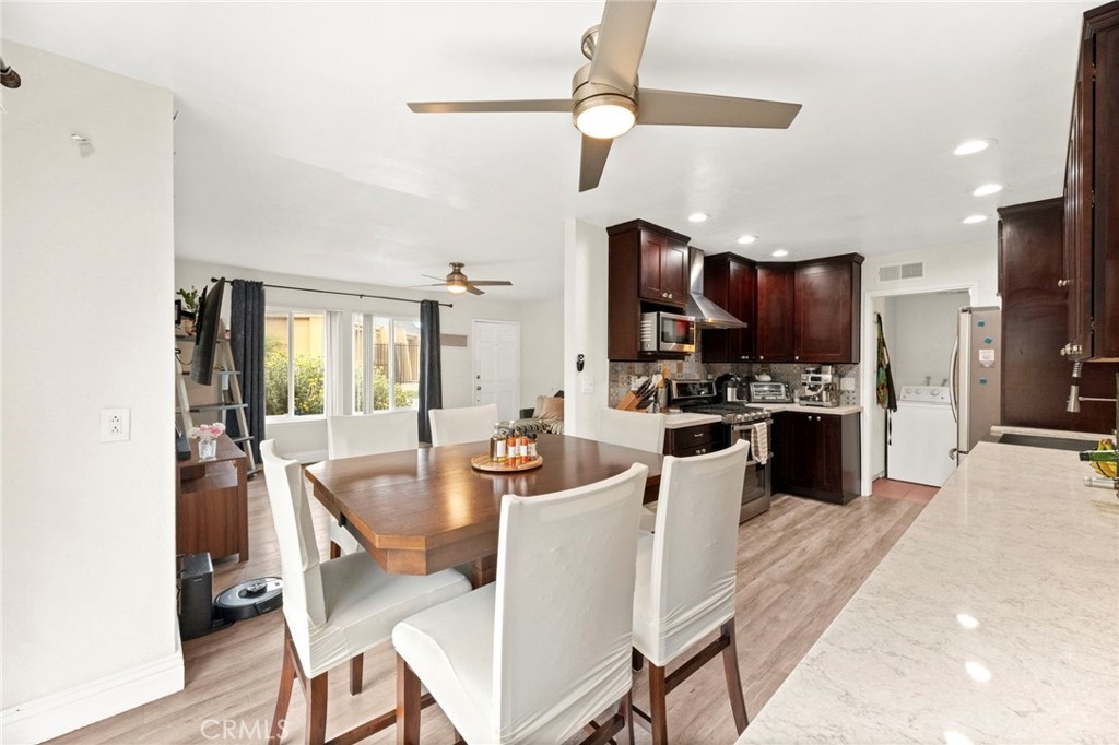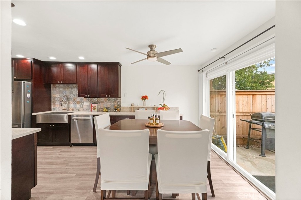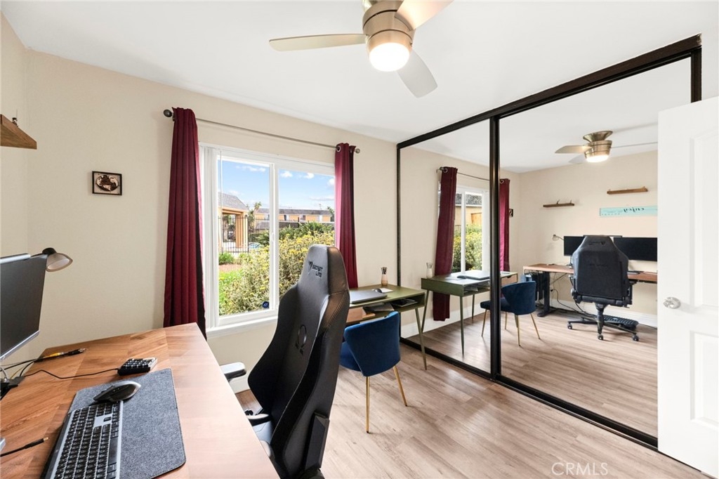 Welcome to this beautiful condo nestled in the highly sought-after Vista Park Villas community. This charming 2-bedroom, 1.5 bathroom home offers the perfect blend of comfort, style, and convenience—ideal for first-time buyers or anyone looking to enjoy easy living in a vibrant neighborhood. Step inside to discover an inviting open-concept layout filled with natural light, sleek vinyl flooring, and a spacious living area perfect for relaxing or entertaining. The kitchen is a true highlight, featuring granite countertops, rich mahogany cabinetry, and ample storage for any home chef. Retreat to the generously sized primary bedroom, complete with a spa-inspired bathroom that provides a peaceful escape. You'll also enjoy the convenience of an in-unit laundry room. Outside, a large private backyard offers a serene setting for outdoor gatherings or quiet evenings. Additional features include a one-car garage, an assigned parking space, and easy access to the community pool. Located just minutes from downtown Vista, Brengle Terrace Park, and the renowned Moonlight Amphitheatre, this home places you in the heart of it all. The HOA fee of $490 covers water, trash, building insurance, exterior maintenance (including roof and termite). Don’t miss this opportunity—schedule your private tour today before it’s gone!