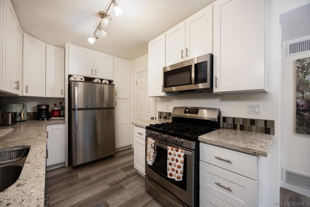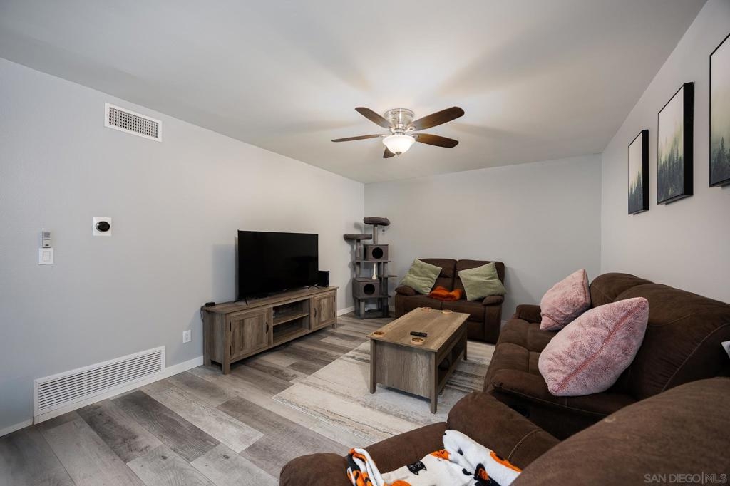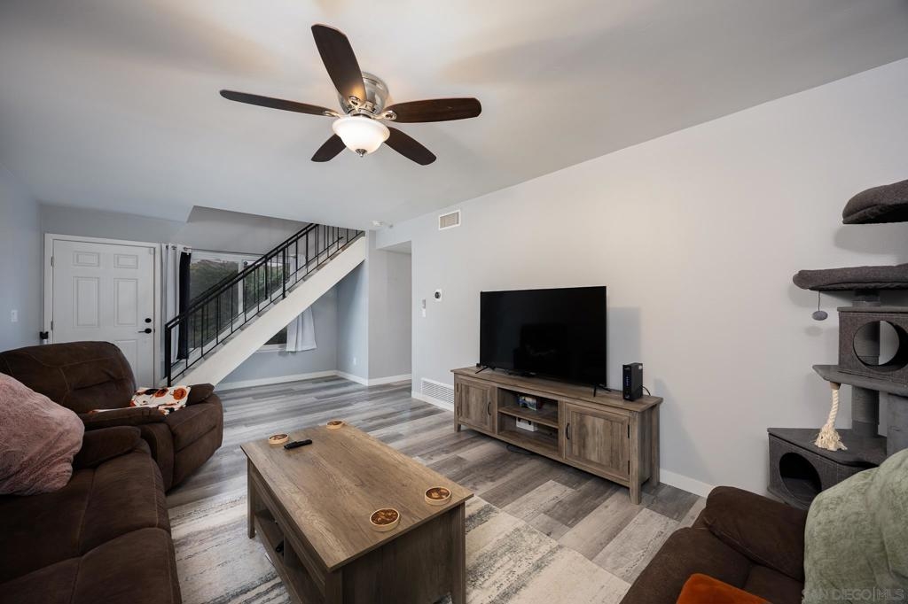 This is a must see!! Welcome home! This turnkey 3 bedroom, 1.5 bath townhome is situated in the heart of Vista. This property offers a spacious living room, separate dining area, wide galley kitchen, full washer and dryer hookups in the unit, walk-in pantry and all 3 bedrooms located upstairs. The primary bedroom and second bedroom have walk-in closets and the third bedroom has a mirror closet. Attached 2-car garage with additional assigned parking space in front. Private patio, attached 2 car garage with direct access into the kitchen. Unit HAS A/C! Private end unit. Community Pool and Rec Room. Quiet community just minutes from downtown and freeway access.