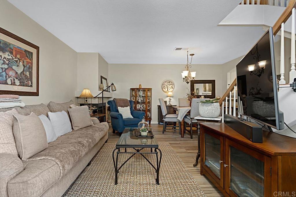 Welcome to this bright and airy luxury corner unit with an open floor plan filled with natural light. Located in the popular Charlemont community, you'll be just a short walk from shops, restaurants, parks, and schools, with easy freeway access for your convenience. The spacious living room has a cozy fireplace and sliding doors that open to a large rear patio with pavers. The detached two-car garage features a new door and a full wall of high-quality storage cabinets, providing plenty of space. The fully updated kitchen comes with brand-new wood cabinets, stainless steel appliances, and elegant quartz countertops. There's a half bath and a laundry closet with a side-by-side washer and dryer on the main floor for ease. Upstairs, the second bedroom boasts a custom Murphy Bed that adds a unique touch, vaulted ceiling with ceiling fan and an ensuite bathroom for extra comfort and privacy. The master bedroom is a true retreat with a vaulted ceiling with ceiling fan, a walk-in closet and a master bathroom featuring a newly tiled walk-in shower. Recent updates include energy-efficient windows and a sliding door, a new HVAC heat pump system, and new wood laminate flooring on the main level, plus quality tile at the entryway and kitchen floor. This well-maintained condo is move-in ready and waiting for its new owners. Don't miss out on this gem!