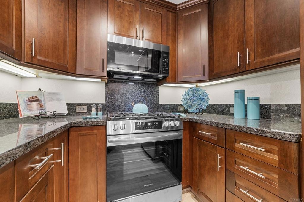 PRICE IMPROVEMENT! Seller will entertain offers from $449,900 to $499,900. Just Listed in Shadowridge Aspens! This beautifully upgraded, light and bright move-in ready condo is on the ground floor. It is packed with stylish updates and located in one of the most sought-after communities in Shadowridge! Features you'll love: New stylish flooring, Sleek stainless steel kitchen appliances, Kraft Maid cabinetry + Blue Pearl granite countertops, Fresh paint throughout, New lighting, fan, and window coverings, Stackable washer/dryer, Newer HVAC system including compressor , 1-car garage (#16) just steps from your front door, Private patio off both the living room & bedroom for effortless indoor/outdoor living, HOA includes a tranquil pool with lounge area. This is a Well maintained and beautiful community. Located near Hwy 78, top-rated dining, major shopping, and minutes from thriving Carlsbad Business Parks—home to many popular microbreweries. Shadowridge Golf Club is right across the street! Enjoy the tree-lined streets, a peaceful setting, and easy access to everything North County has to offer. Whether you're a first-time buyer or looking for low-maintenance living, affordable housing, this home is a must-see!